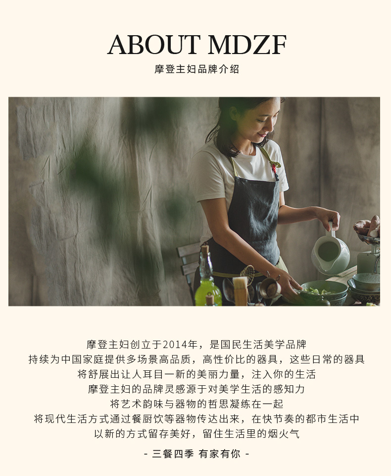 - 摩登主妇的创始人娜娜,是一个普通的80后妈妈,因为一个简单而执着的想法,要让“中国制造”的优质商品走进国内主妇们的生活,摩登主妇的品牌页由此而来。