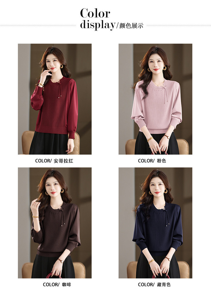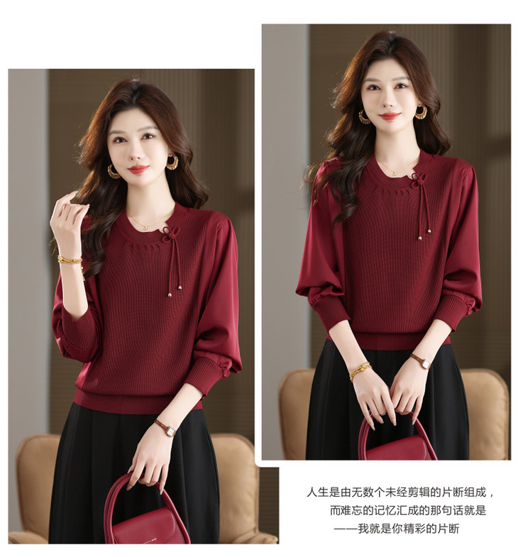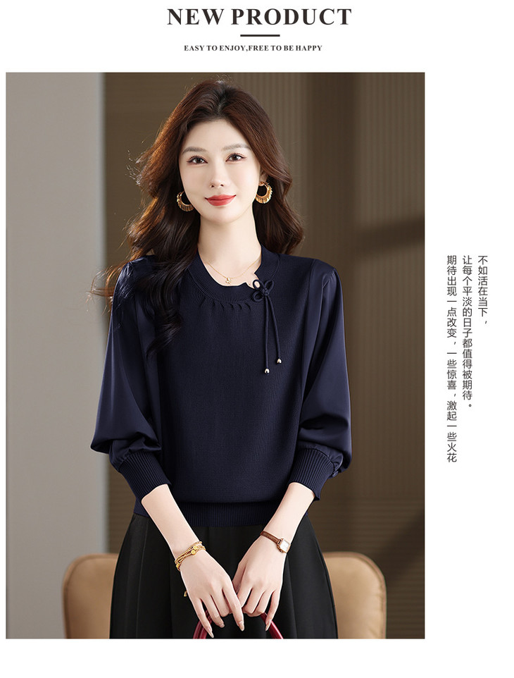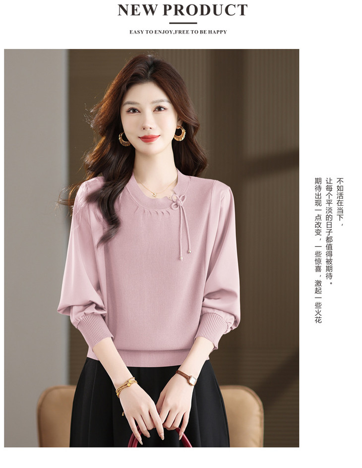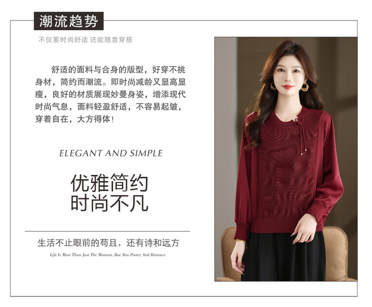 新中式国风针织衫上衣,薄款长袖拼接圆领毛衣CC-MH-25259