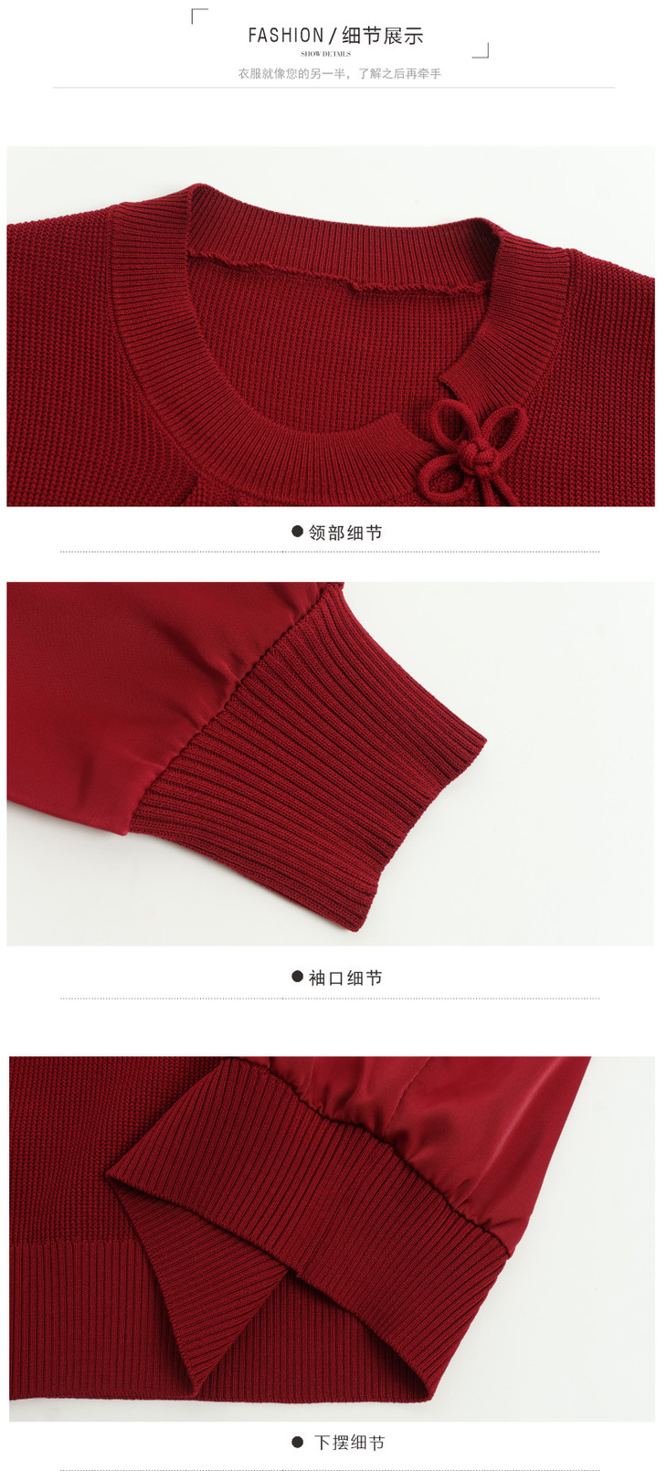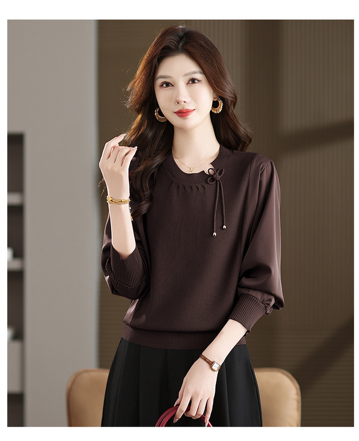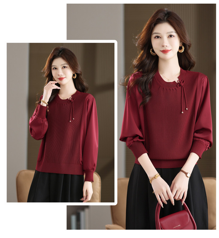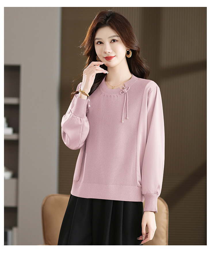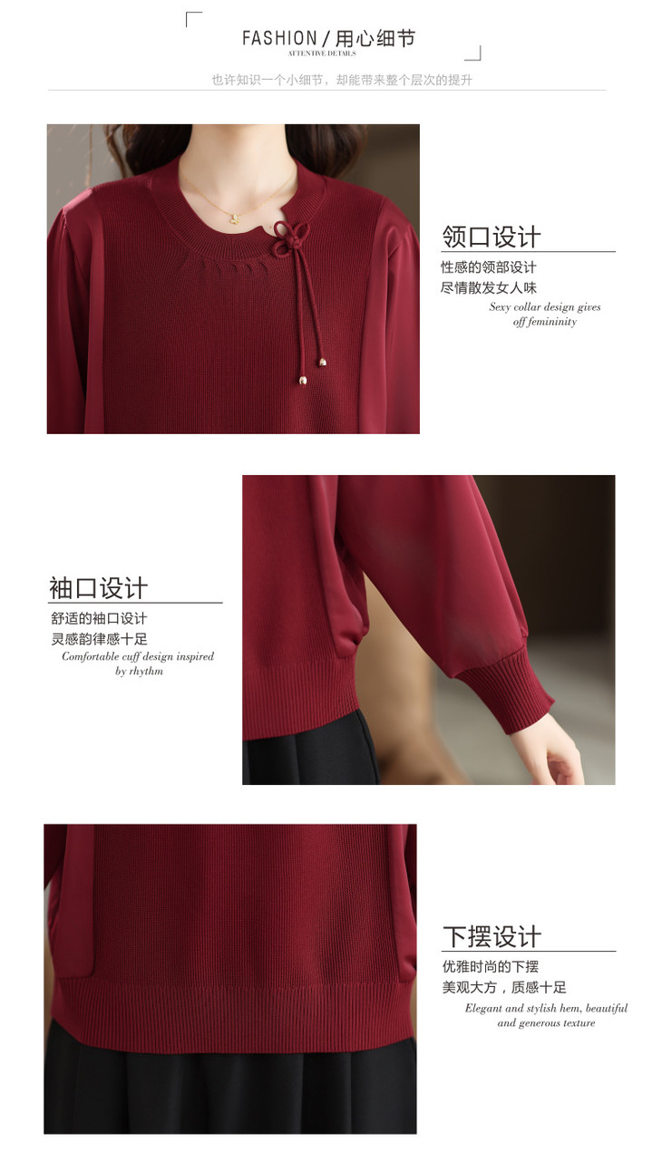 新中式国风针织衫上衣,薄款长袖拼接圆领毛衣CC-MH-25259