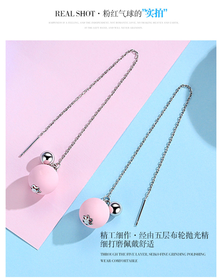 Winy925纯银粉红气球耳线送女友闺蜜节日生日礼物