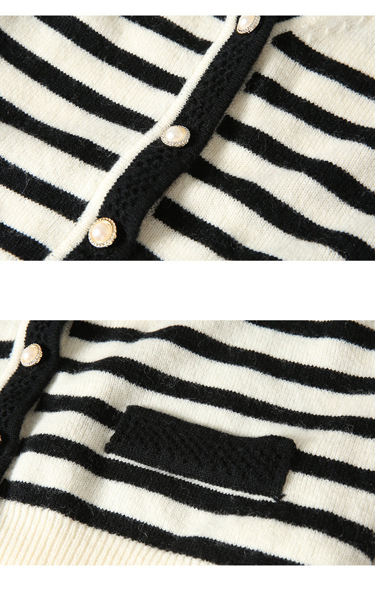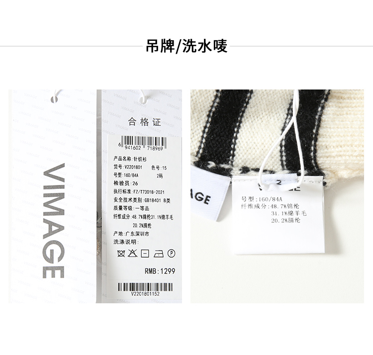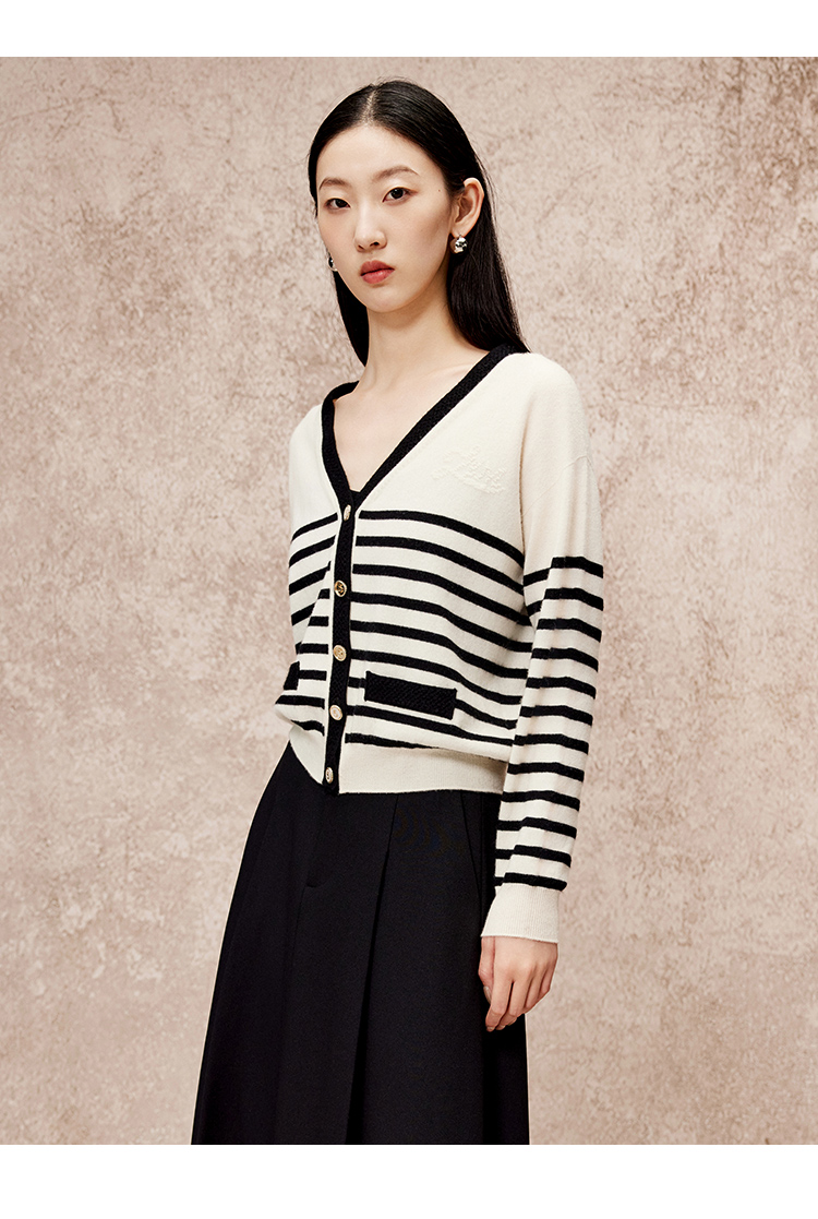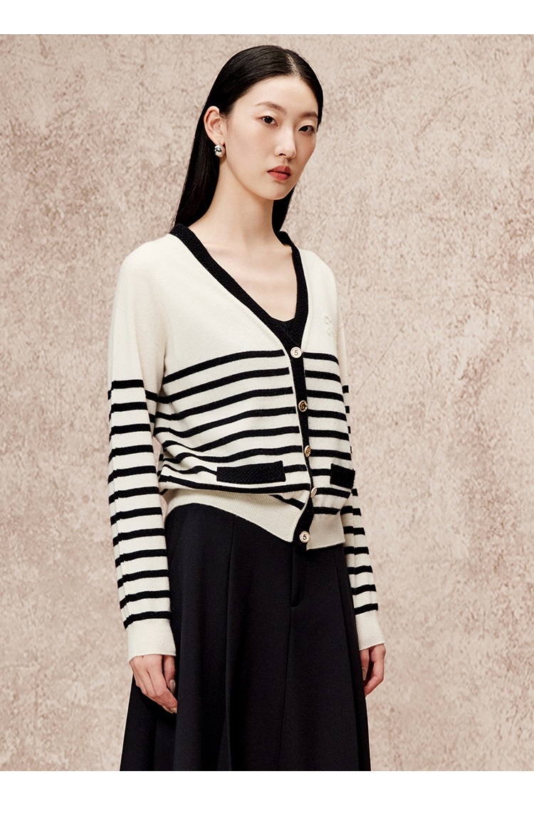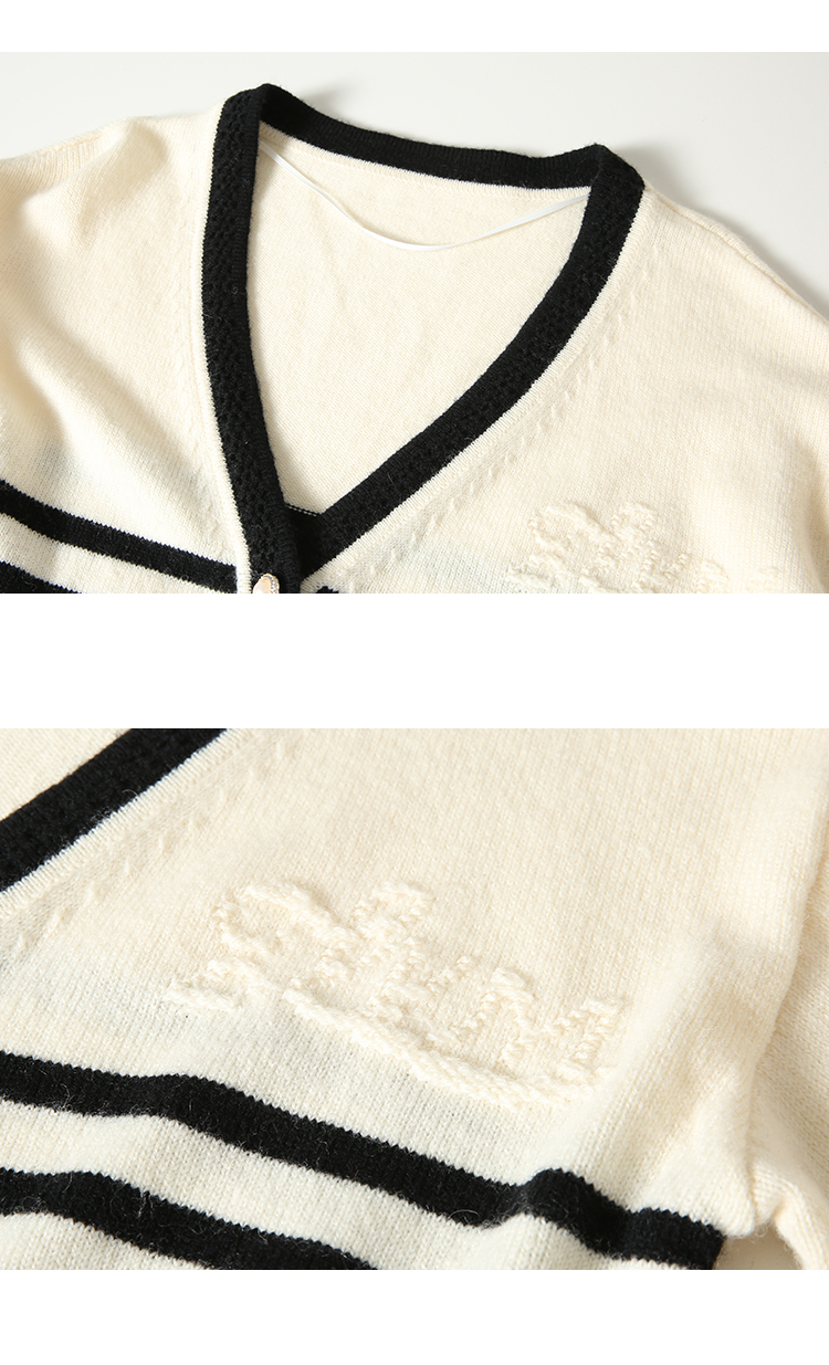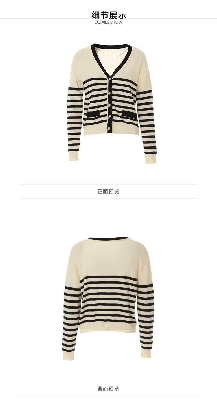 VIMAGE纬漫纪慵懒感V领条纹百搭显瘦落肩针织开衫秋季新款V2201801