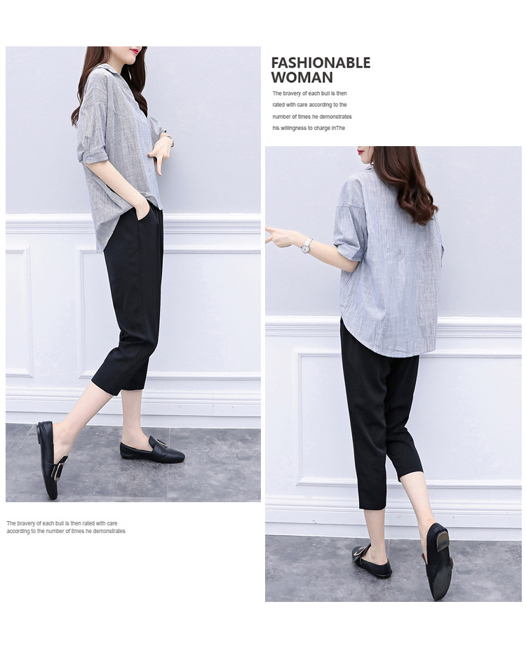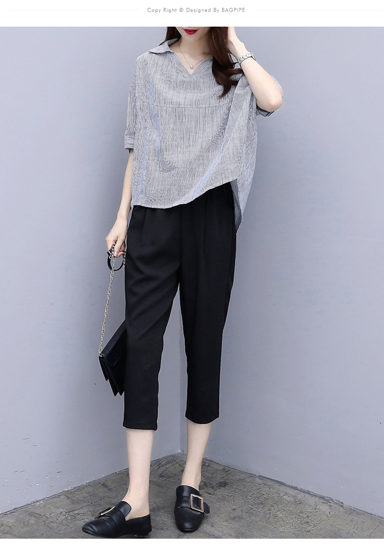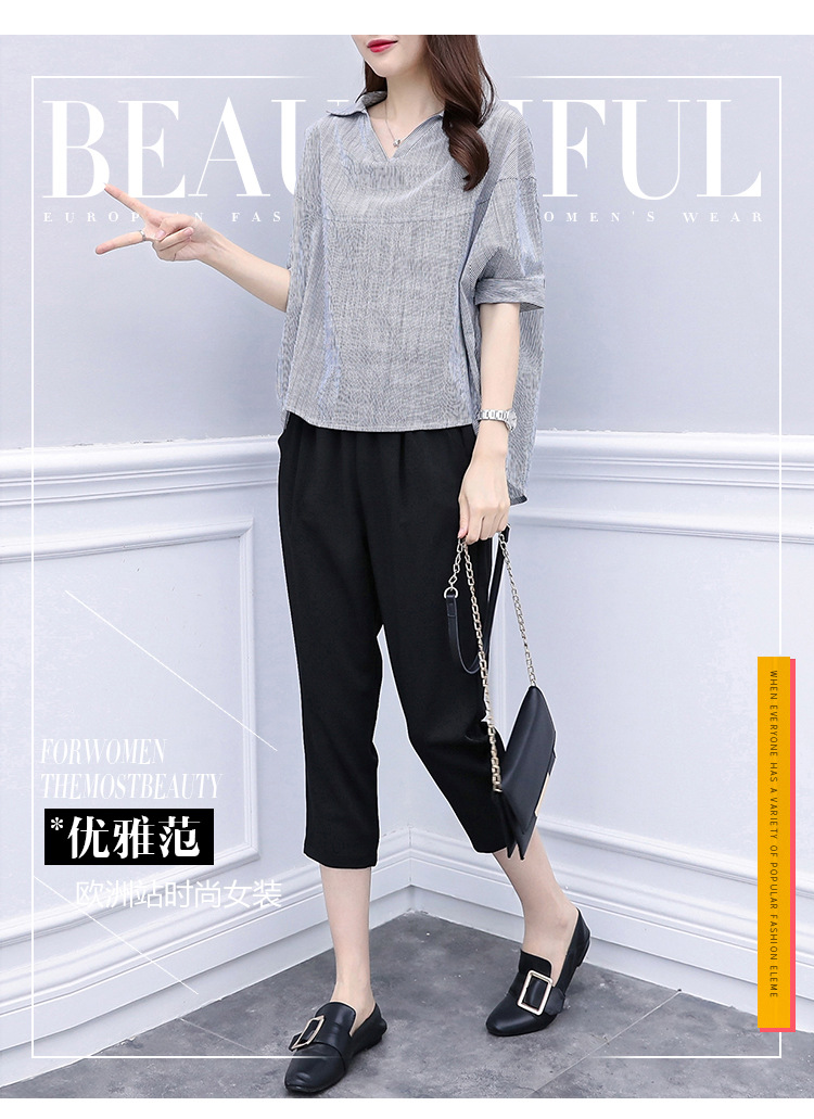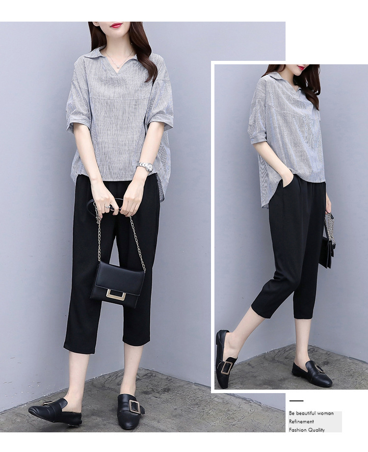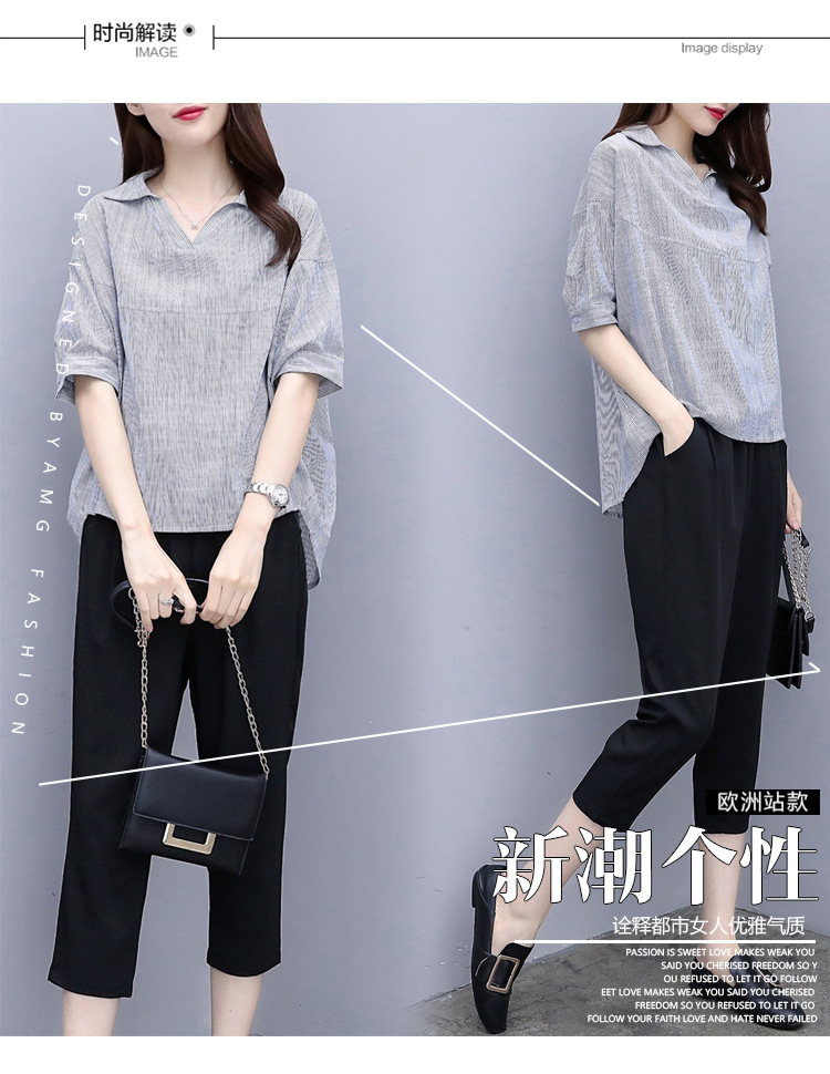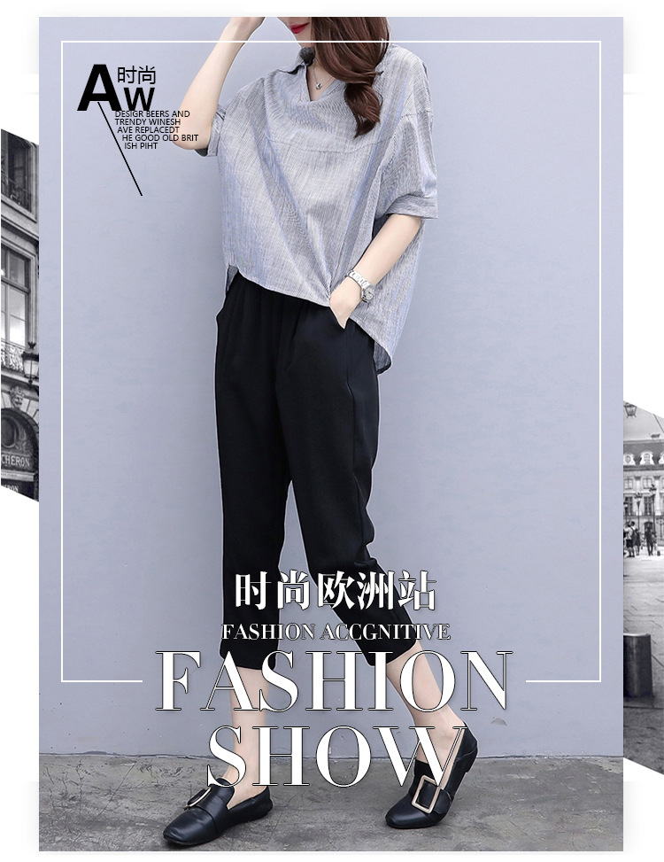 NYL-19179新款时尚气质胖mm加肥加大遮肚藏肉衬衣两件套