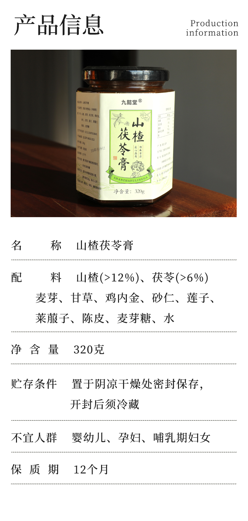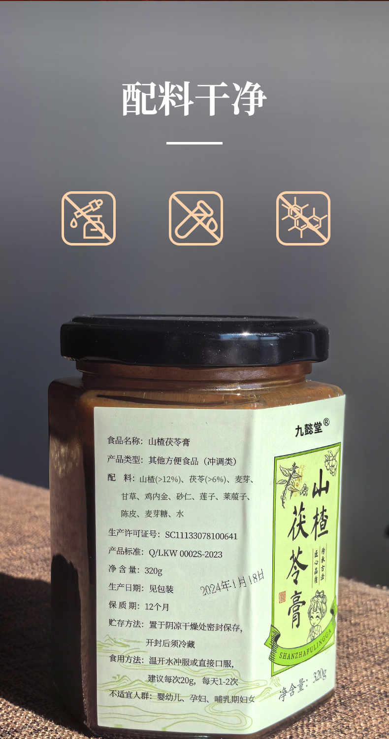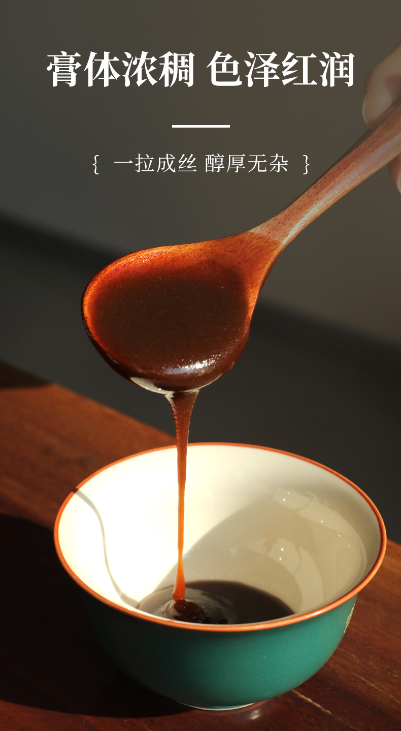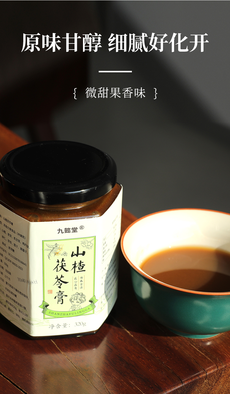 主要成分:精选山楂、鸡内金、麦芽消食化积,茯苓、陈皮健脾理气,大枣甘草和中调气,辅以补气健脾的麦芽糖调味,熬制成膏方,