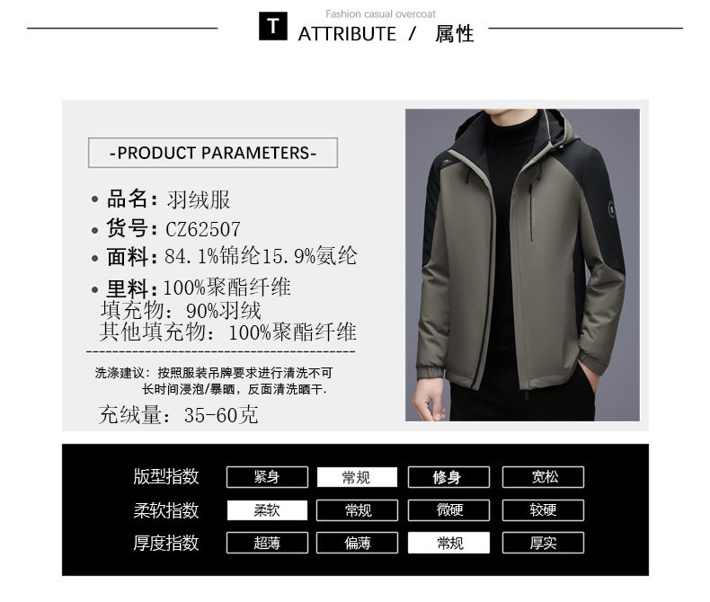 牛奶丝面料新国标90白鸭绒羽绒服冬季中年短款脱卸帽保暖轻羽绒服 LSBT-CZ62507