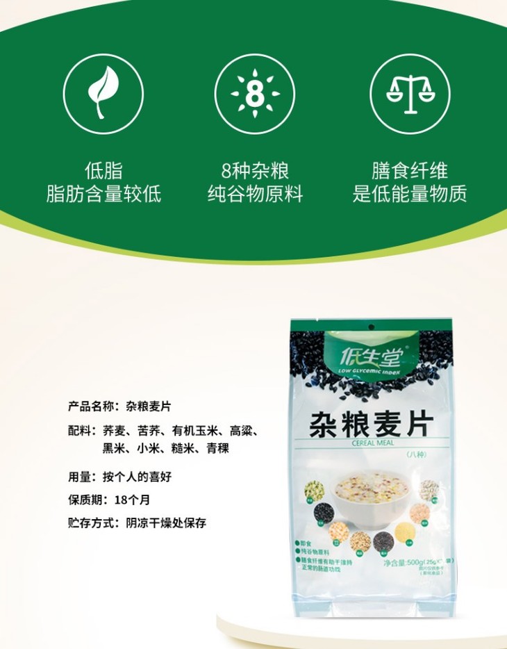 【10.21爱逛直播】500g低生堂杂粮麦片/500g低生堂黑苦荞麦片