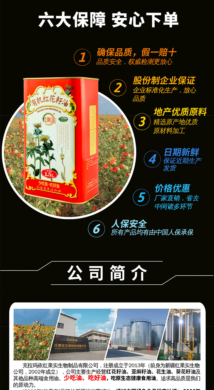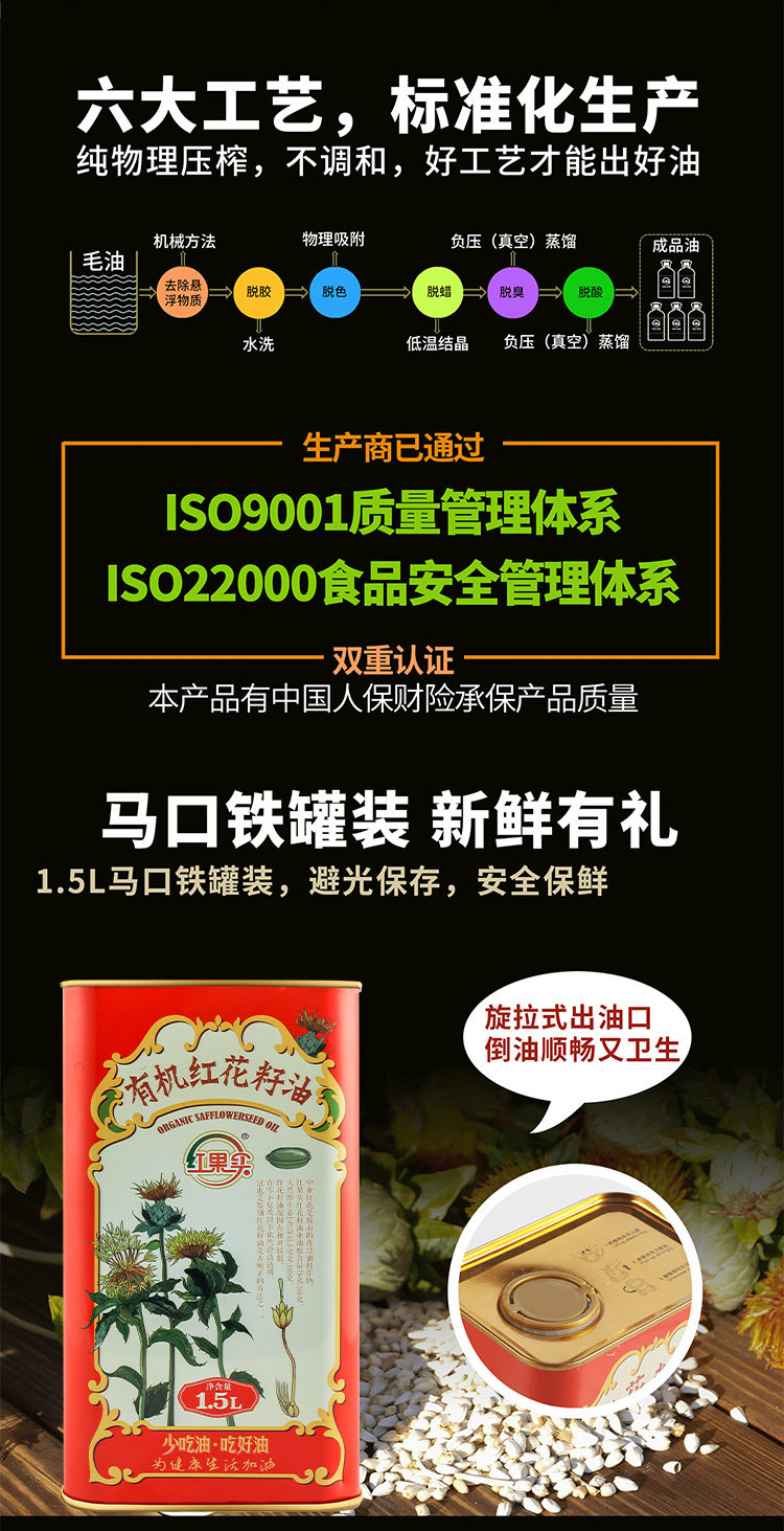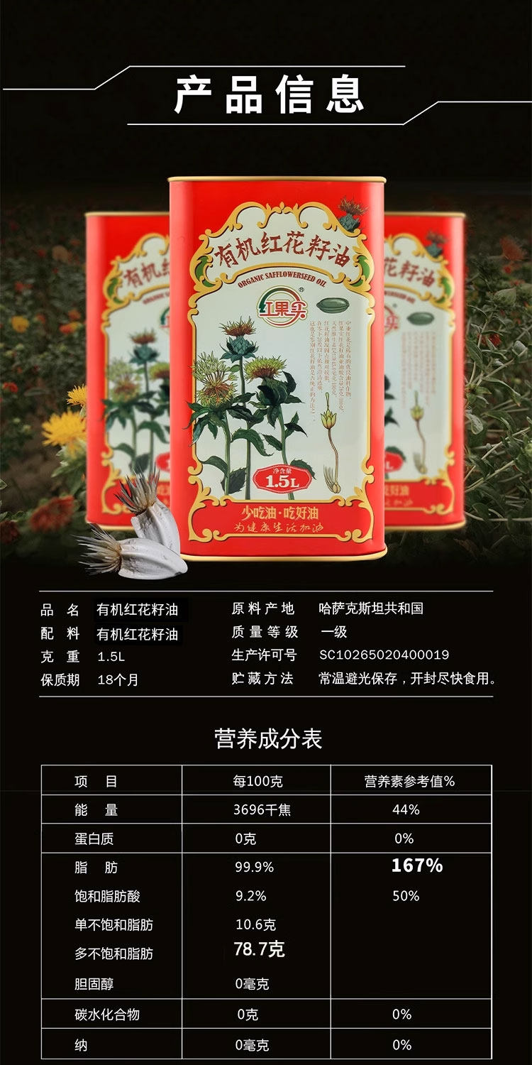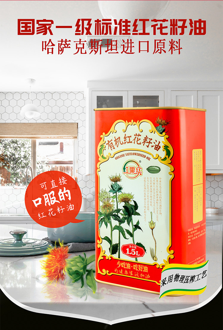 红果实·有机红花籽油1.5L 可以口服的红花籽油