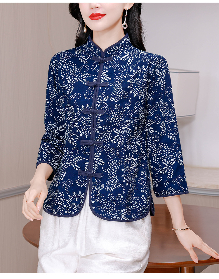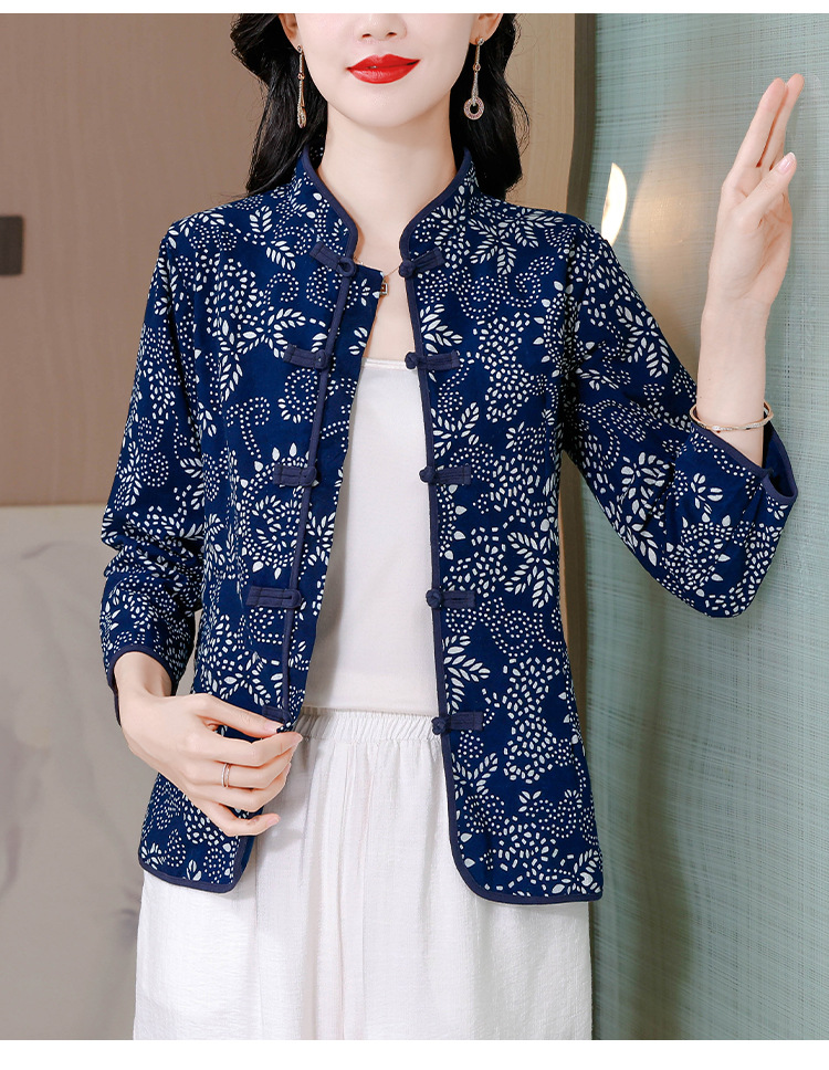 XMZ1067贵夫人新中式改良盘扣上衣女春秋新款妈妈国风立领唐装薄外套大码