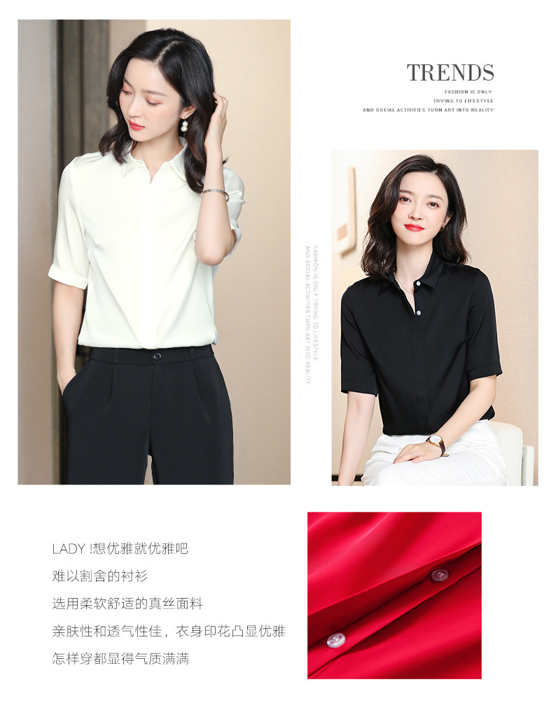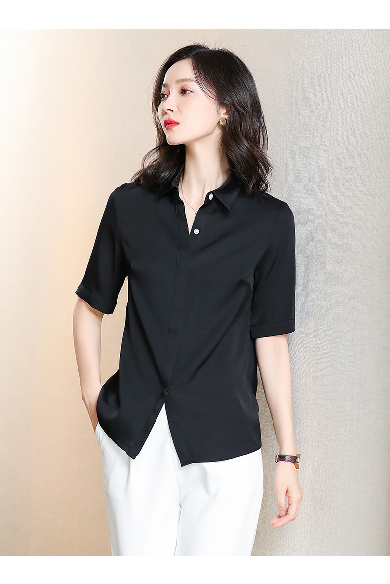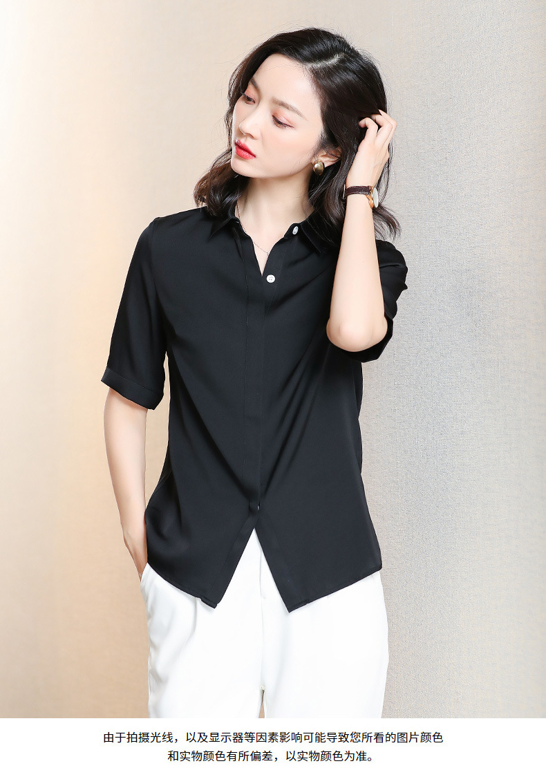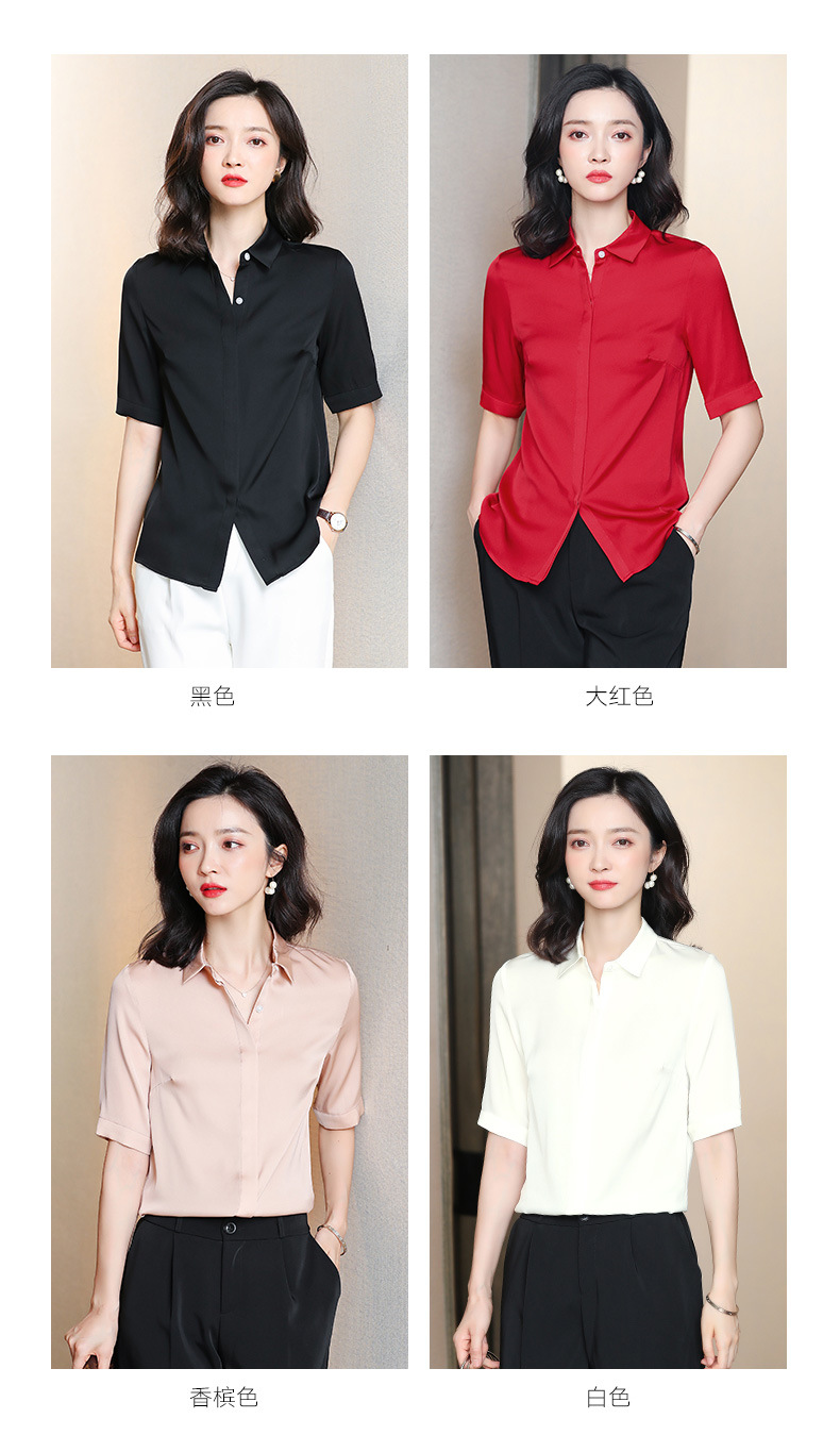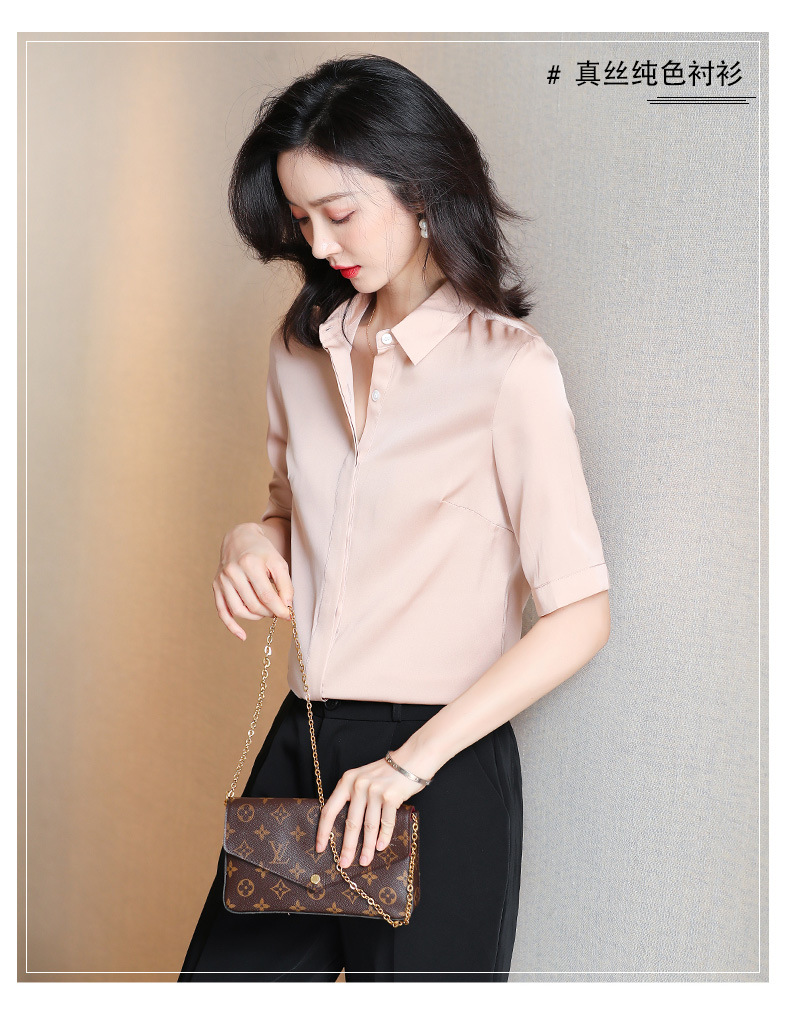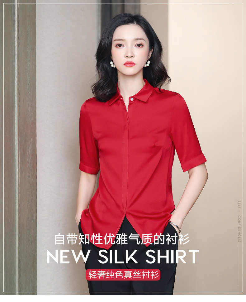 上海旗袍厂ASE-3350纯色气质简约真丝短袖衬衫