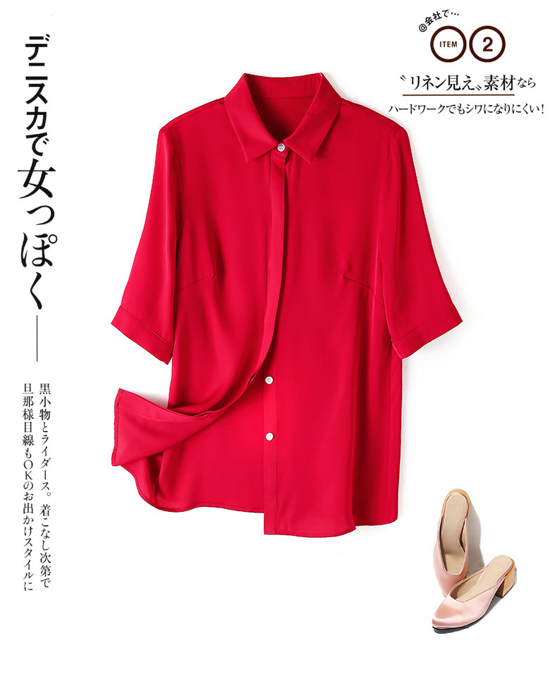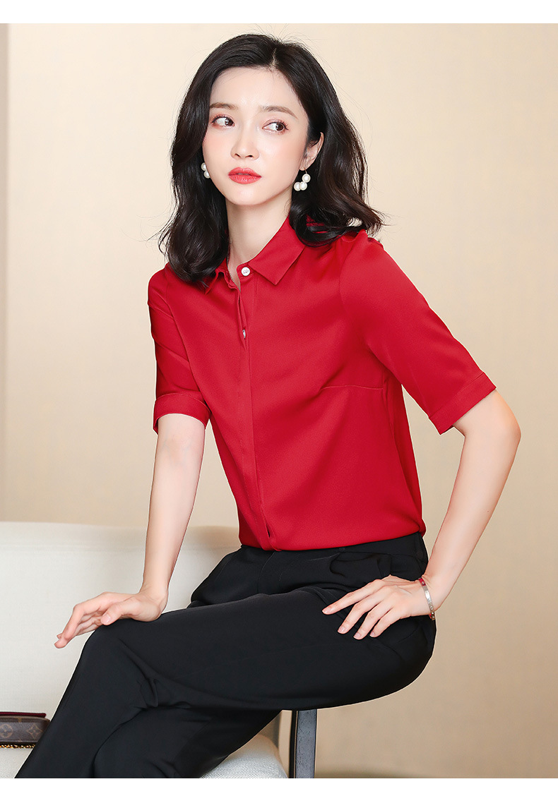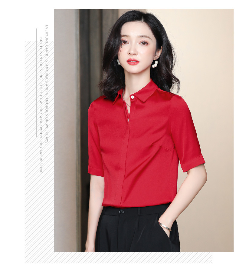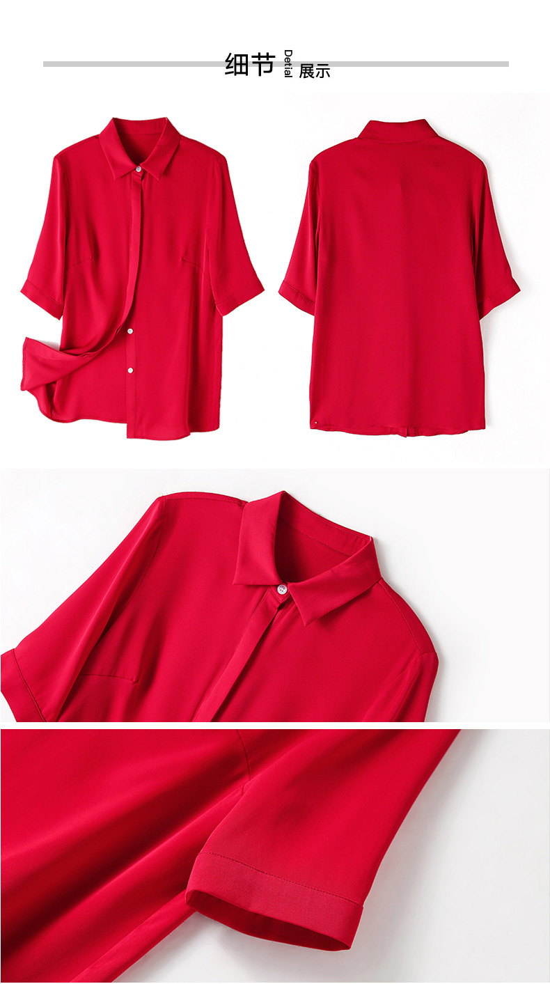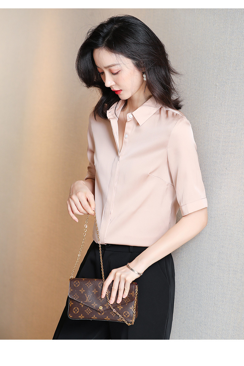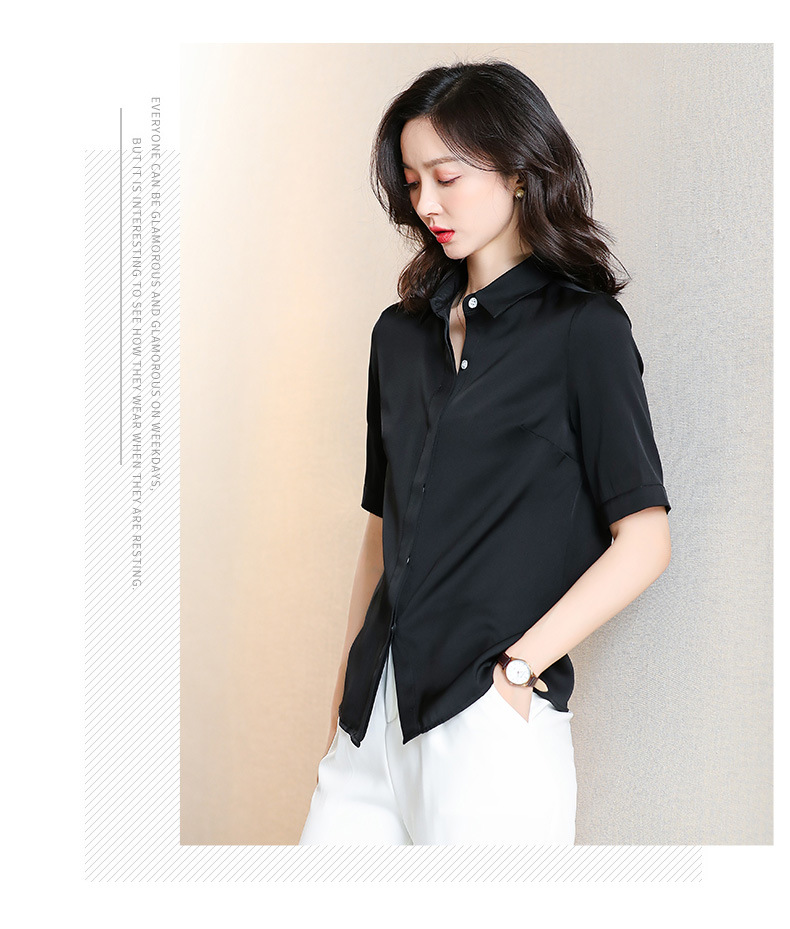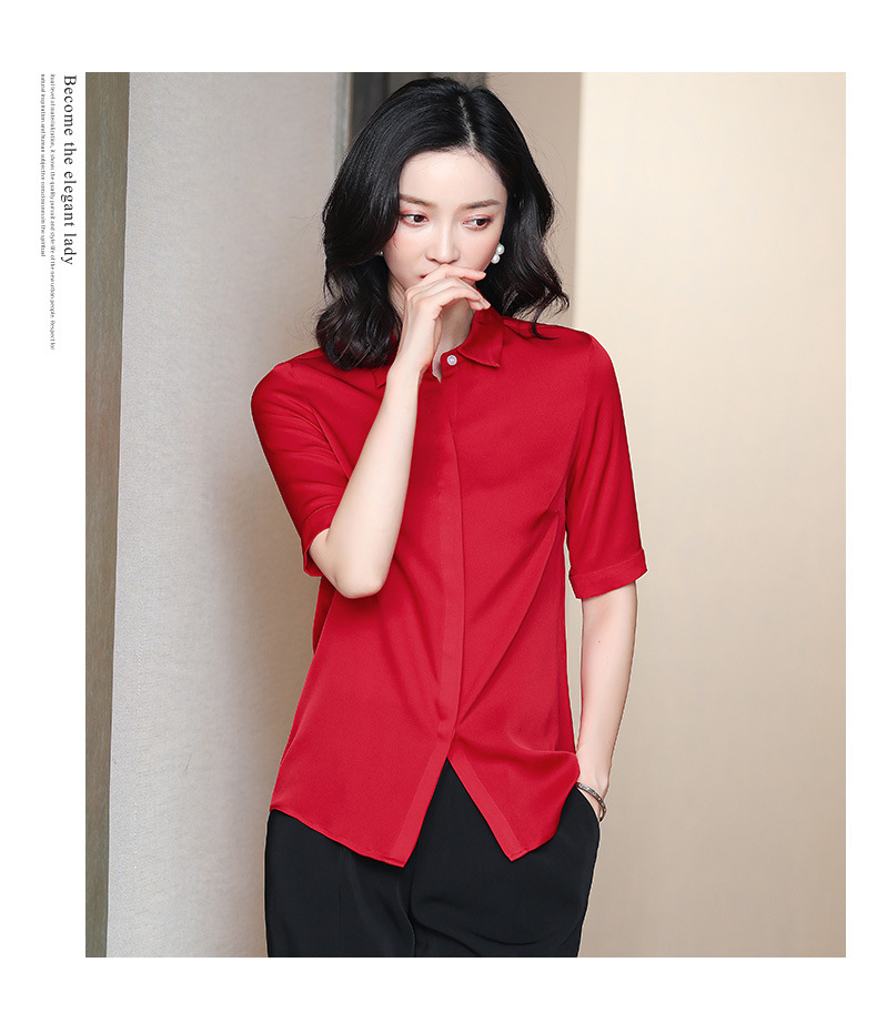 上海旗袍厂ASE-3350纯色气质简约真丝短袖衬衫