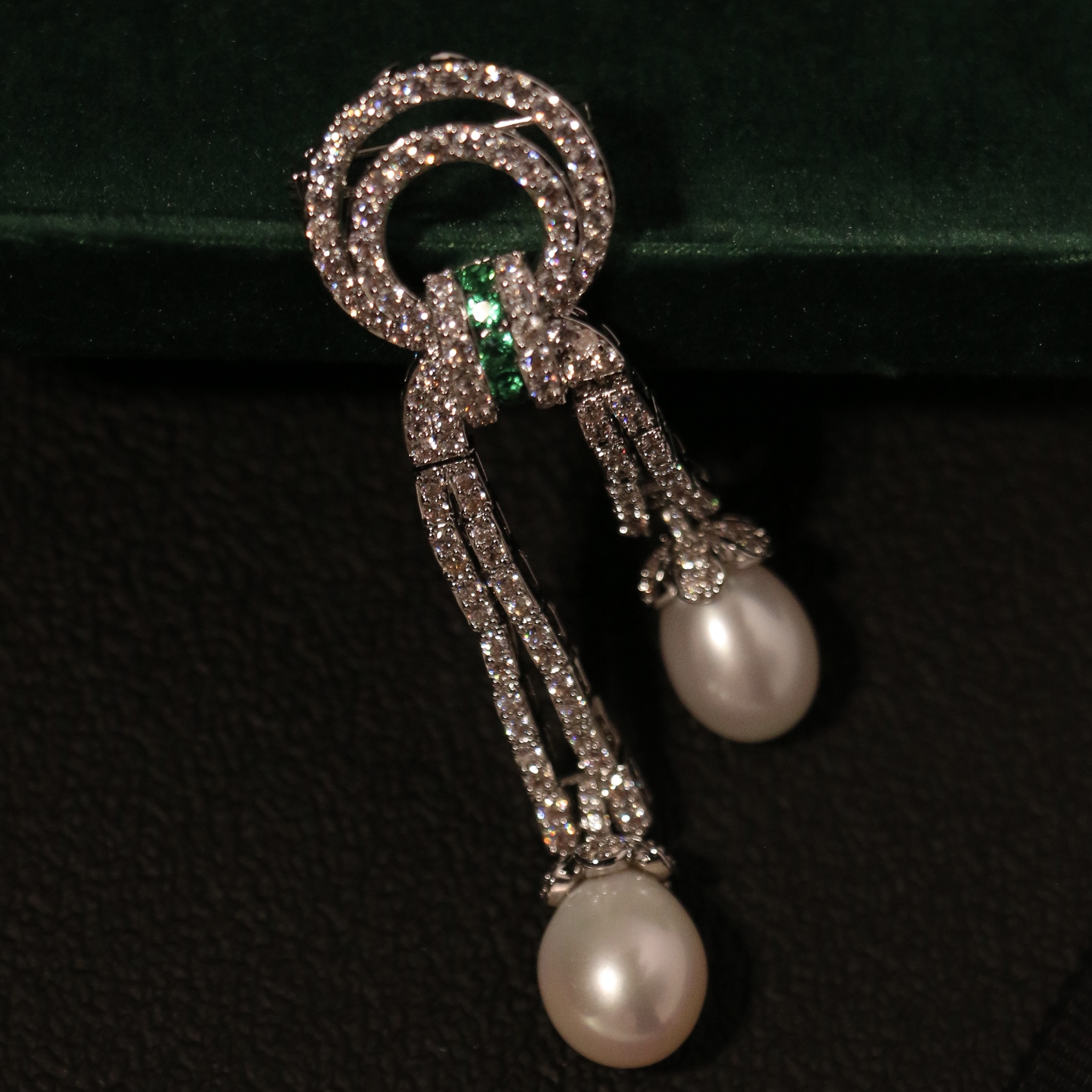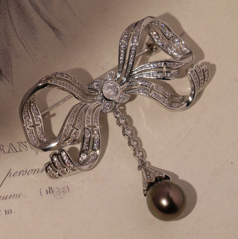 蝴蝶结胸针:大溪地水滴黑珍珠,10-11mm