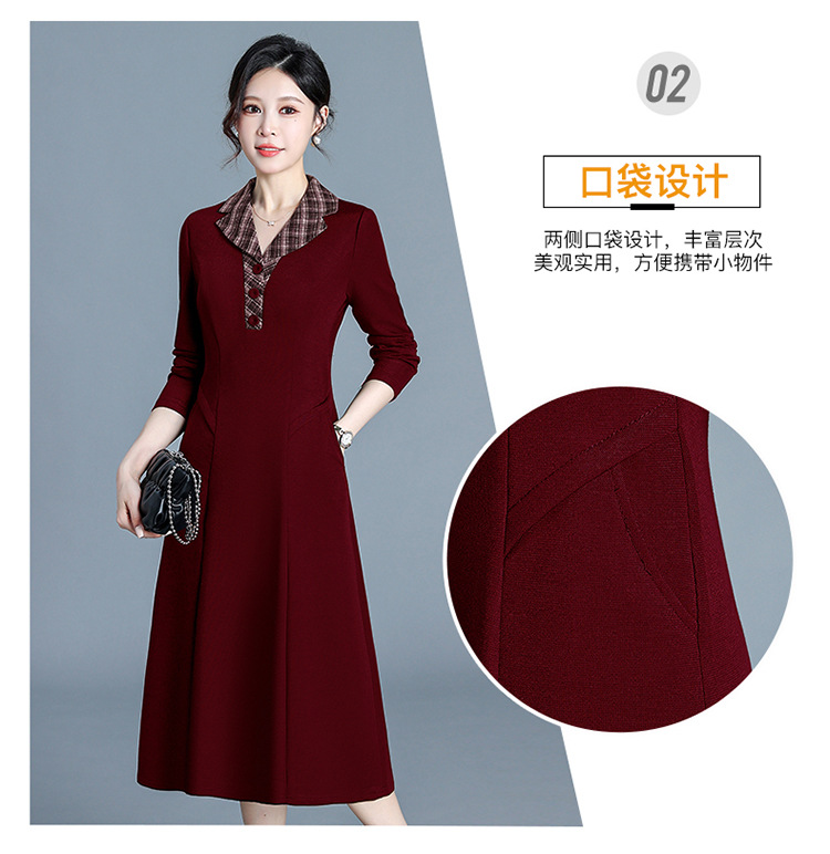 QYM H3356-Y连衣裙时尚格纹拼结中长款A字裙 商品图3
