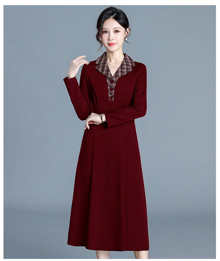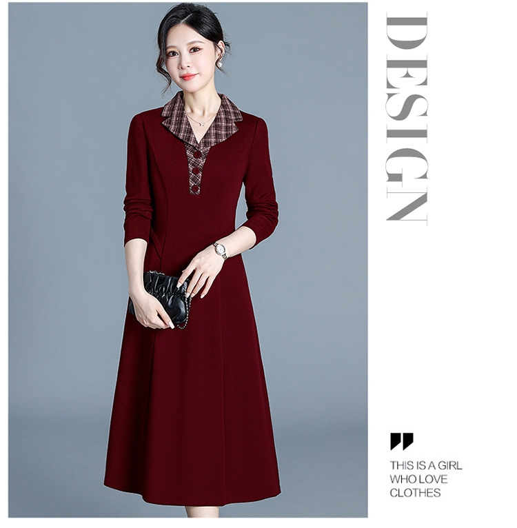 QYM H3356-Y连衣裙时尚格纹拼结中长款A字裙 商品图0