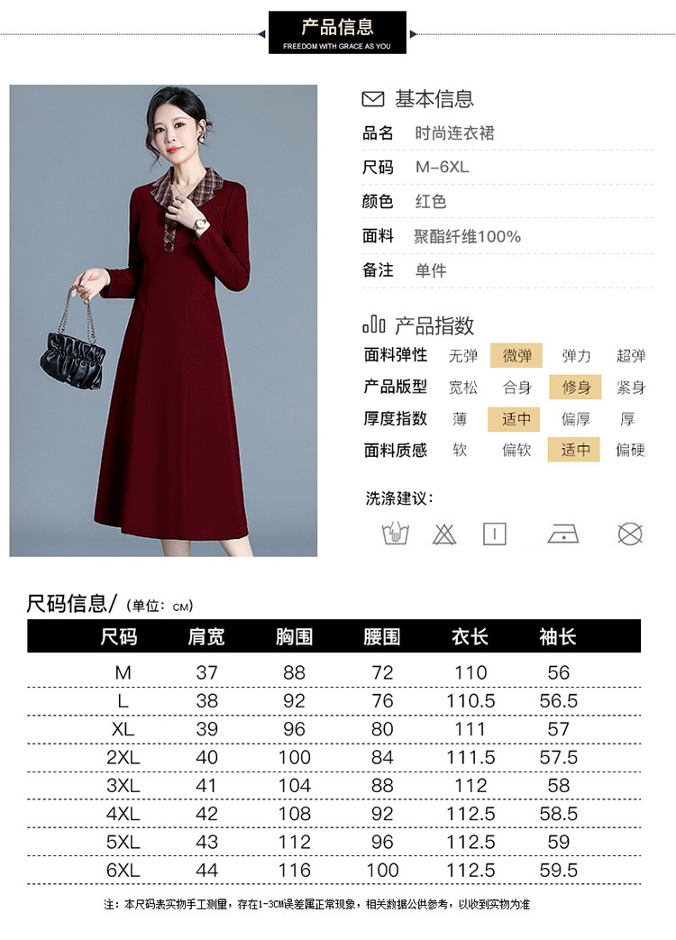 QYM H3356-Y连衣裙时尚格纹拼结中长款A字裙 商品图4