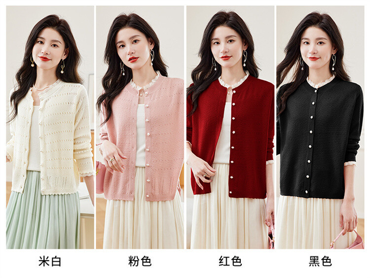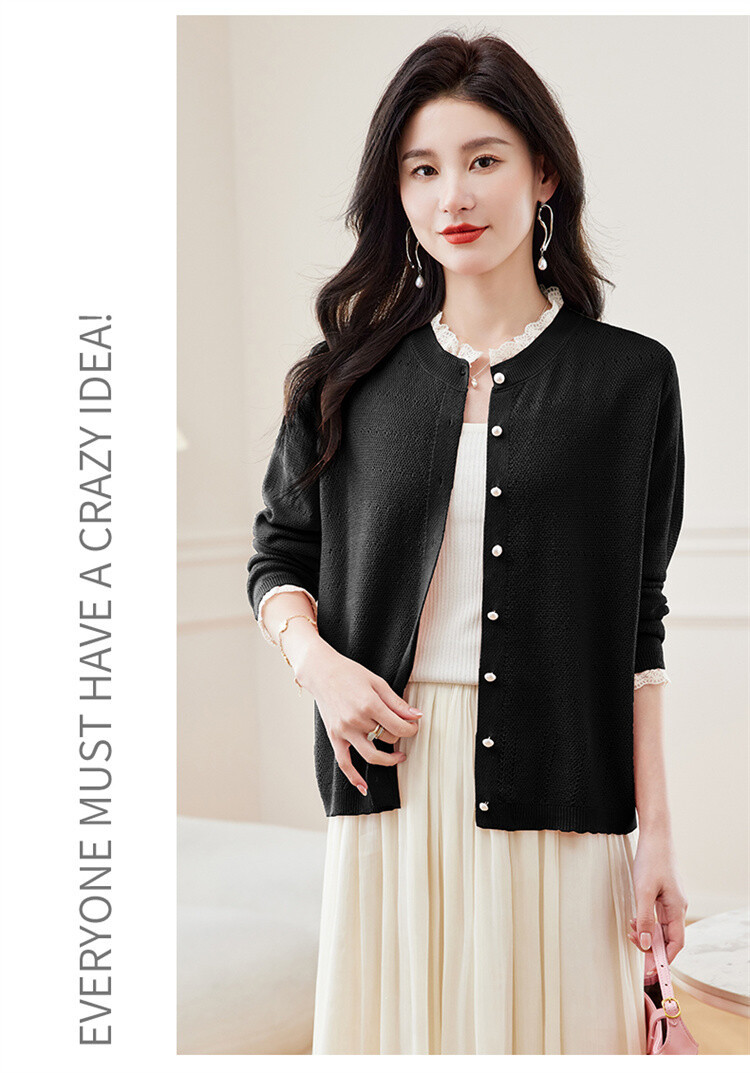 QY1381时尚洋气显瘦气质针织衫女外套单排扣小香风针织上衣女士通勤