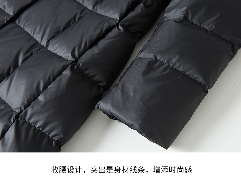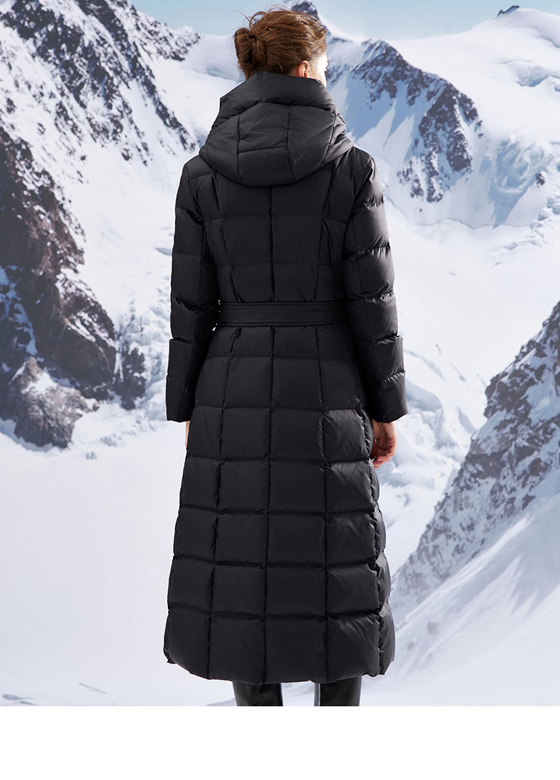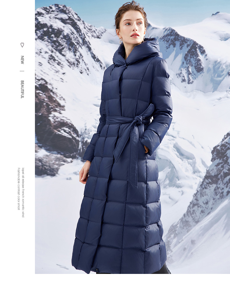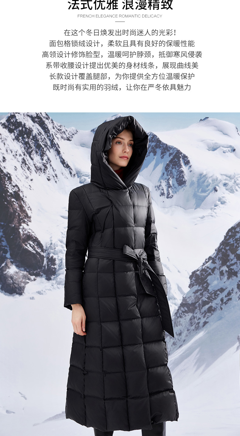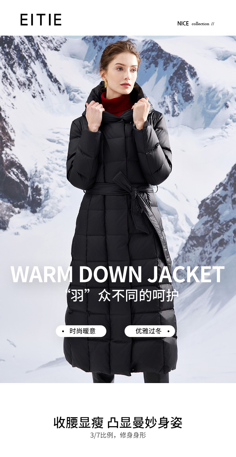 EITIE爱特爱连帽立领格子收腰长款显瘦纯色加厚羽绒服冬季新款D2311209