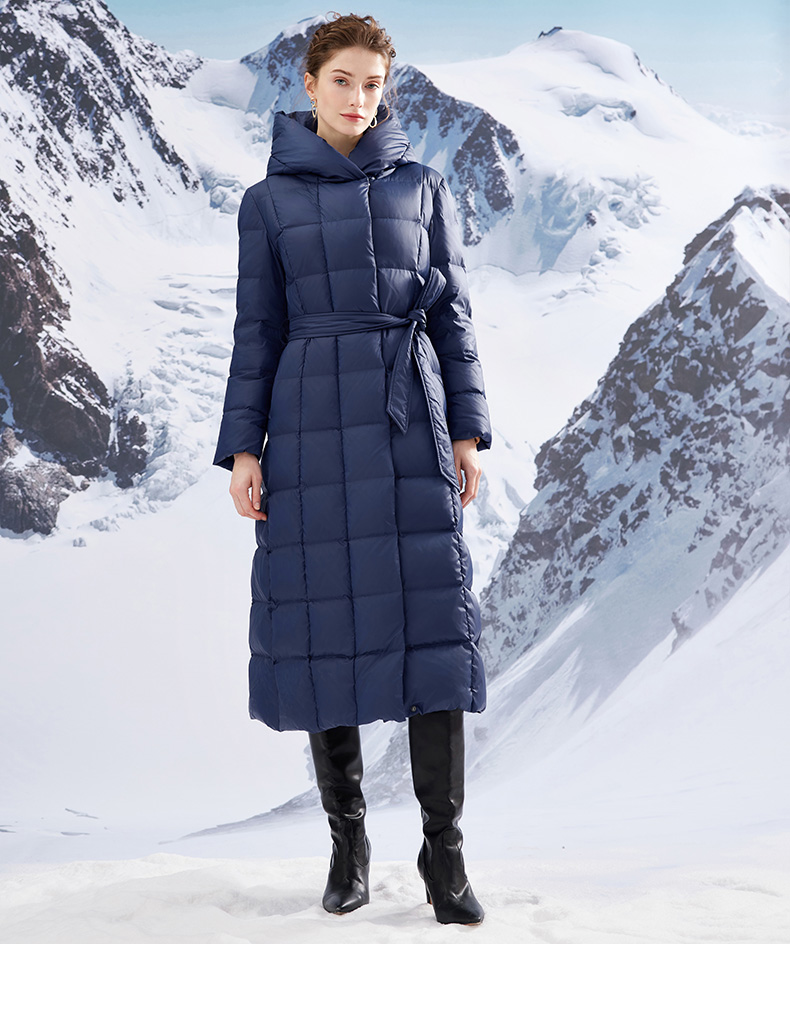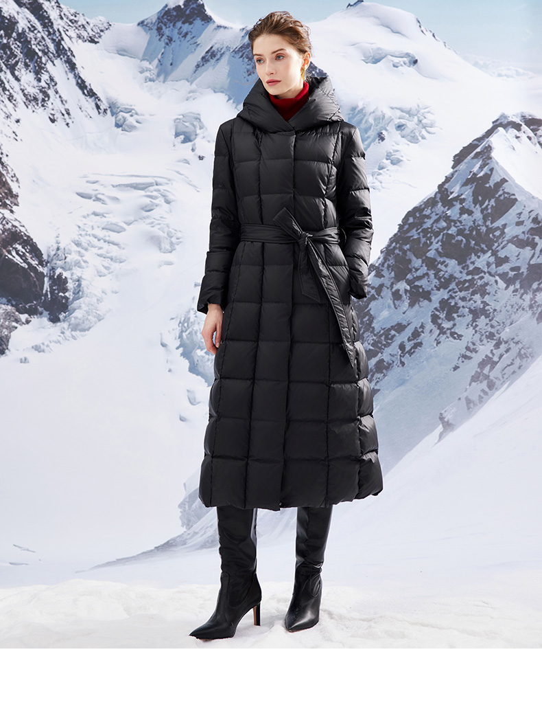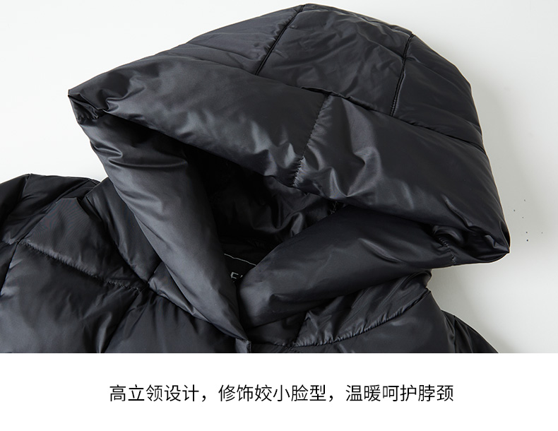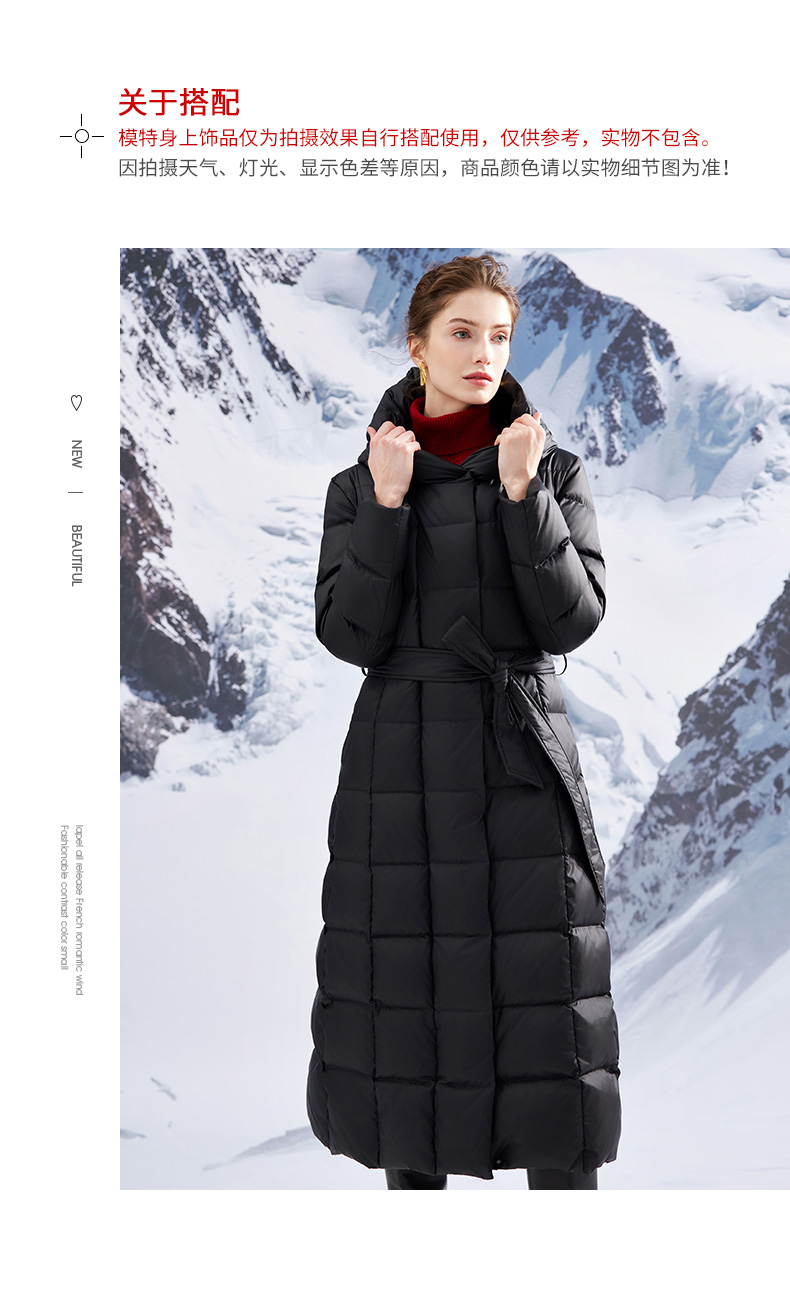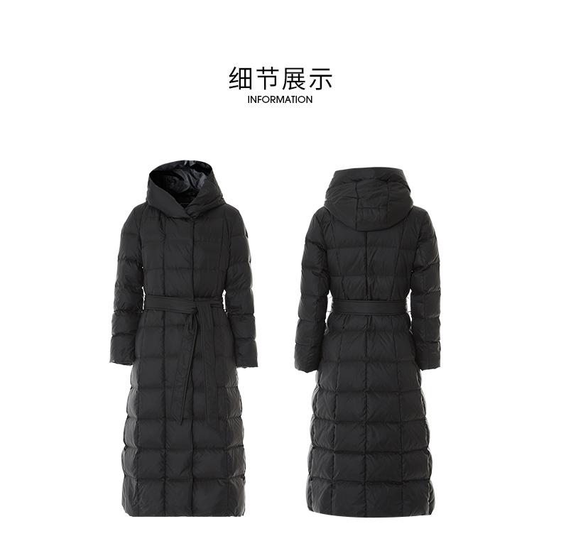 EITIE爱特爱连帽立领格子收腰长款显瘦纯色加厚羽绒服冬季新款D2311209