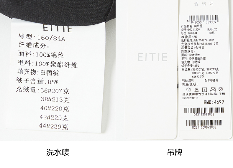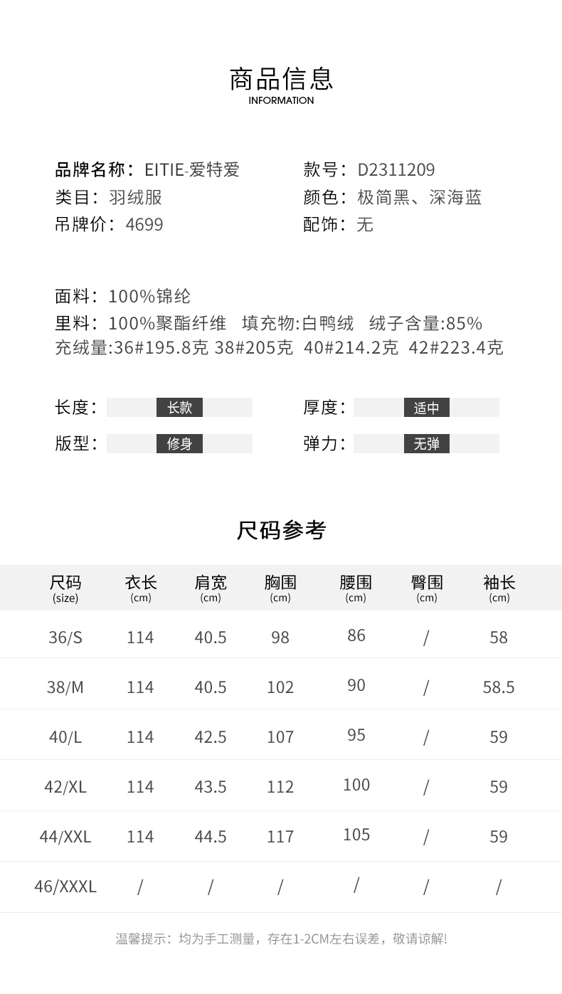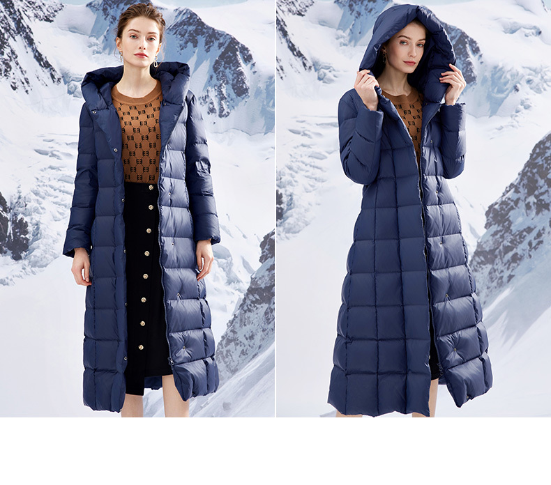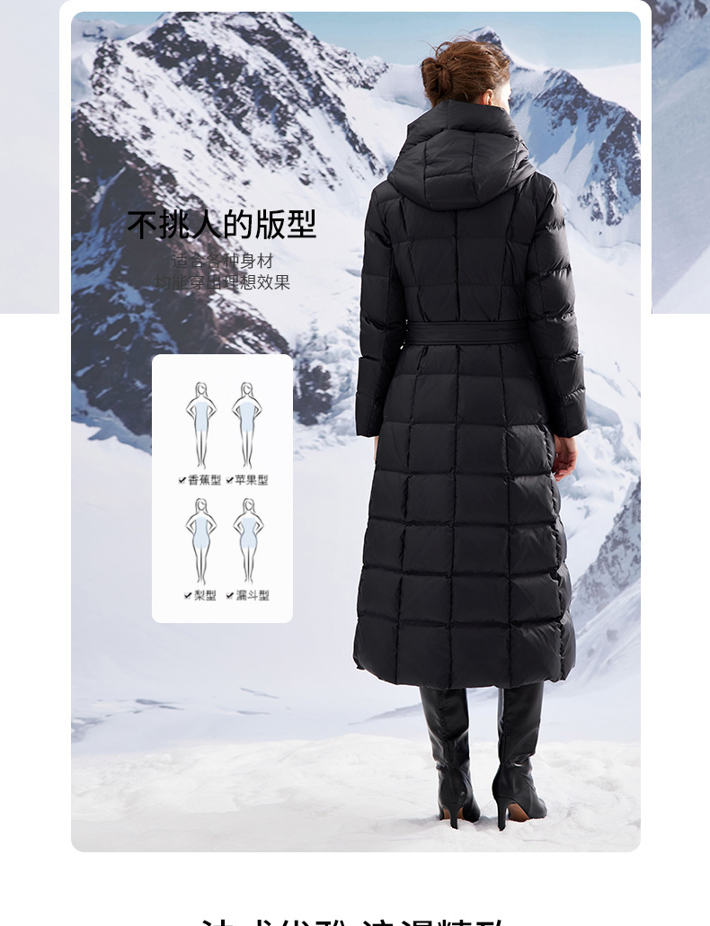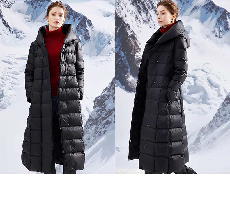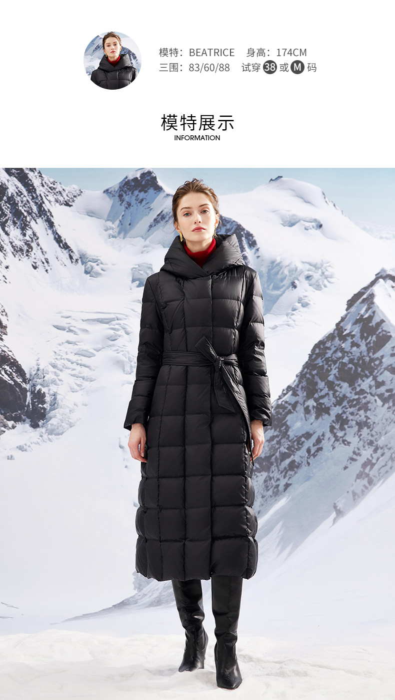 EITIE爱特爱连帽立领格子收腰长款显瘦纯色加厚羽绒服冬季新款D2311209