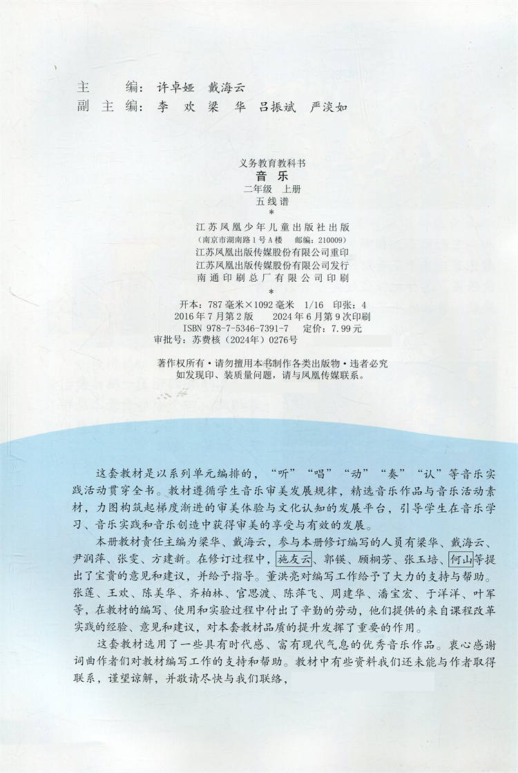 2024秋 小学音乐课本 二年级上册 五线谱 2上 小学音乐教材 苏少版 学生用书 官方直营正版 江苏凤凰少年儿童出版社 SS