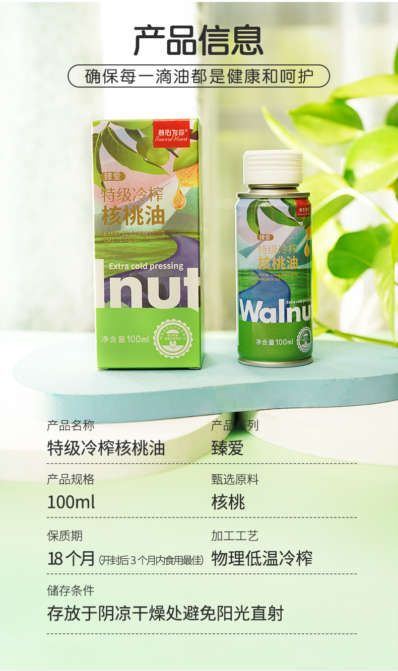 核心为你核心为你臻爱家庭辅食美味特级冷榨核桃油100ml/瓶