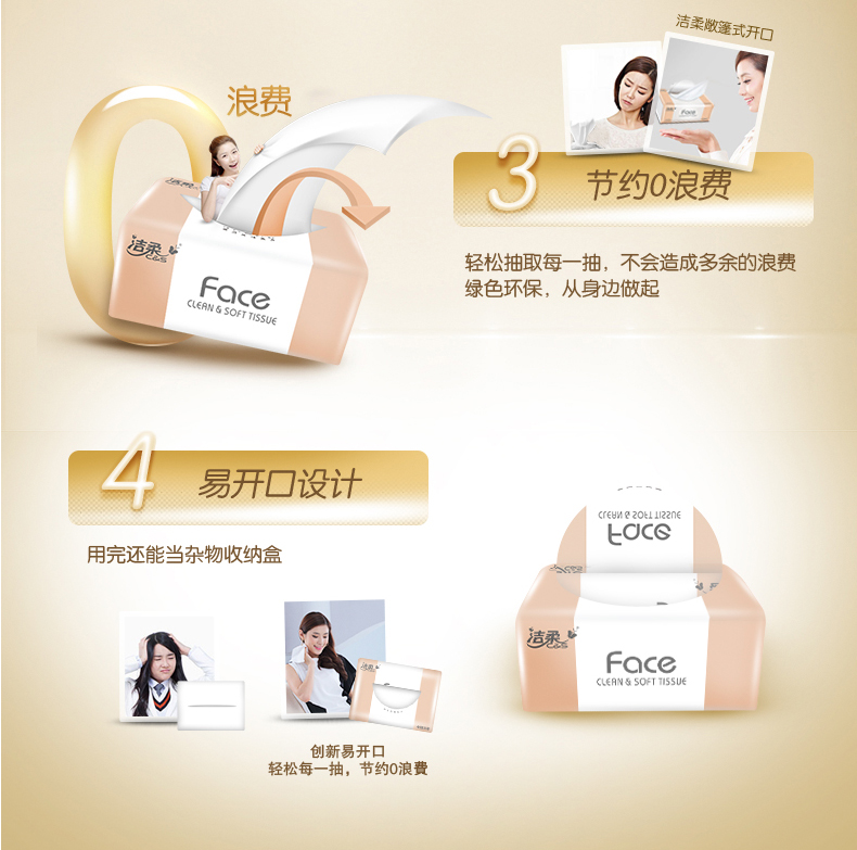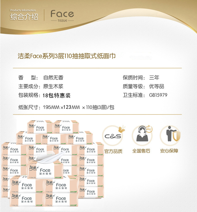 中国洁柔纸面巾(Face粉软抽)110抽3层(18包装)(包装迭代较快,随机新旧包装)