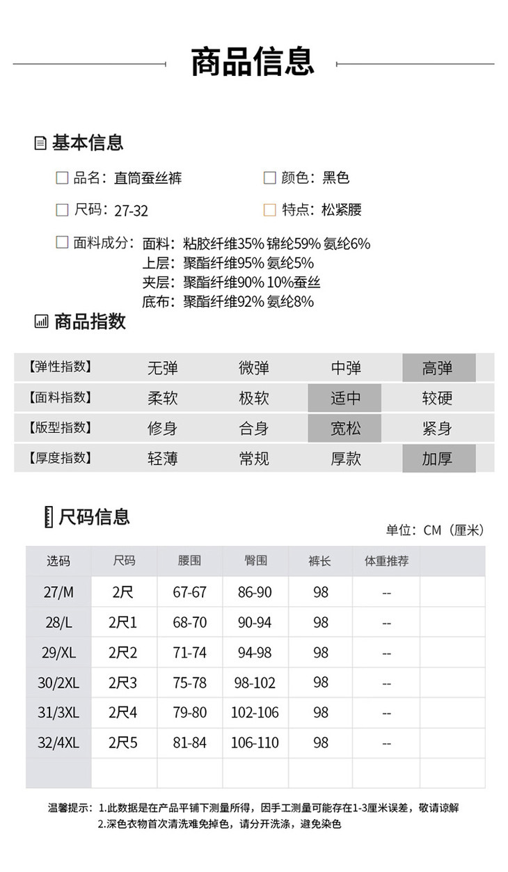 松紧高腰蚕丝裤,厚款保暖直筒裤长裤MYX-HWM-8937-Y