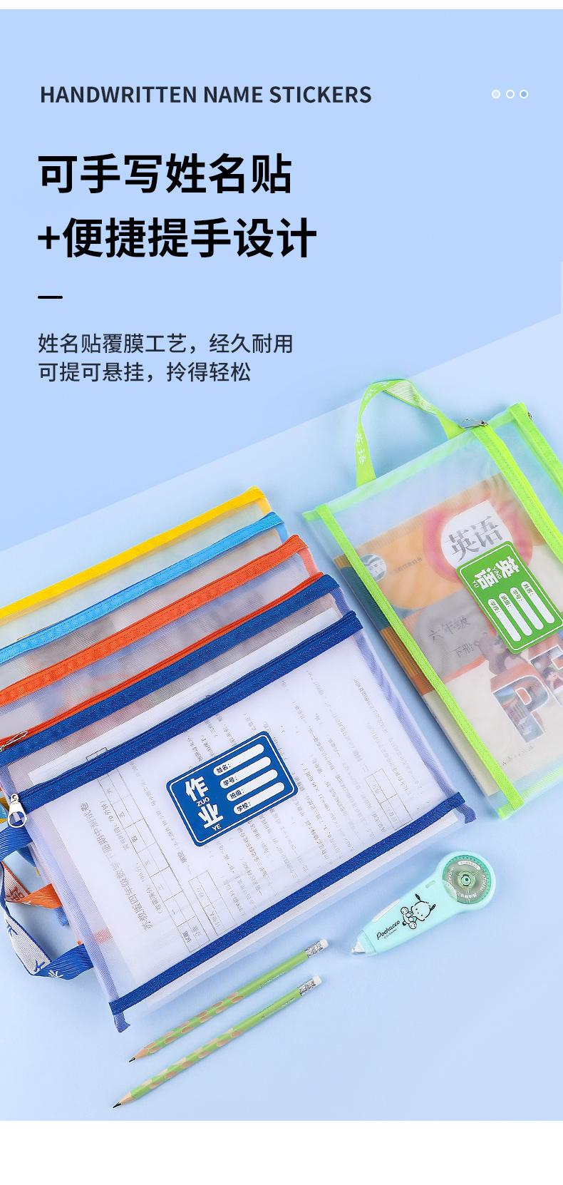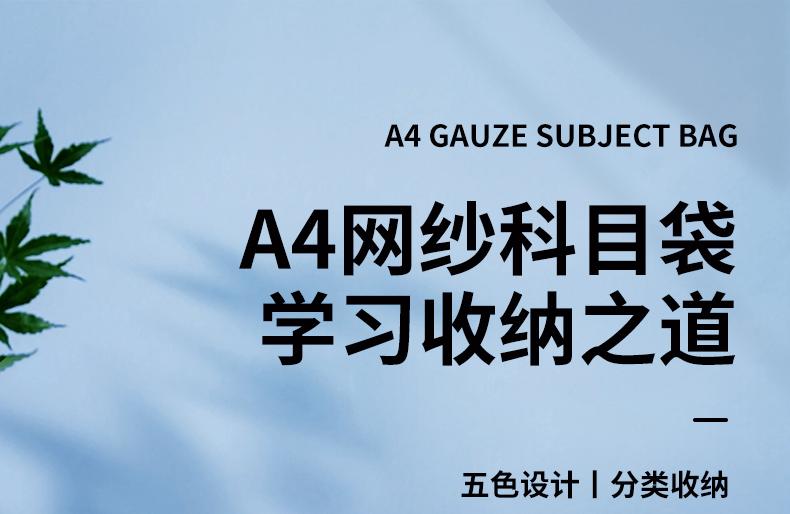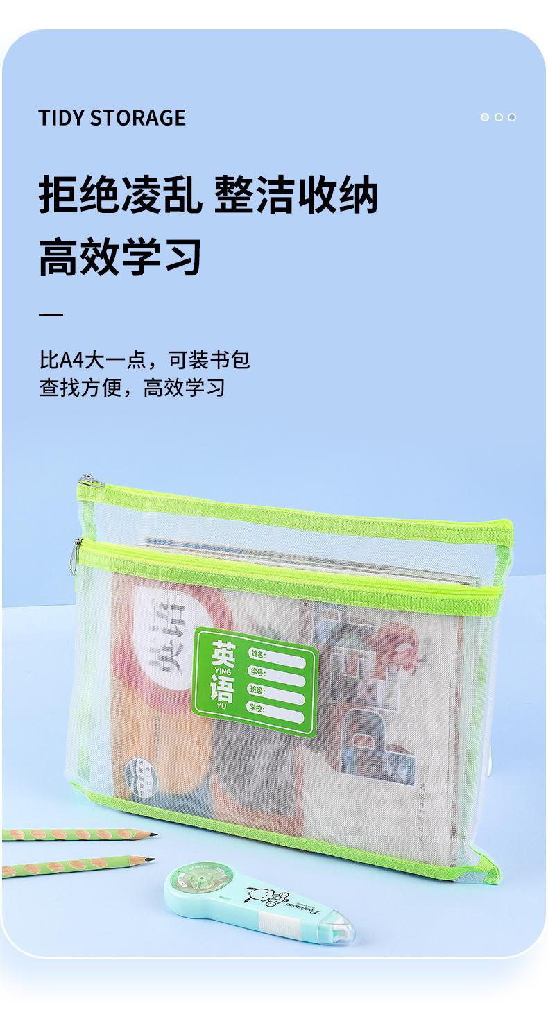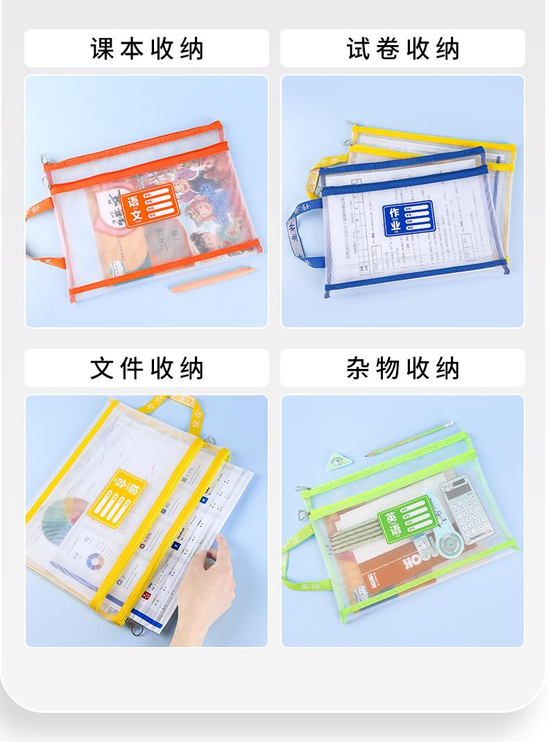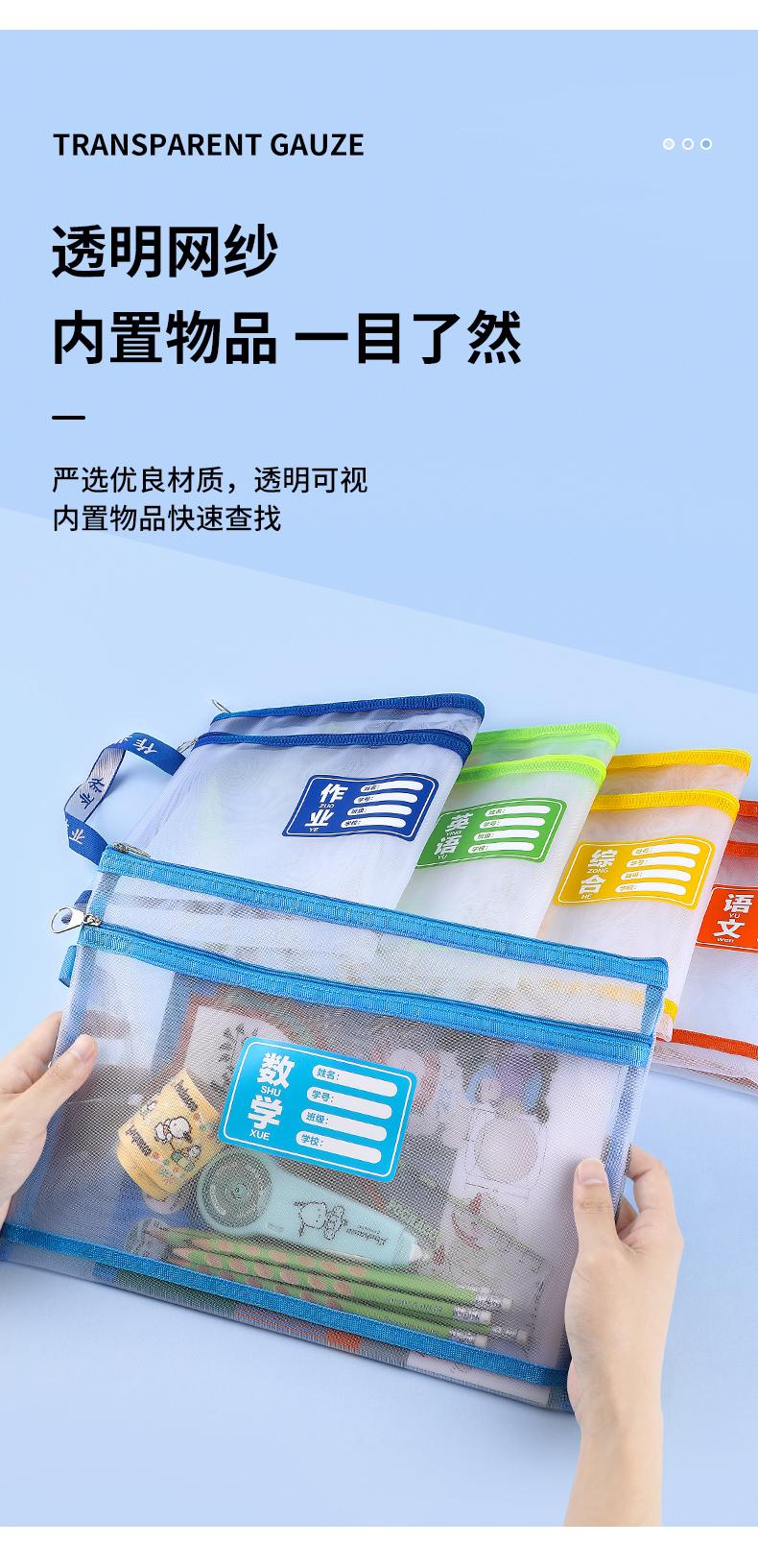 【广博】 拉链科目袋A4透明网格学生用文具袋收纳考试资料分科公文袋