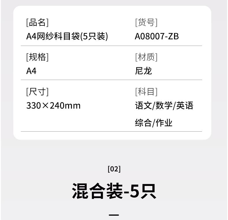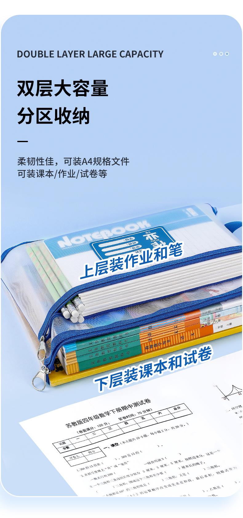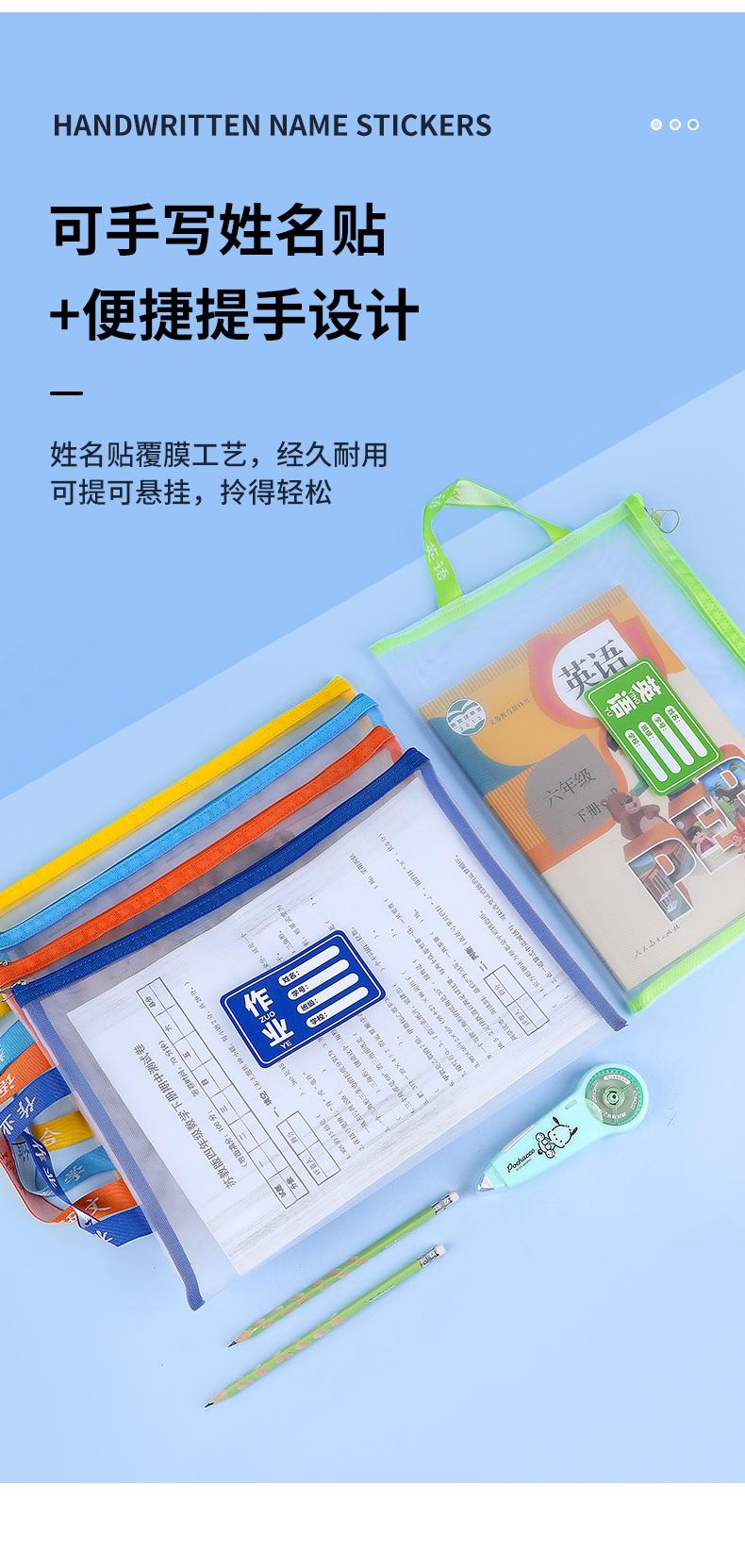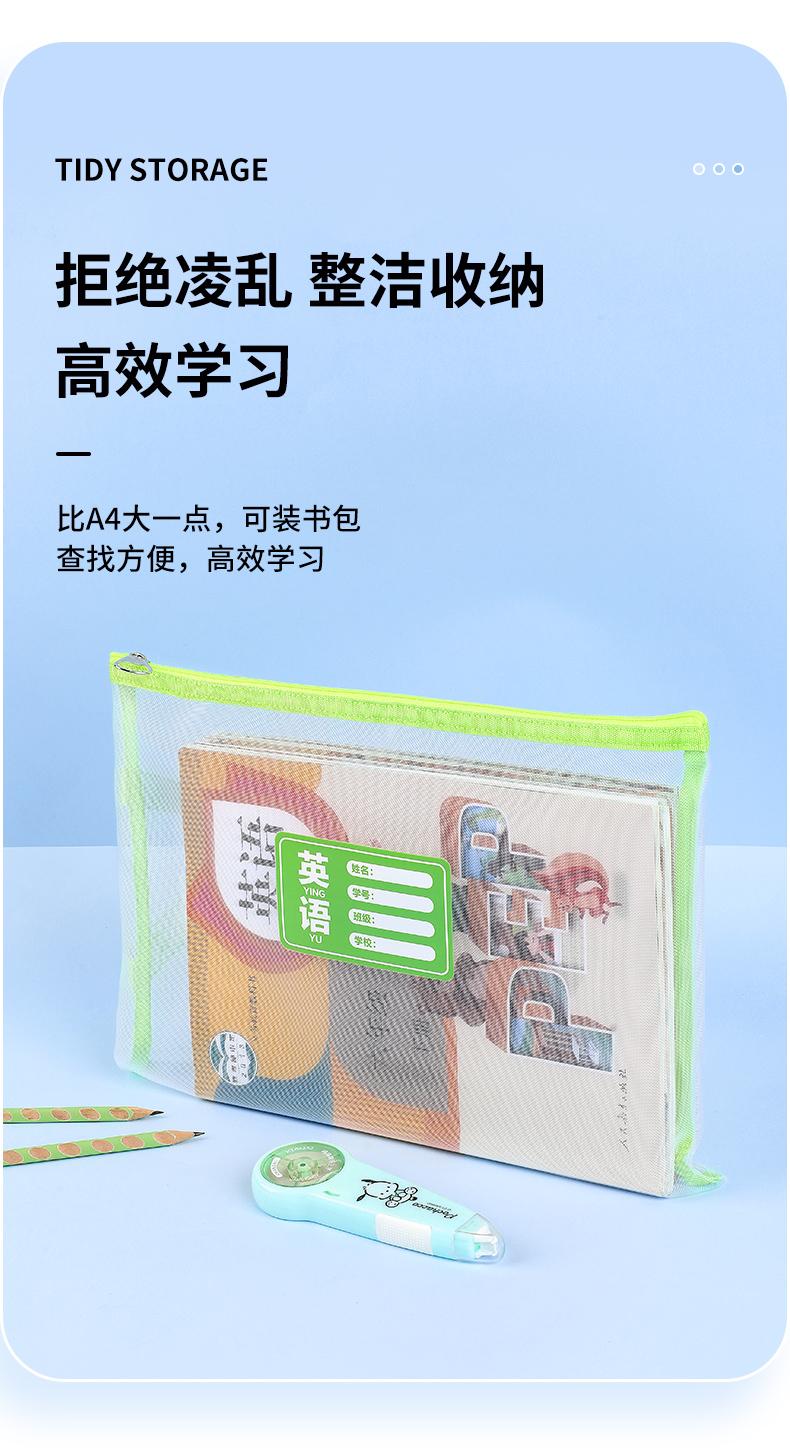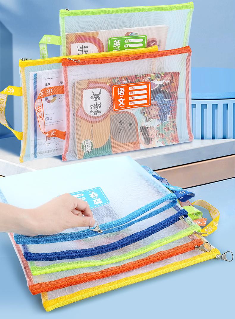【广博】 拉链科目袋A4透明网格学生用文具袋收纳考试资料分科公文袋
