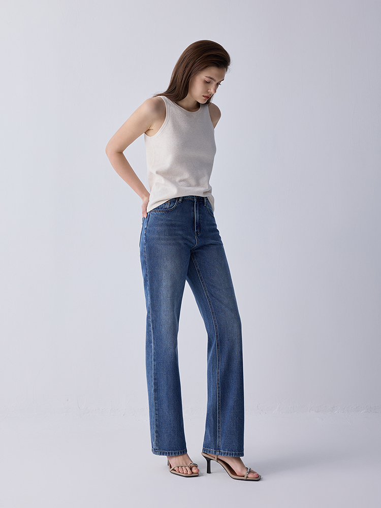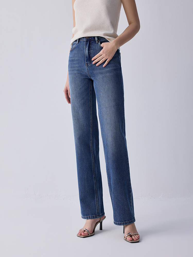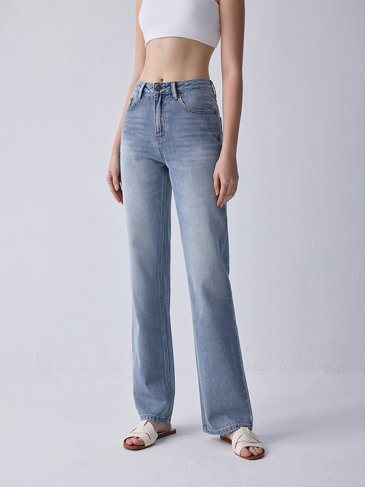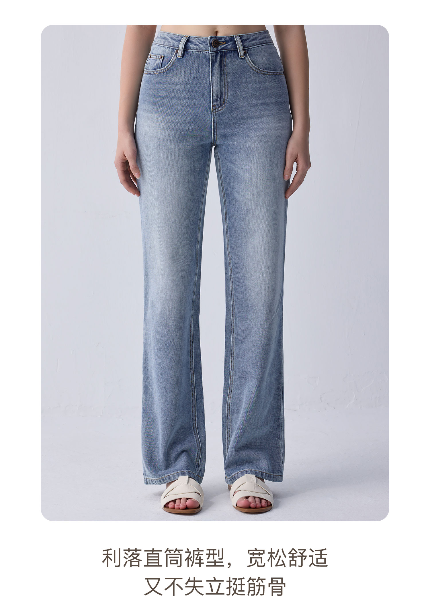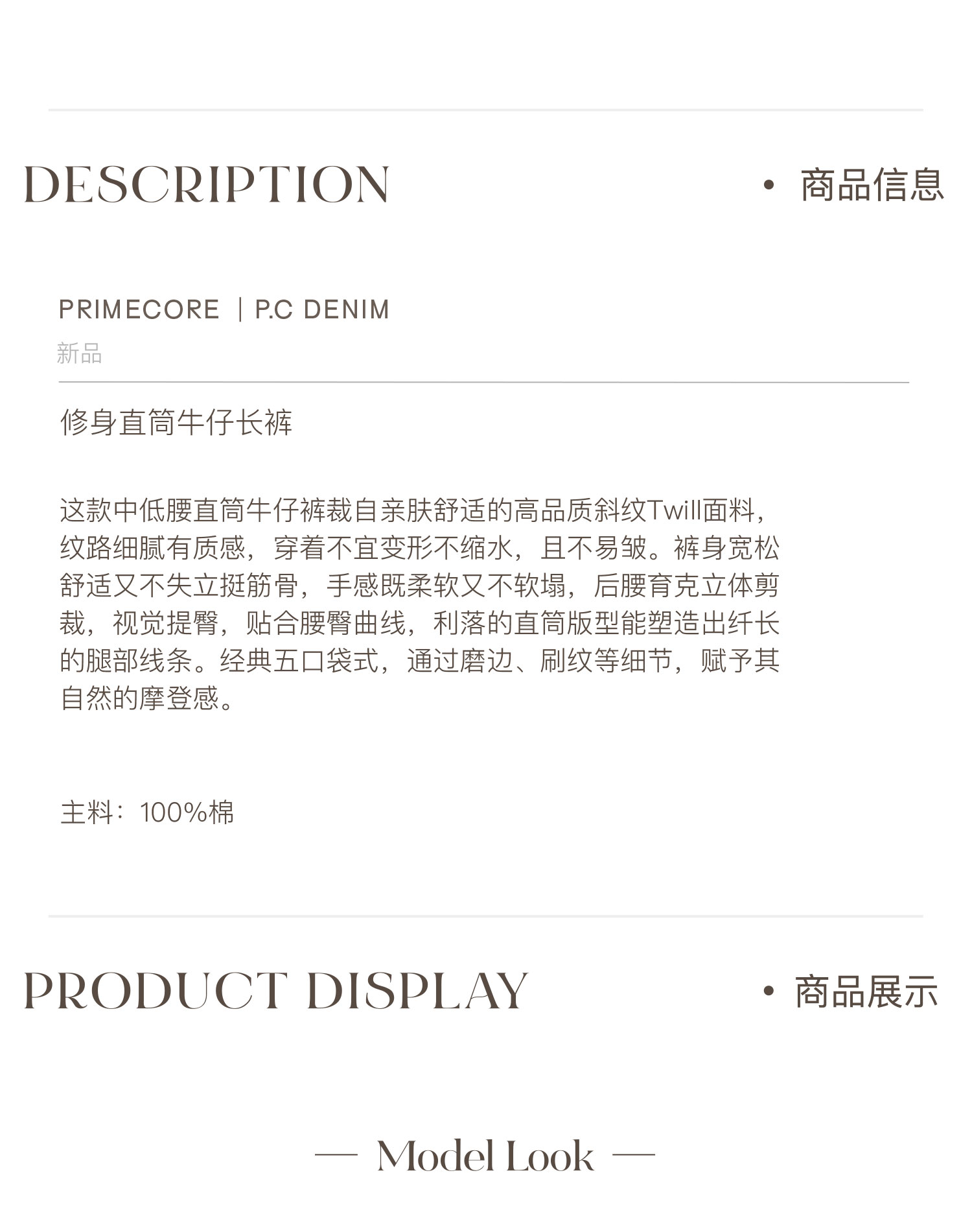 PRIMECORE 全棉丹宁修身直筒四季时髦中高腰直筒牛仔裤王