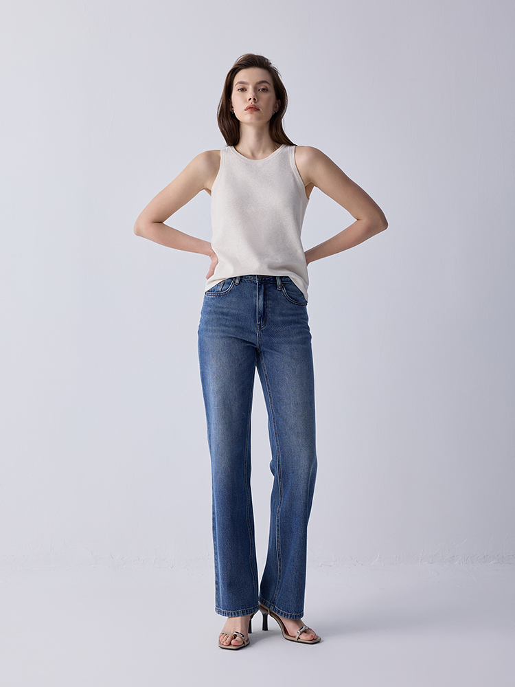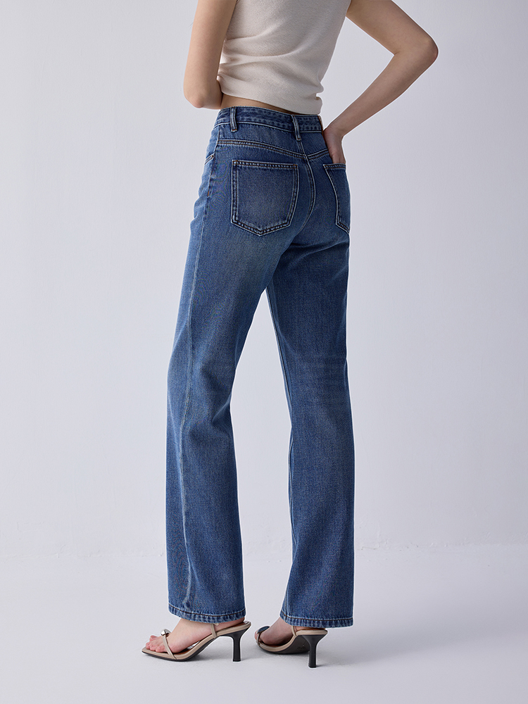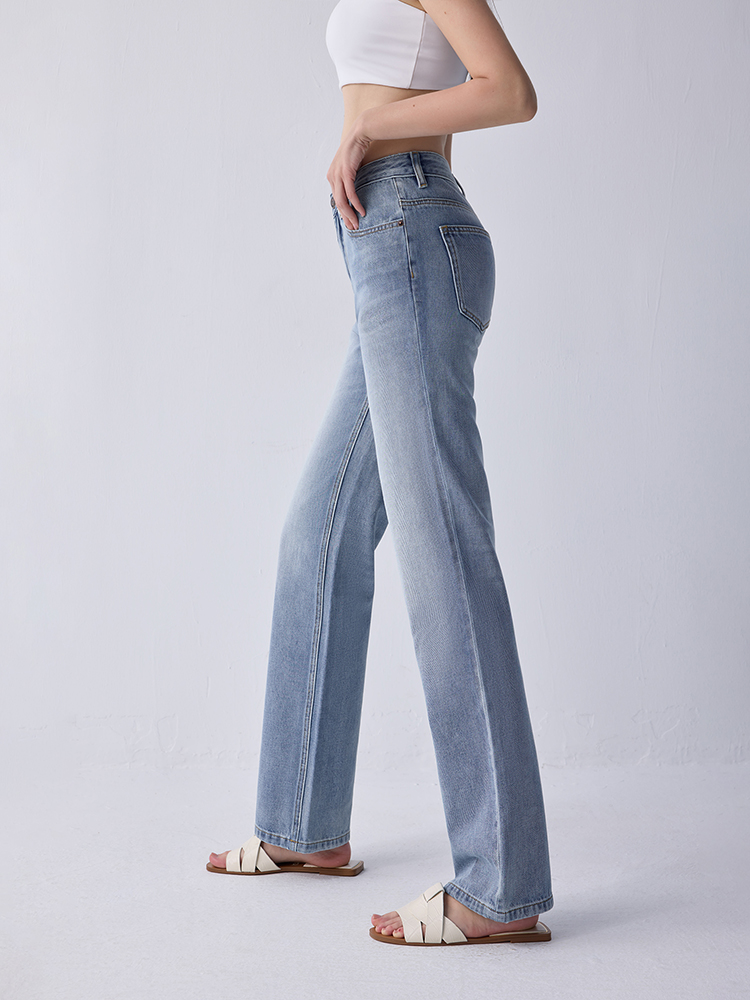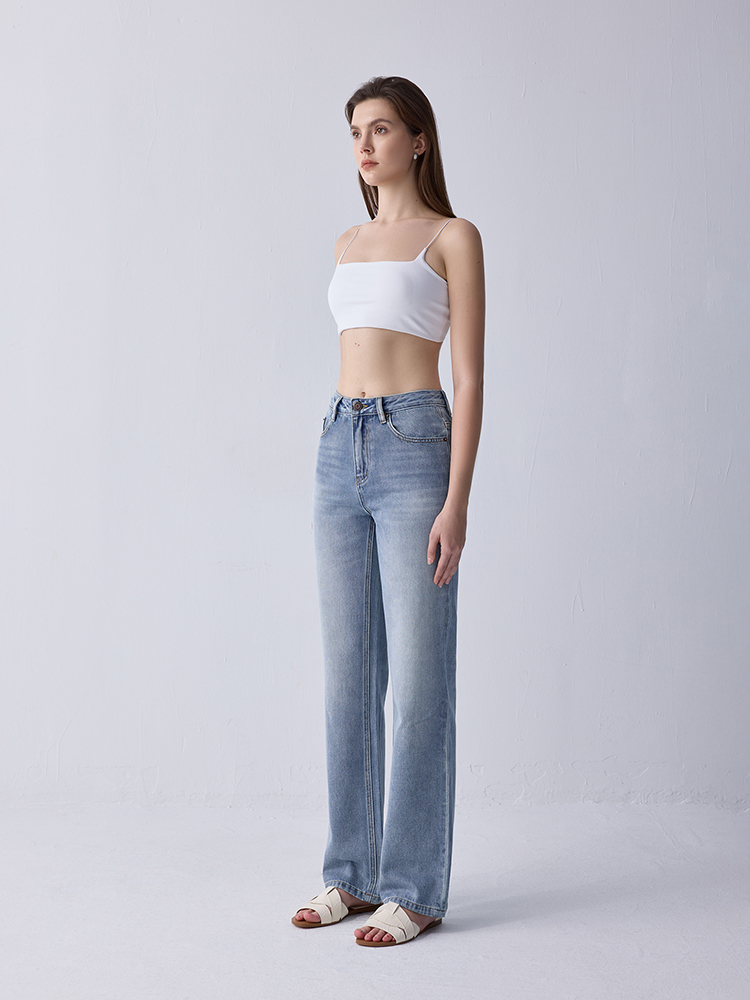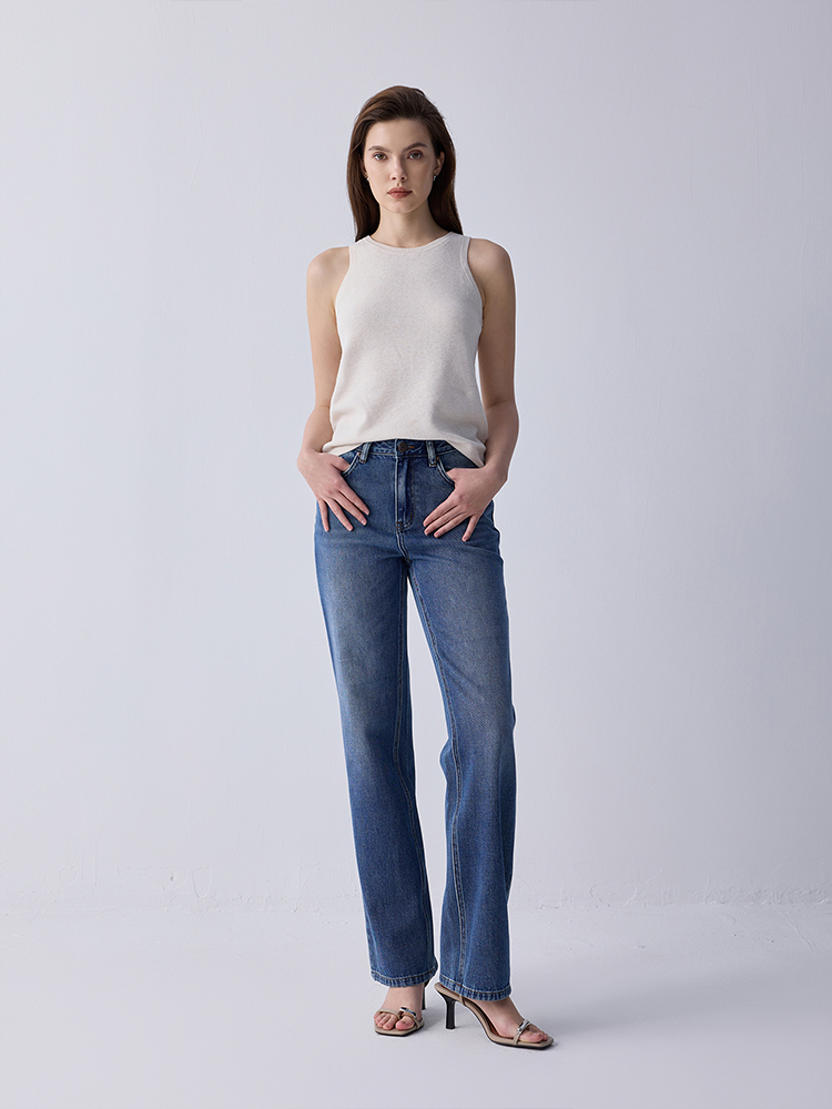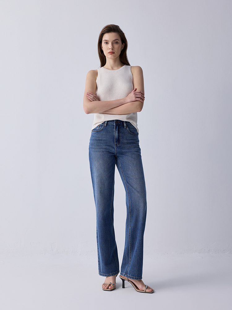 PRIMECORE 全棉丹宁修身直筒四季时髦中高腰直筒牛仔裤王