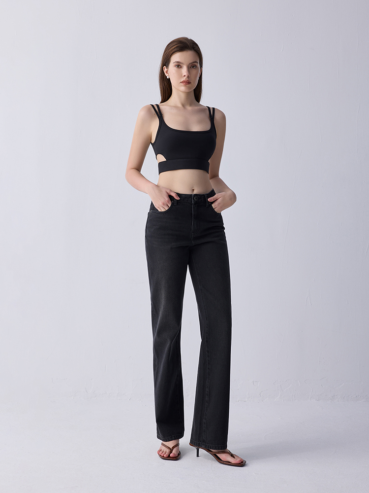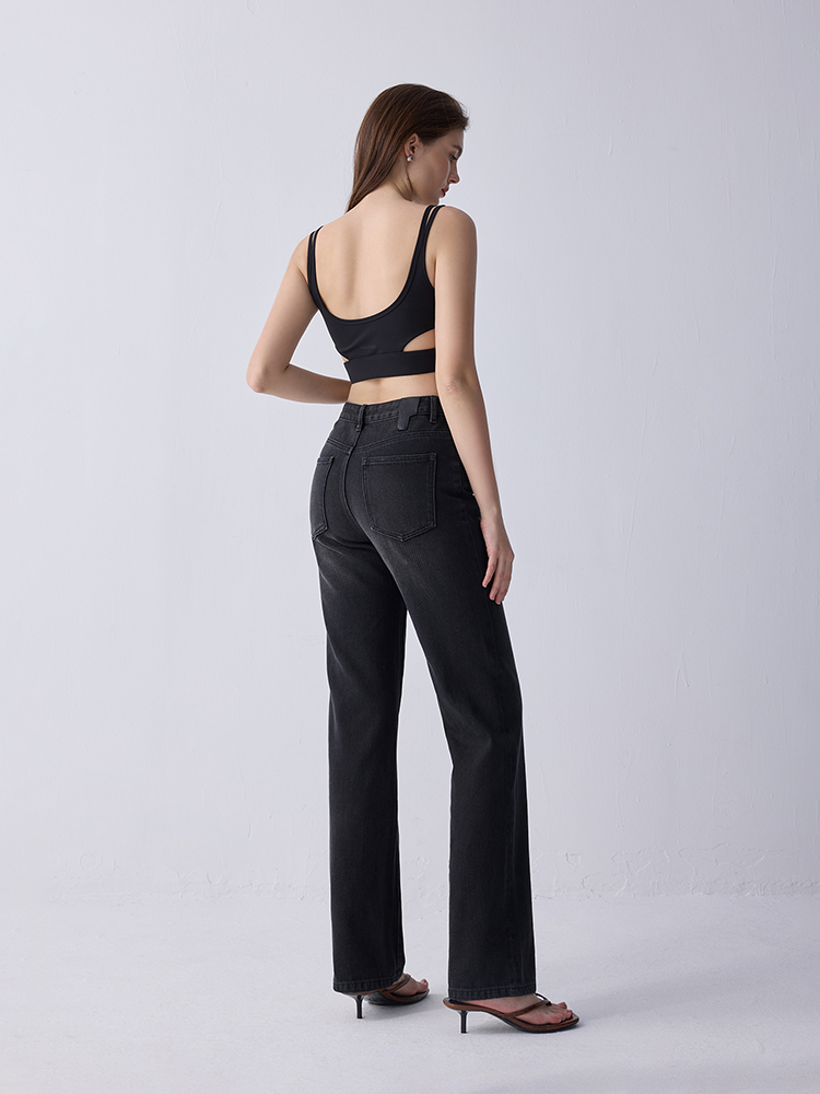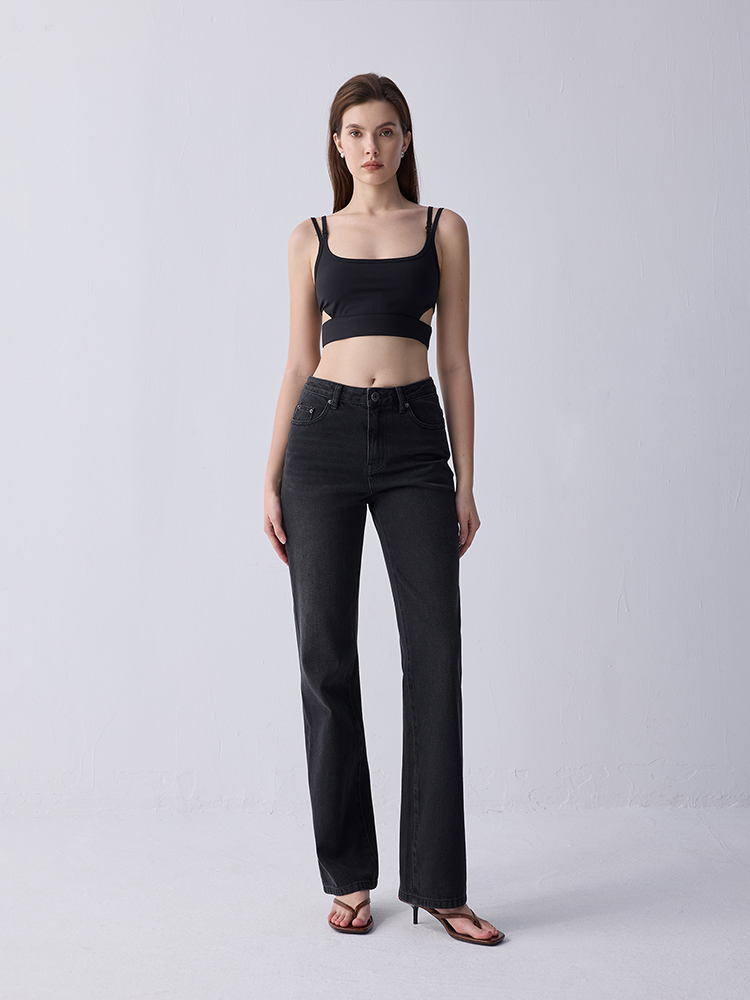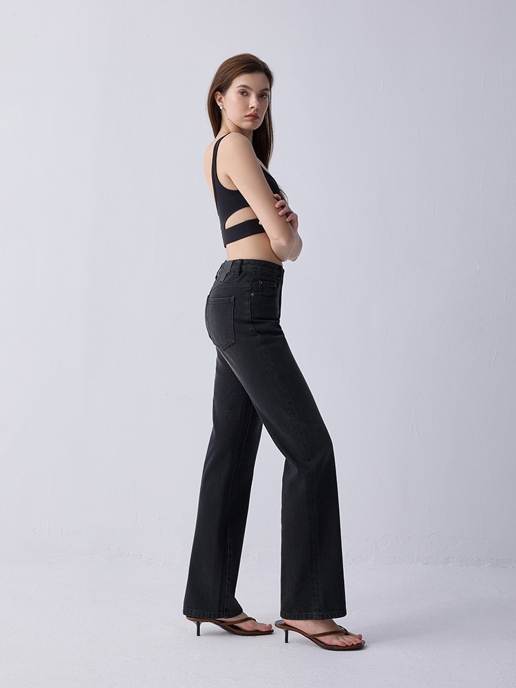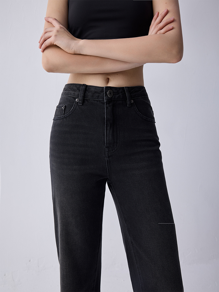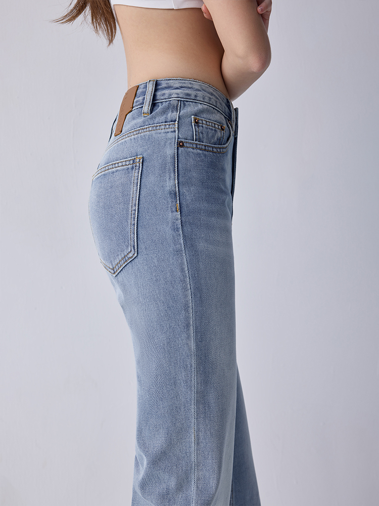 PRIMECORE 全棉丹宁修身直筒四季时髦中高腰直筒牛仔裤王