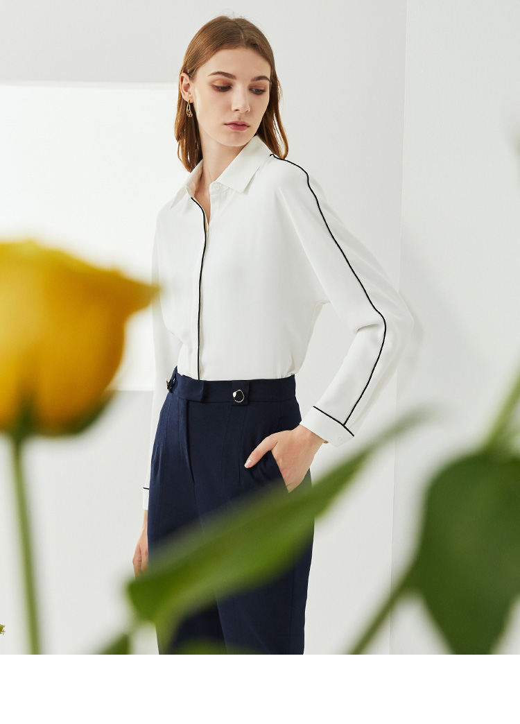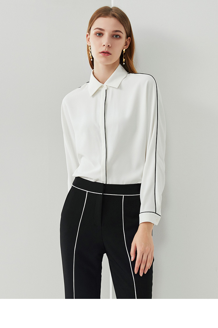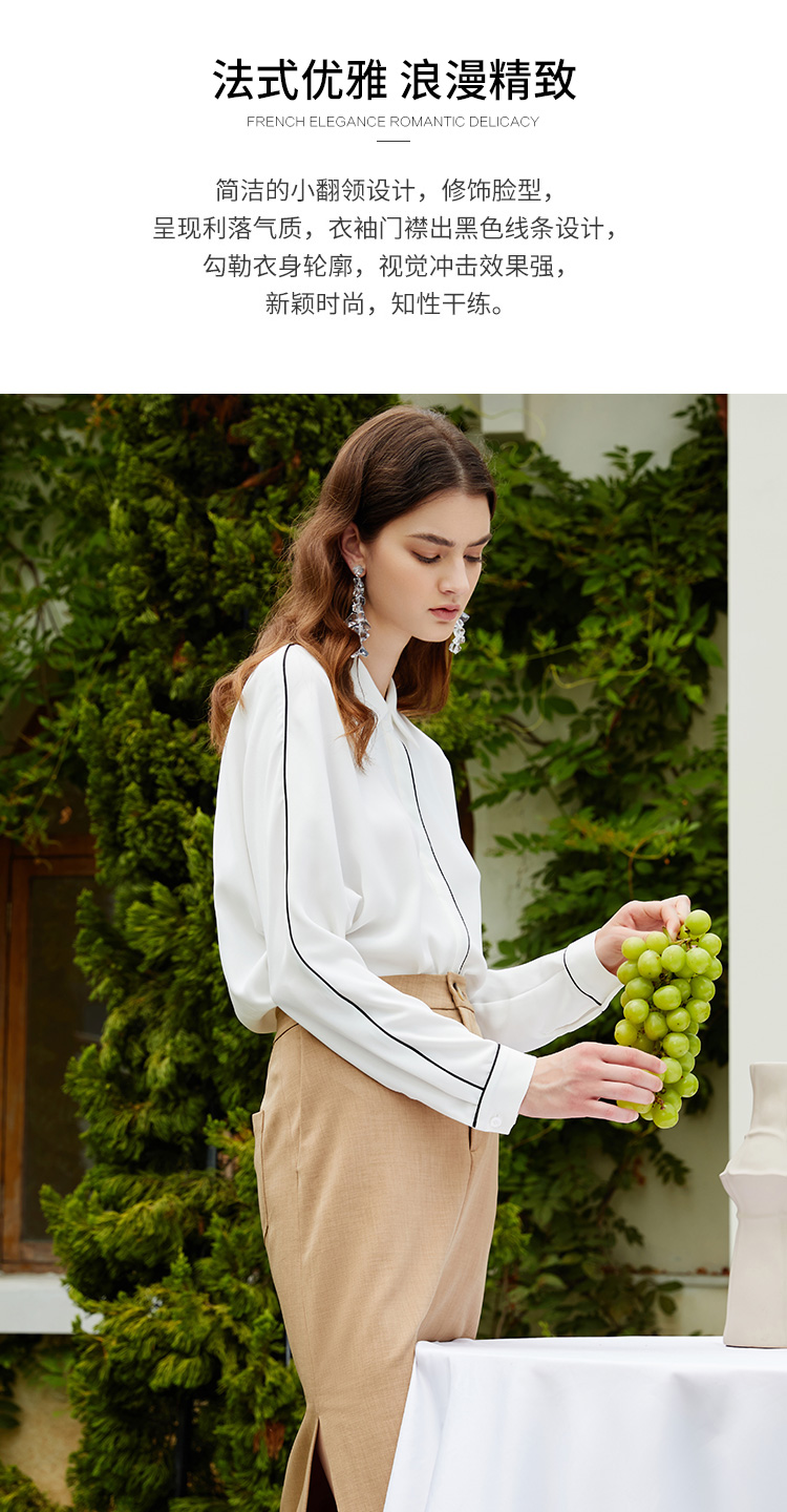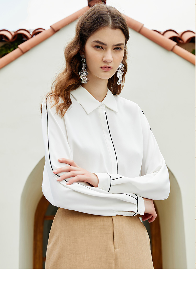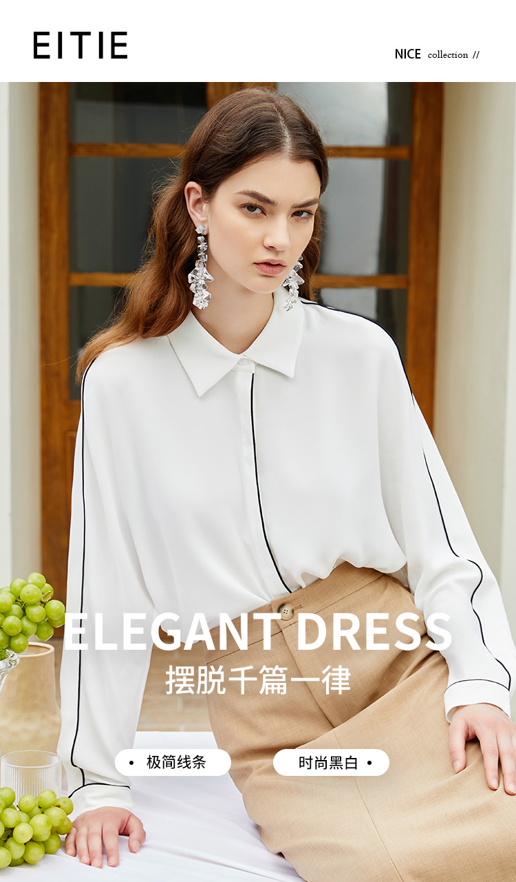 EITIE爱特爱秋季新款气质通勤百搭简约线条直筒白衬衫女上衣C2109814