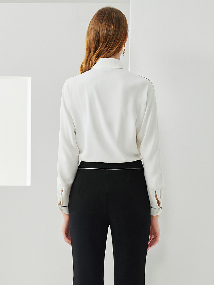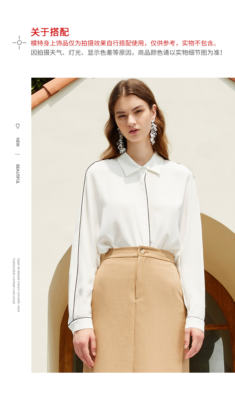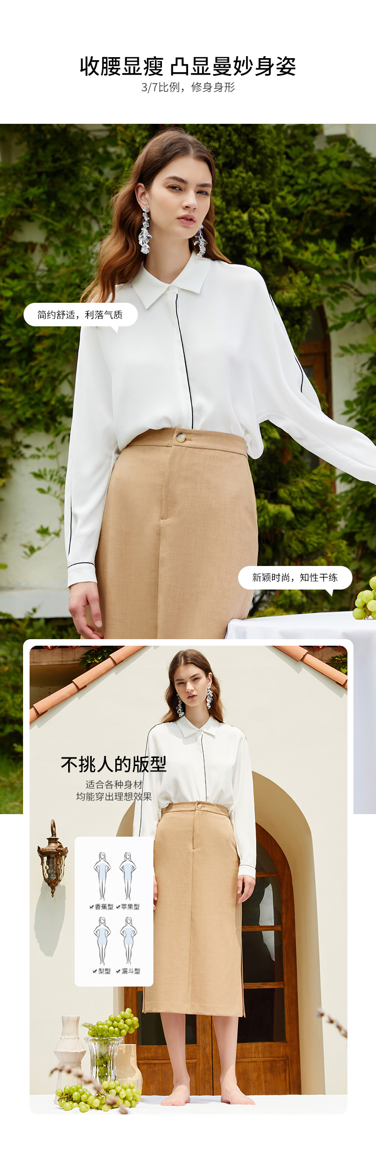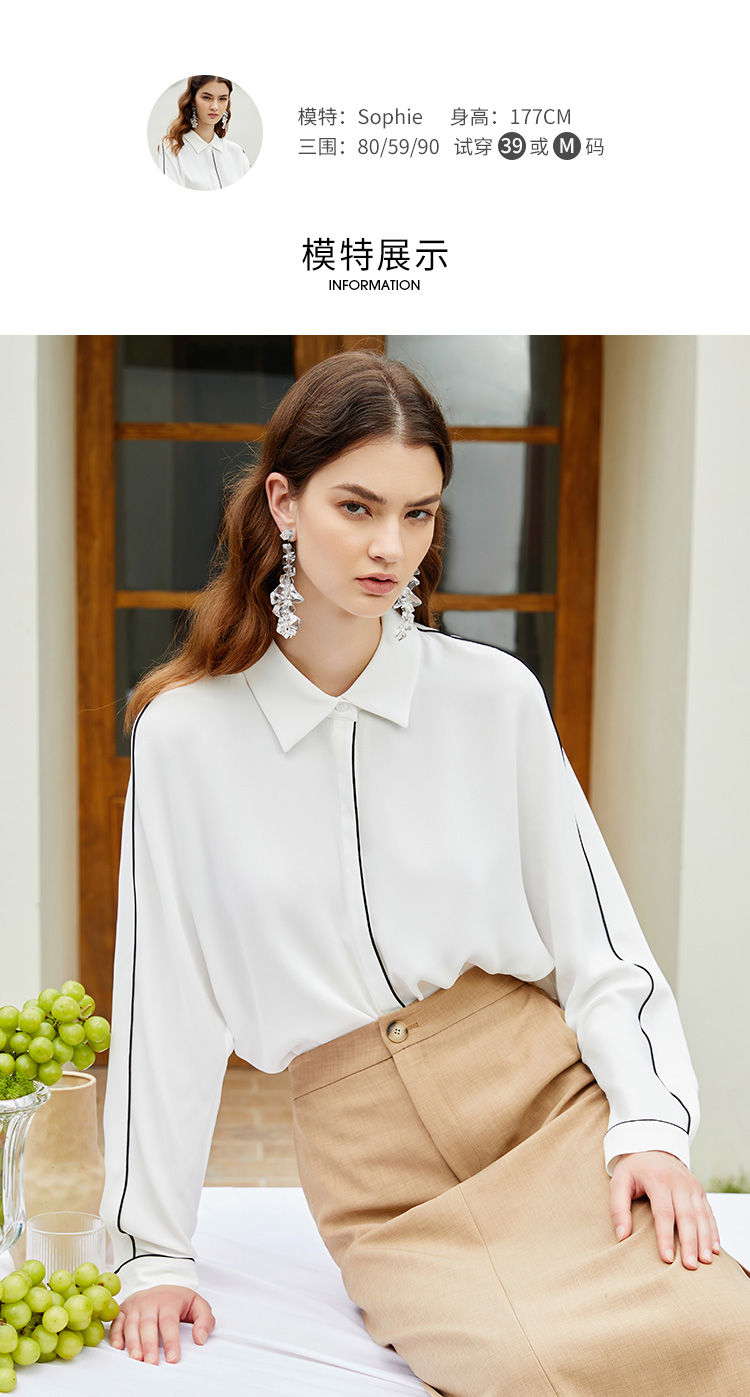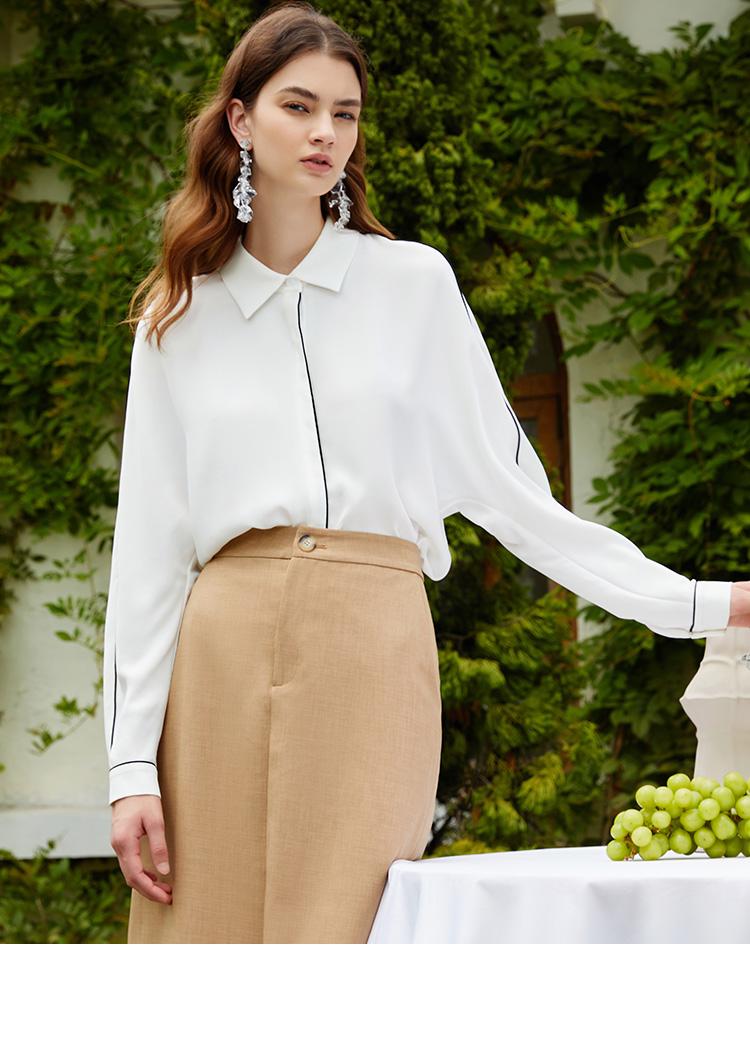 EITIE爱特爱秋季新款气质通勤百搭简约线条直筒白衬衫女上衣C2109814