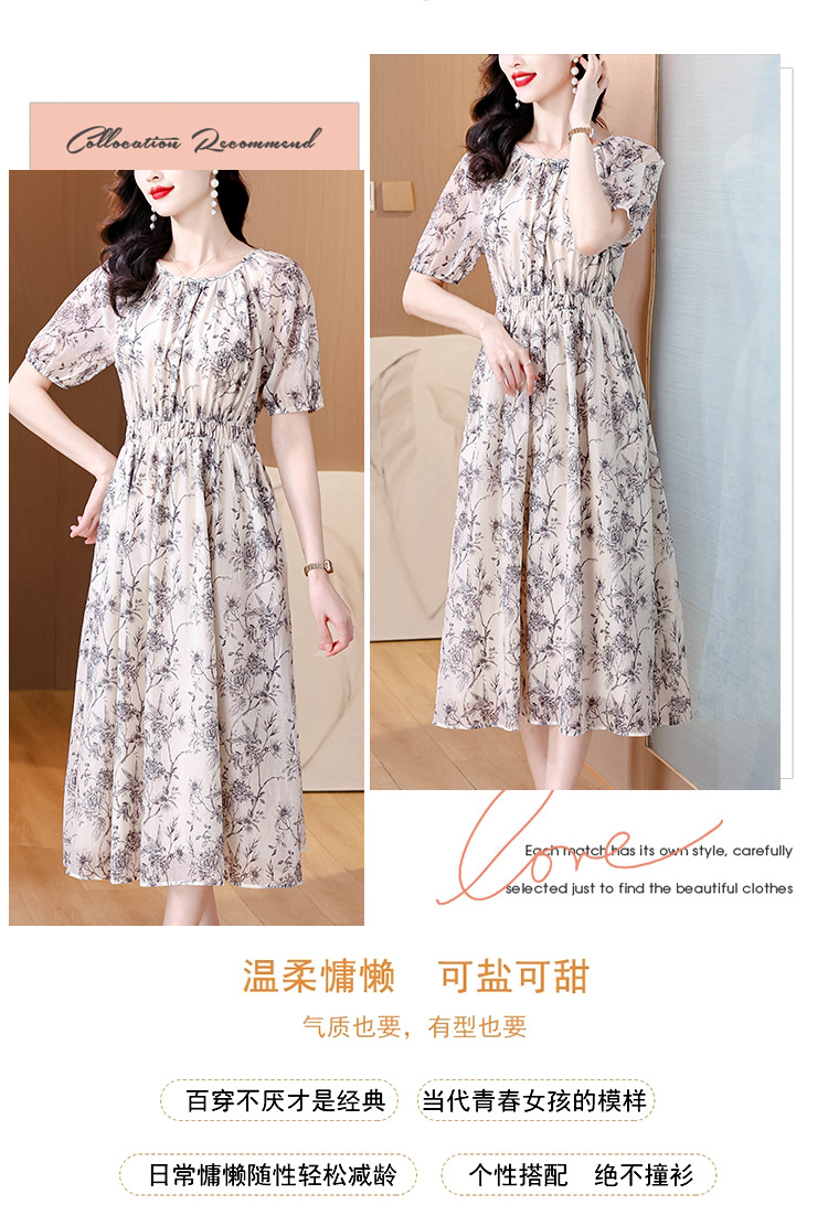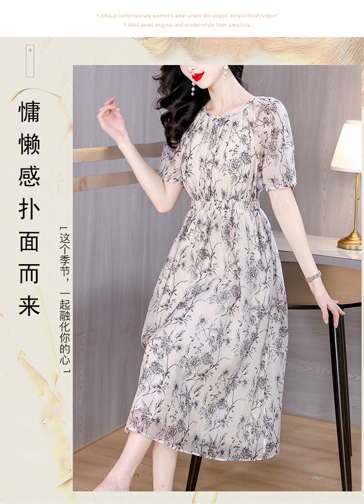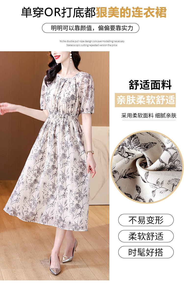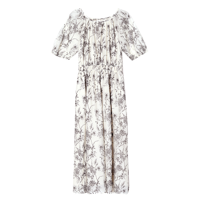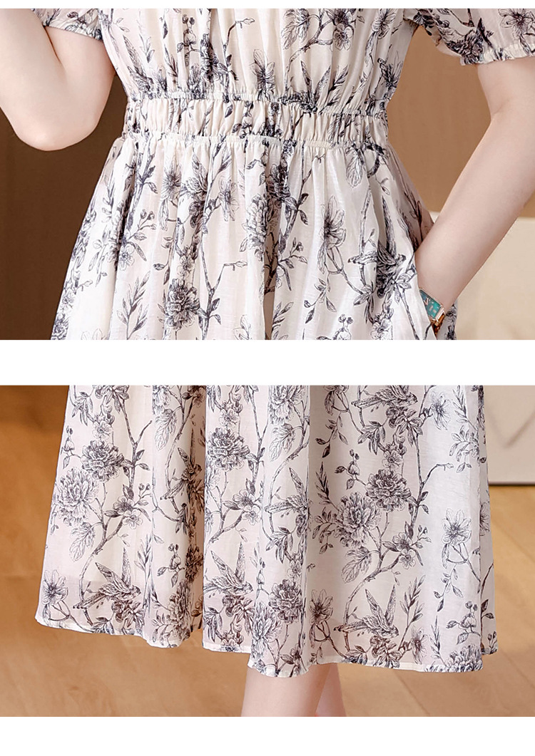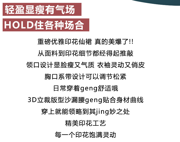 AHM yjr9199法式度假风收腰显瘦印花连衣裙优雅气质减龄a字裙