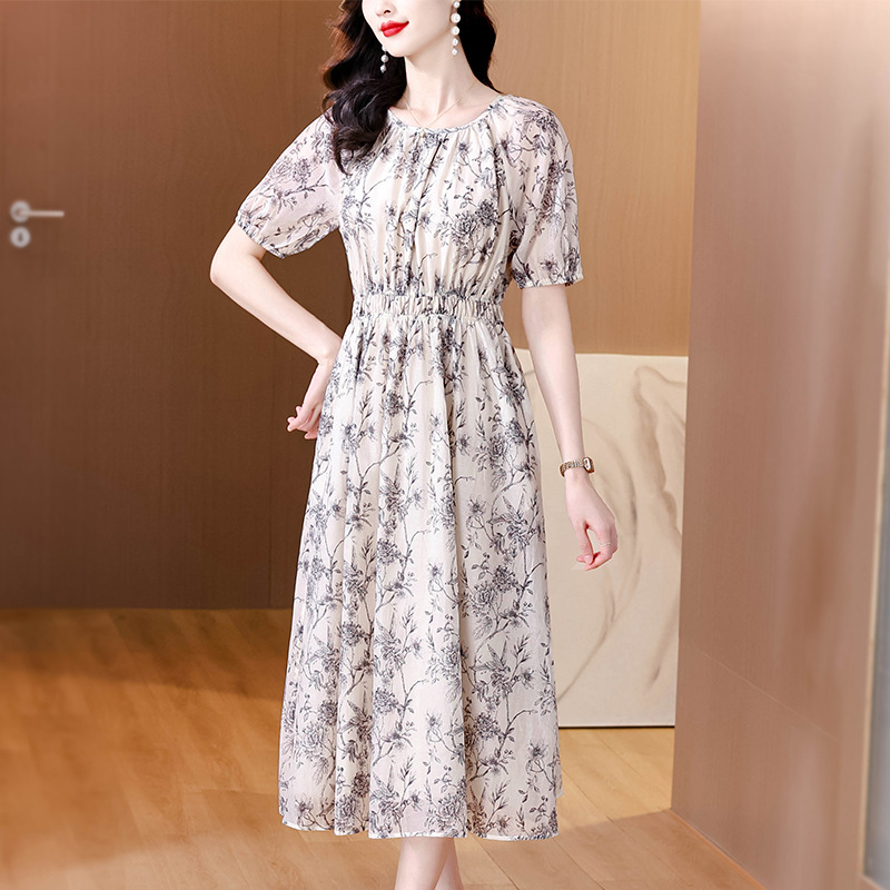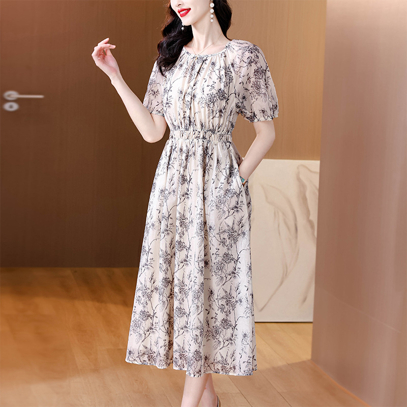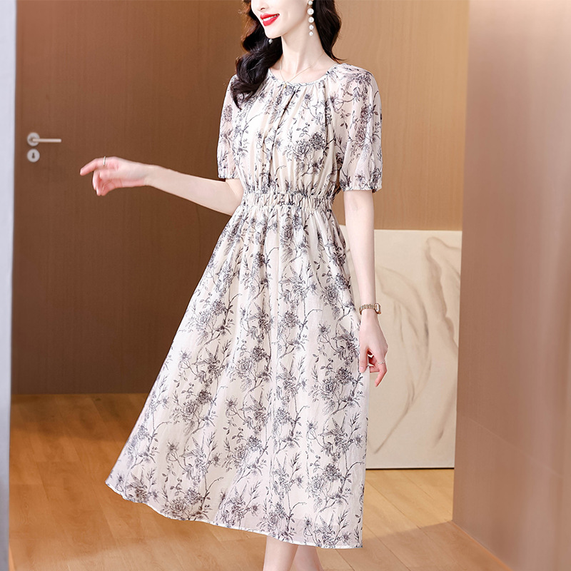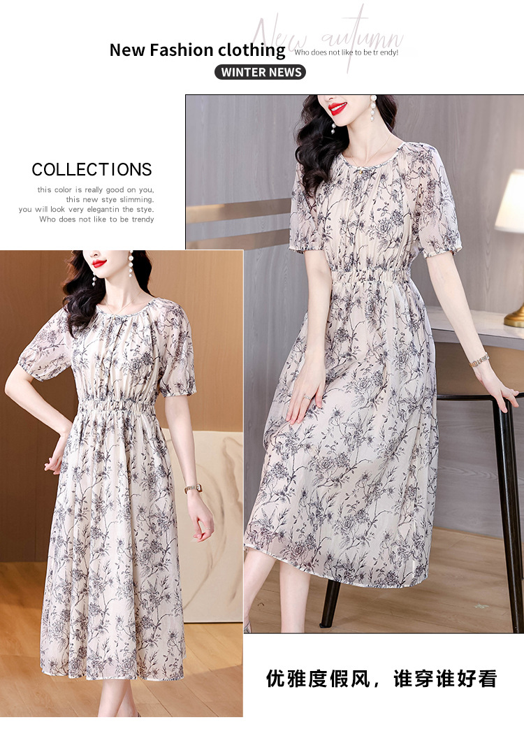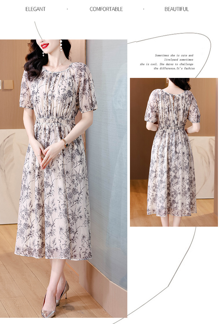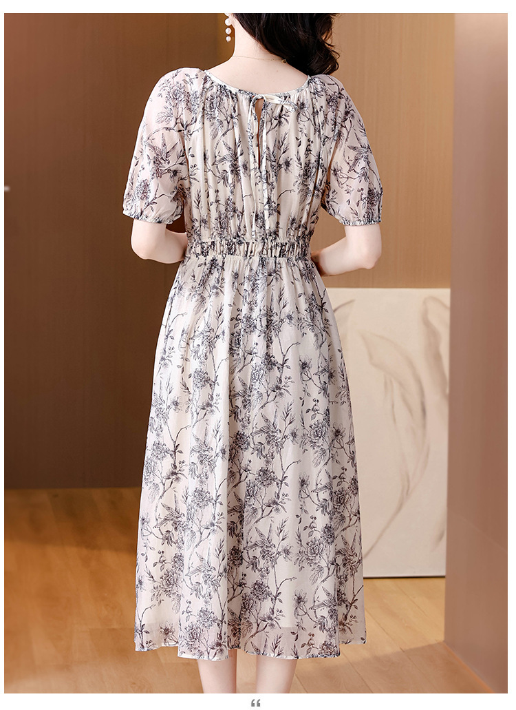 AHM yjr9199法式度假风收腰显瘦印花连衣裙优雅气质减龄a字裙