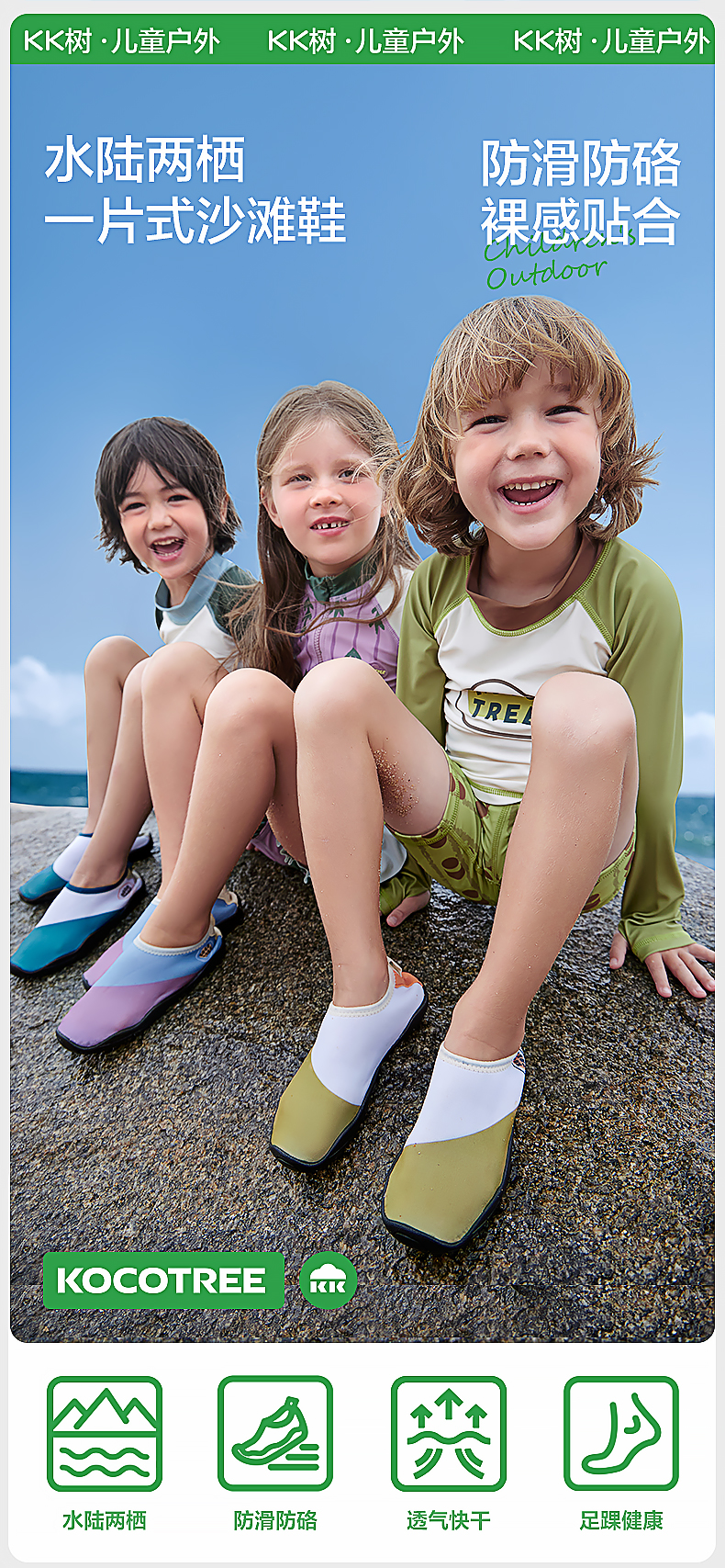 KK树儿童沙滩鞋贴肤海边男童女童溯溪鞋防滑耐割宝宝游泳浮潜鞋潮汐全能沙滩鞋