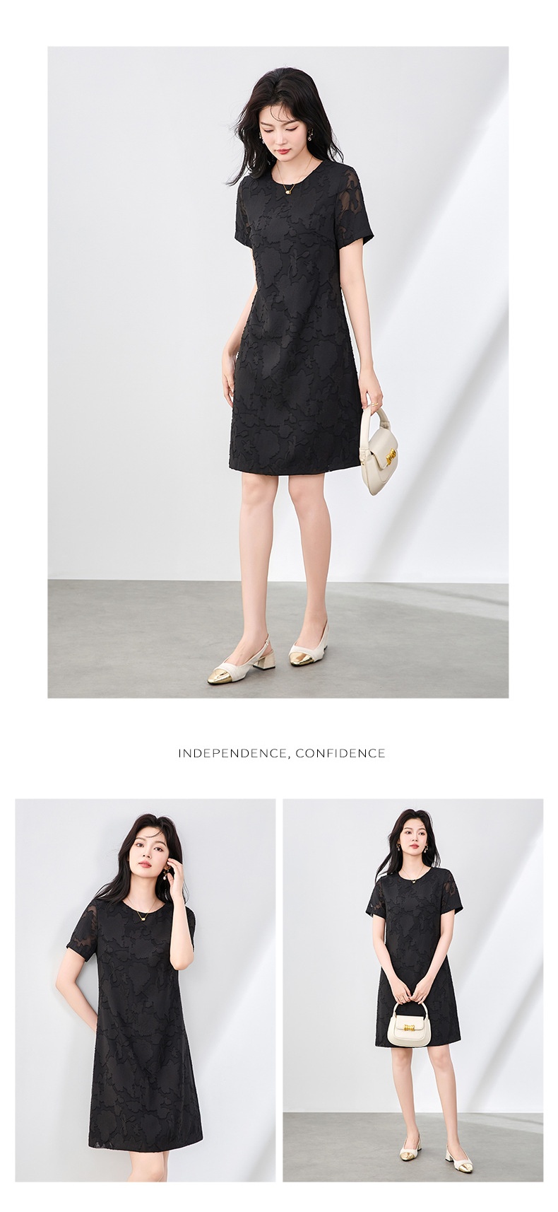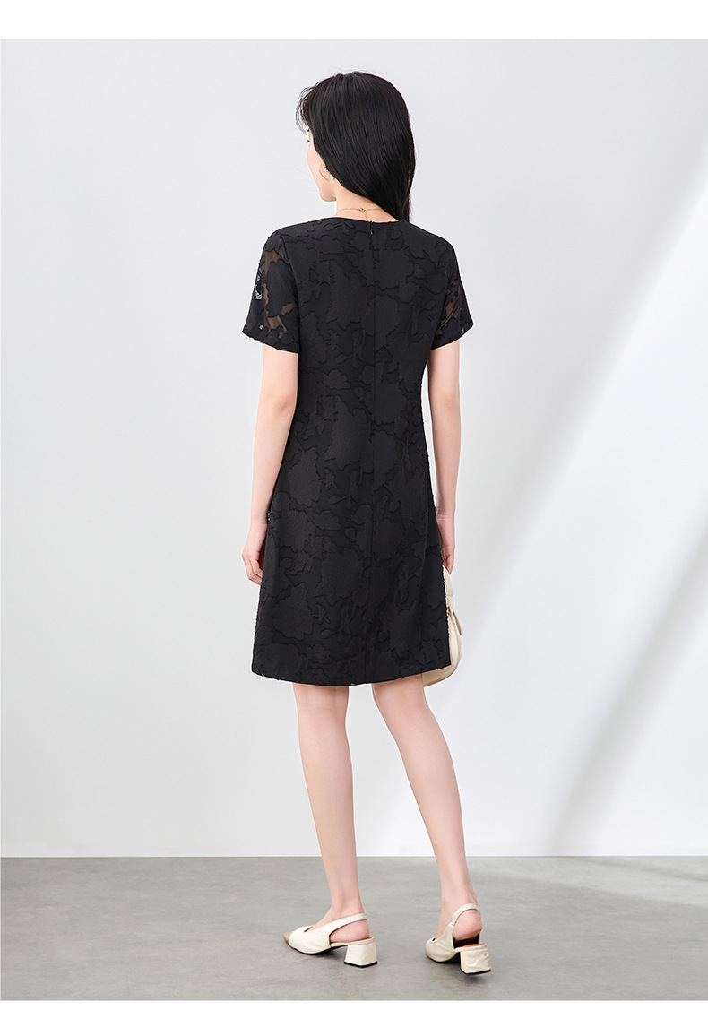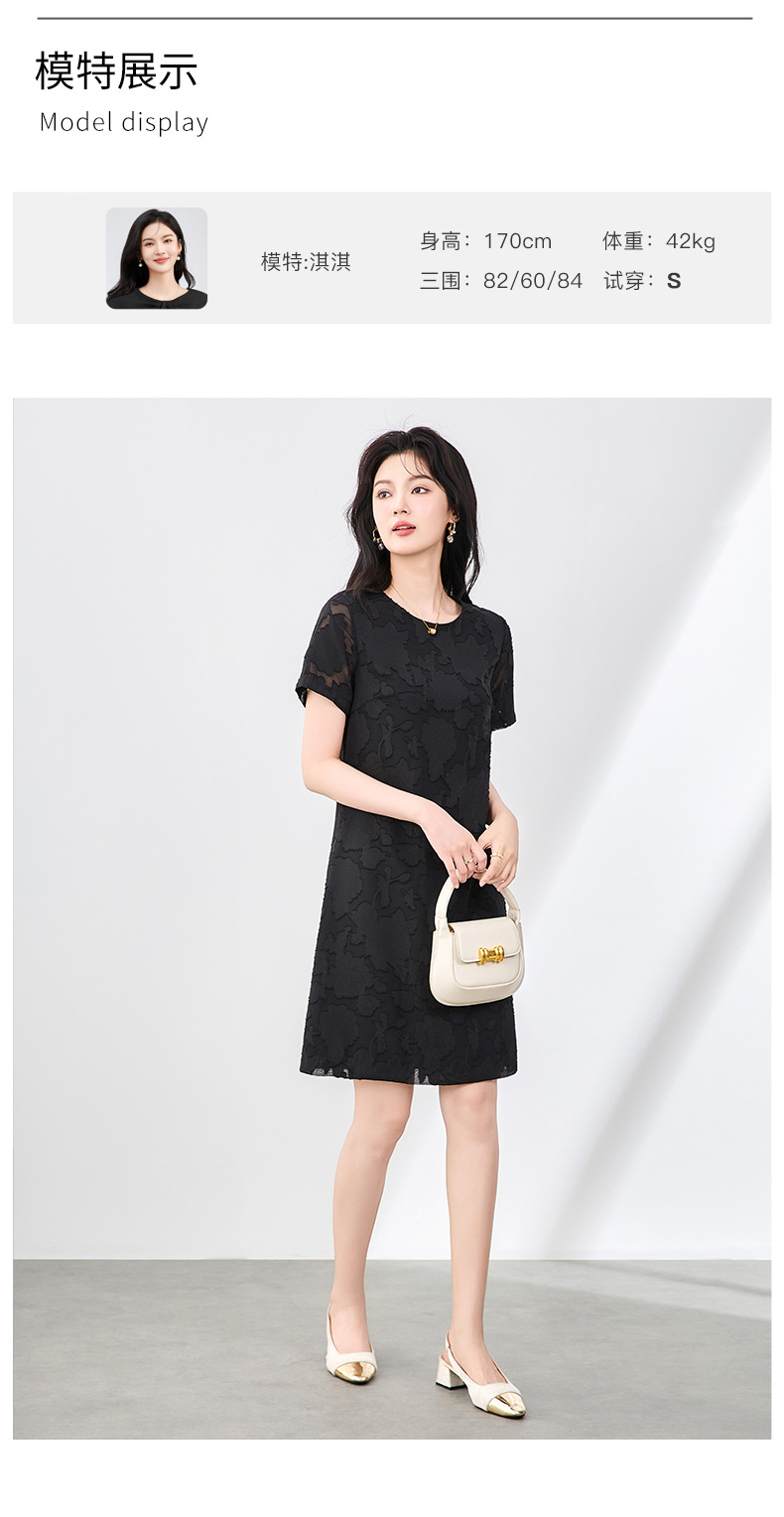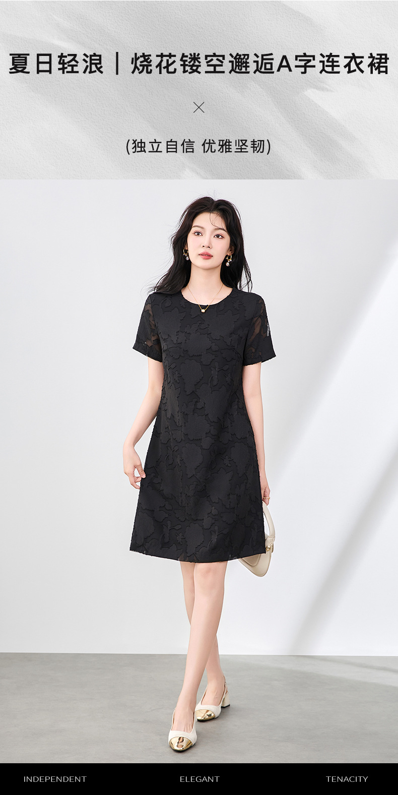 「高货wl」全新升级【铂金会员293/天猫399/差价106】(11347)洛诗琳高级感烧花连衣裙2025夏季显瘦遮肉通勤简约A字裙