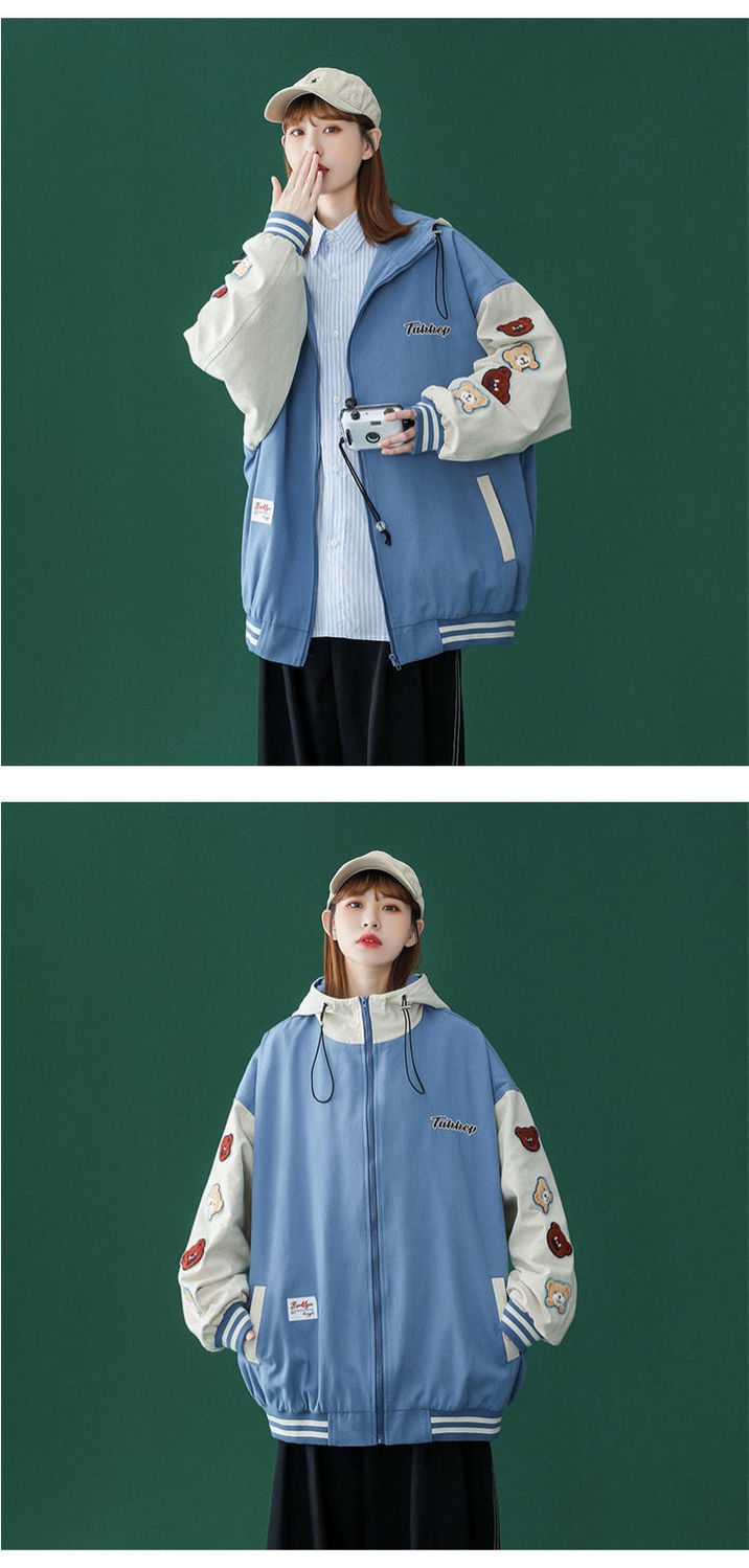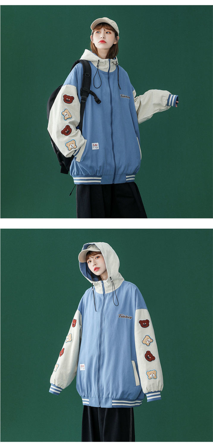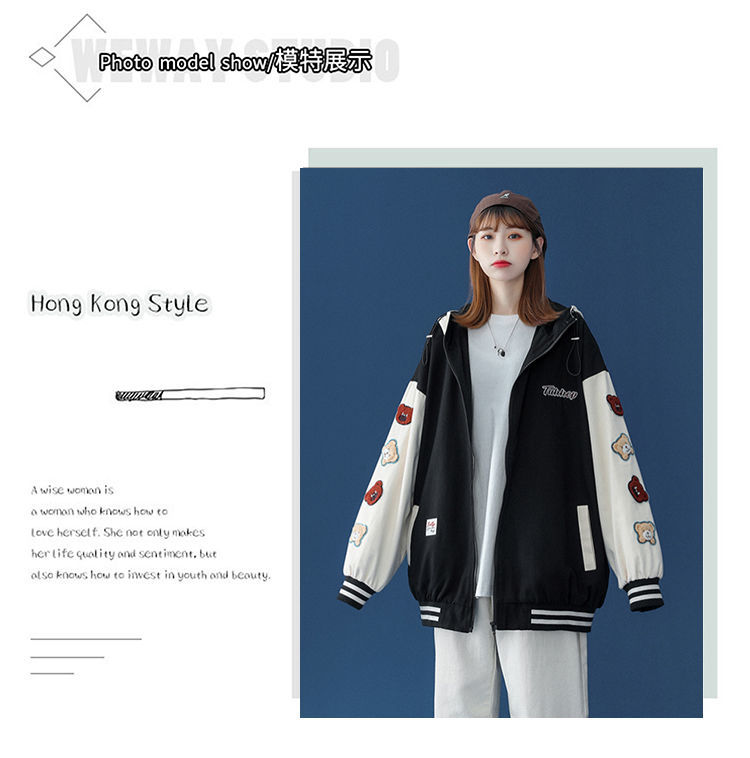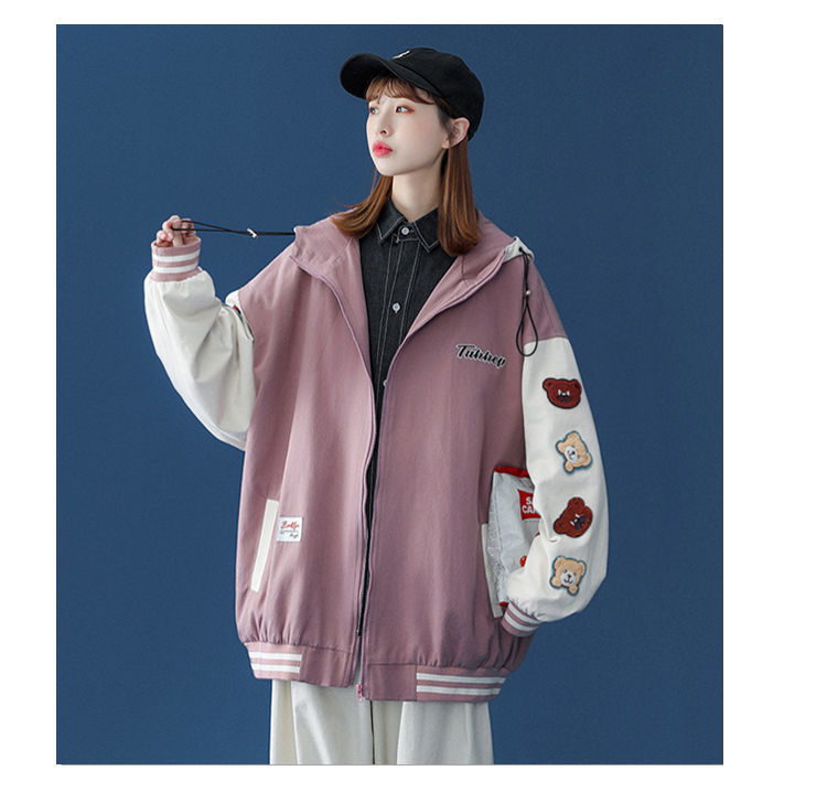 盐系外套女潮ins春秋学生百搭短款棒球服韩版宽松原宿风撞色上衣