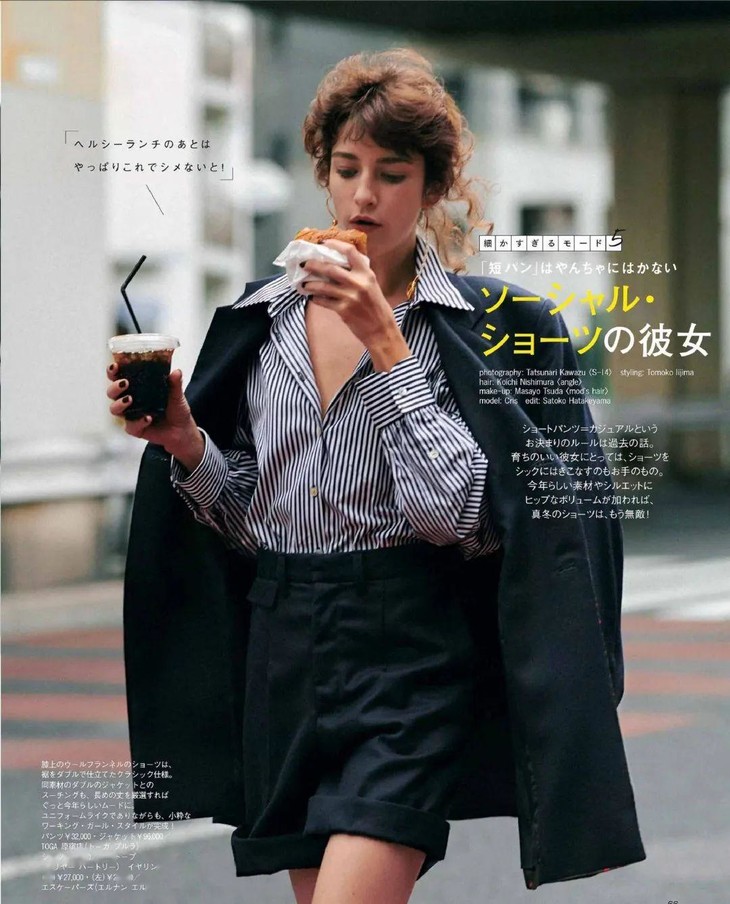西装短裤也是经典单品了,今年更是时尚圈的宠儿!配上一件衬衣,一件西装打造非常时尚的职场装束,而配上T恤或者一件吊带,穿上一双小白鞋,率性休闲风十足。穿上她让我想一个时尚词“轻松的时髦感”正正好。
