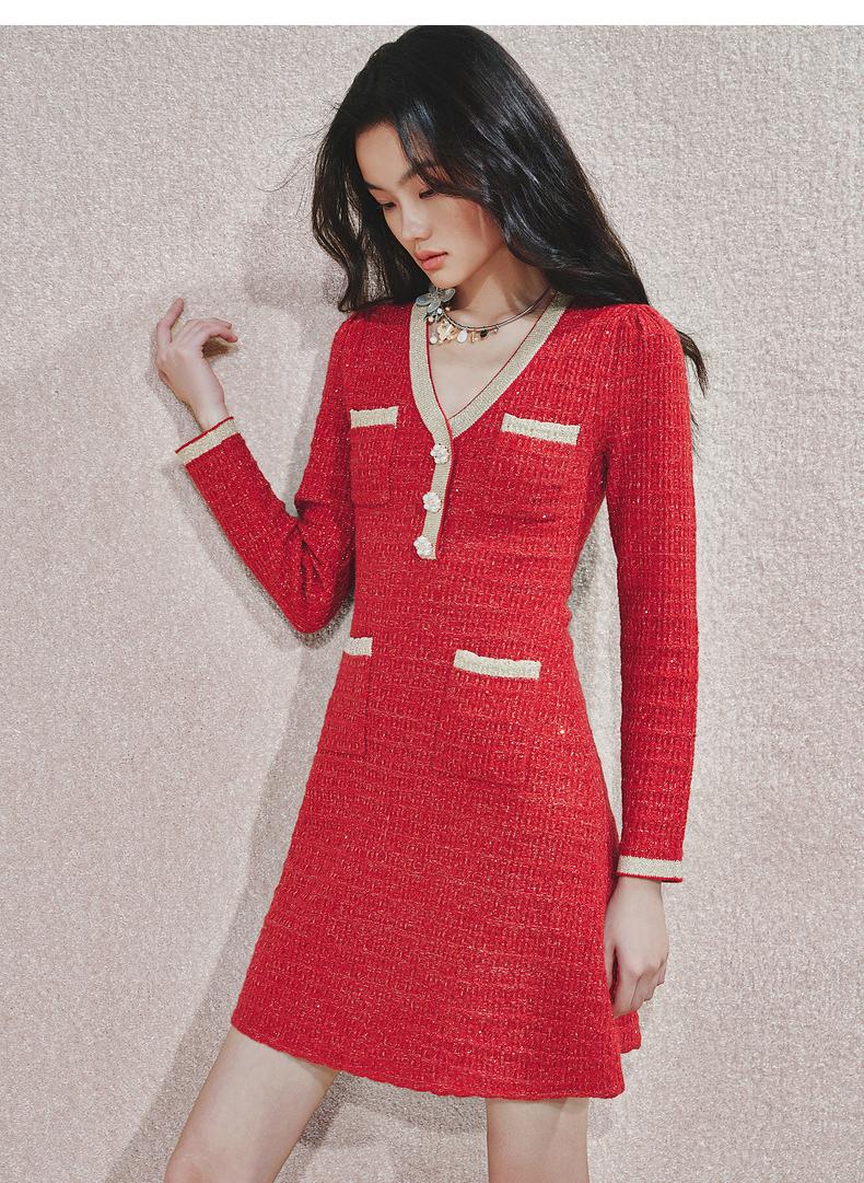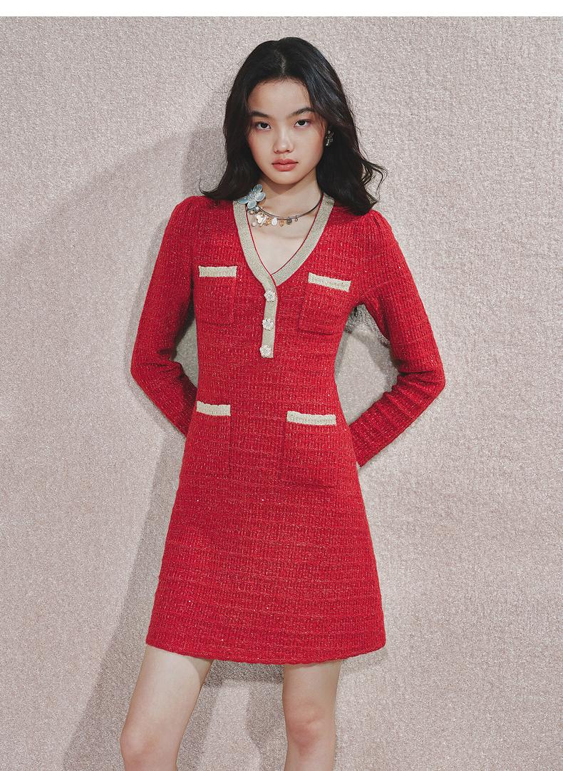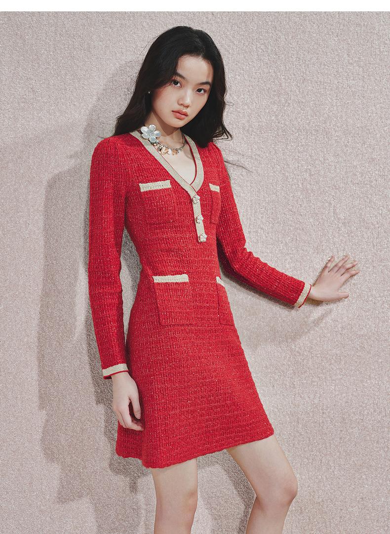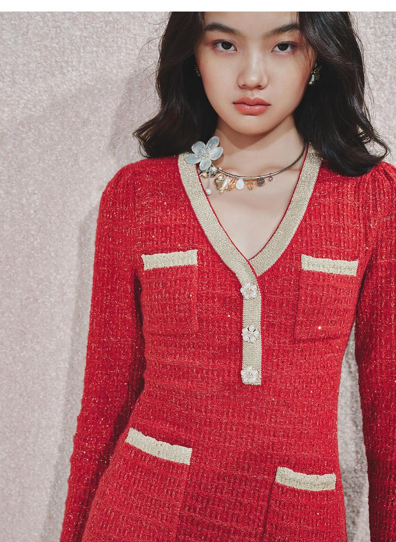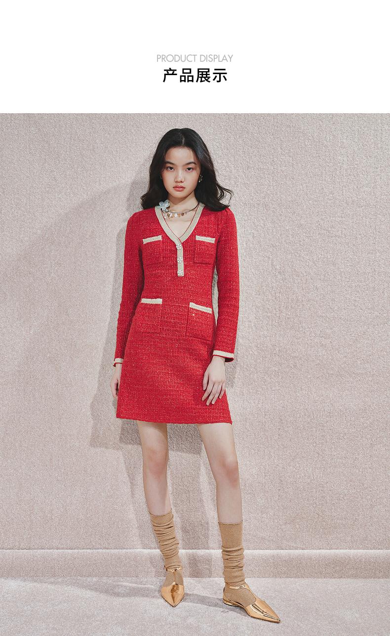 MAXRIENY【商场同款】精致贵雅感连衣裙2024秋冬新款千金小香裙子(货号:MS85DR511)