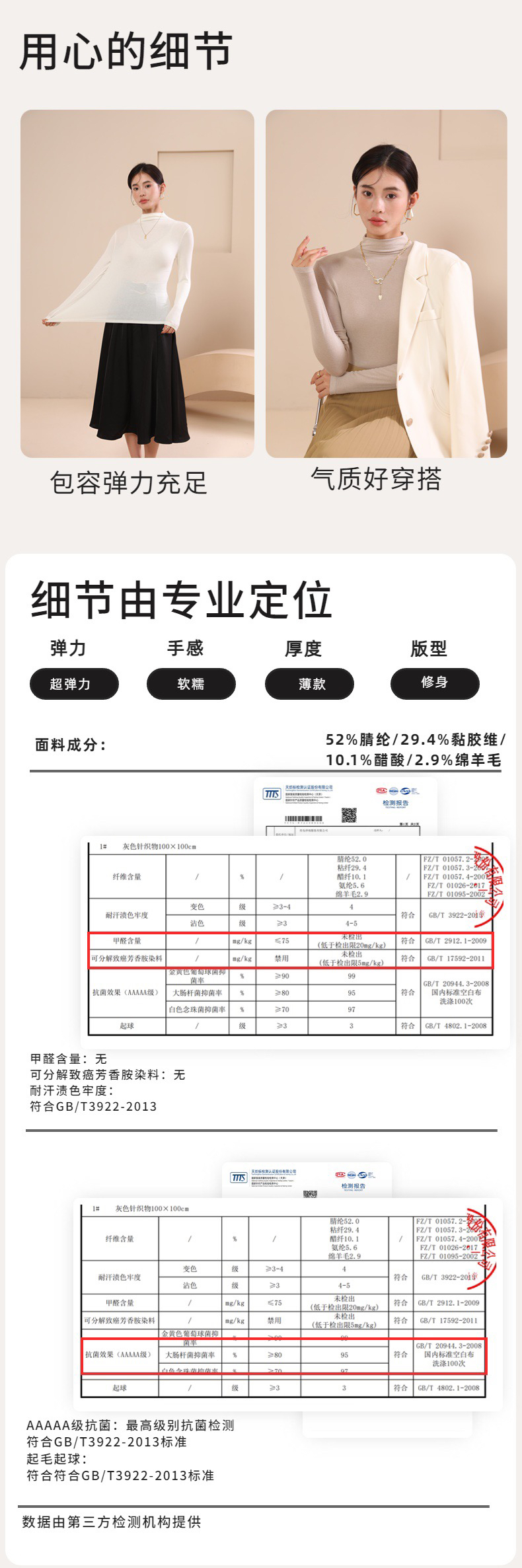 每一件都附带了“检测报告”👇中国国际认证!~【醋酸绵羊毛】弹力罗纹衣
