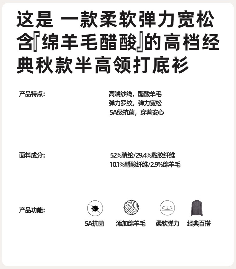 大表姐同款的肌底T,人手必备~绝对的刚需!~🔺早秋新款时髦三色进阶Bl备肌底衣!这是一款柔软弹力宽松含【绵羊毛醋酸】的高档经典秋款半高领打底衫!