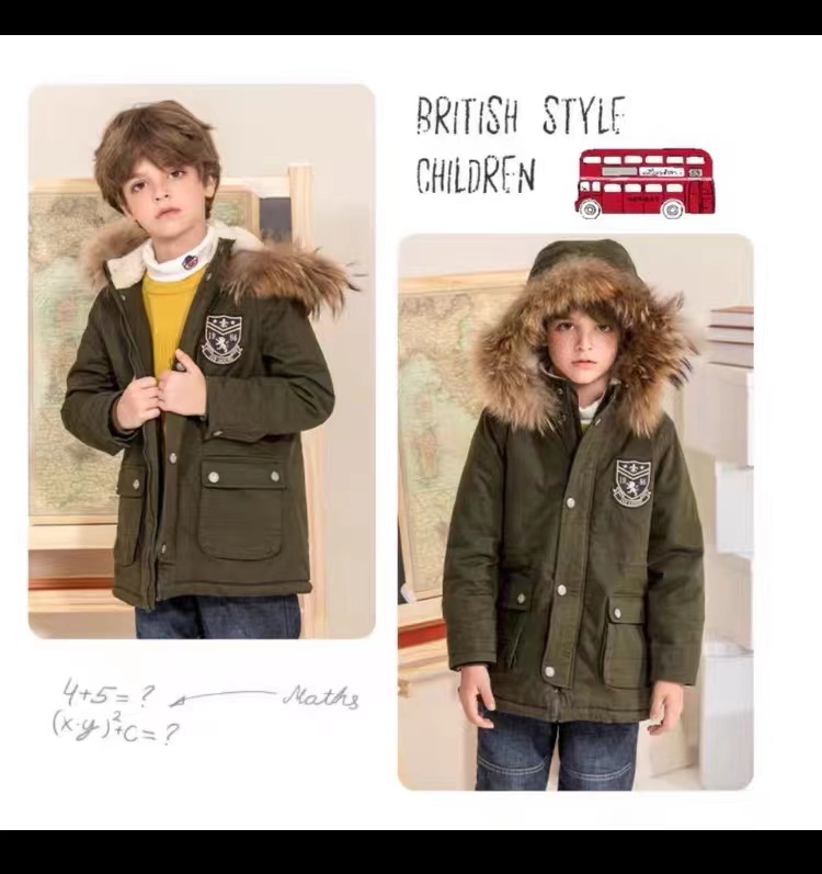 IVY HOUSE-常春藤男童派克棉服 尺码110-160 复古墨绿色 内里羊羔毛防寒保暖