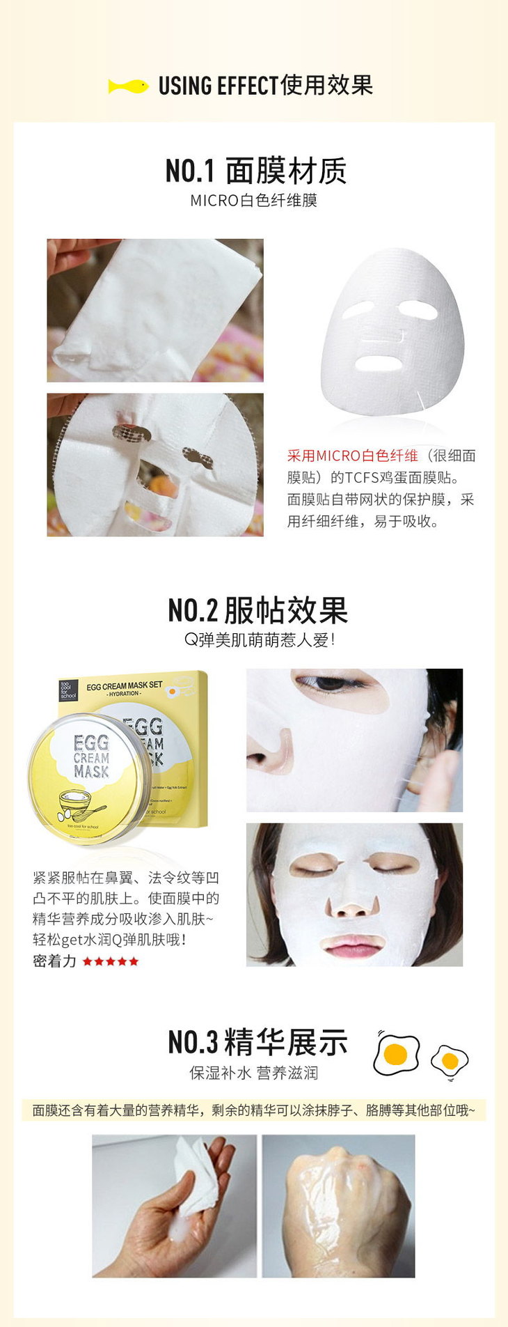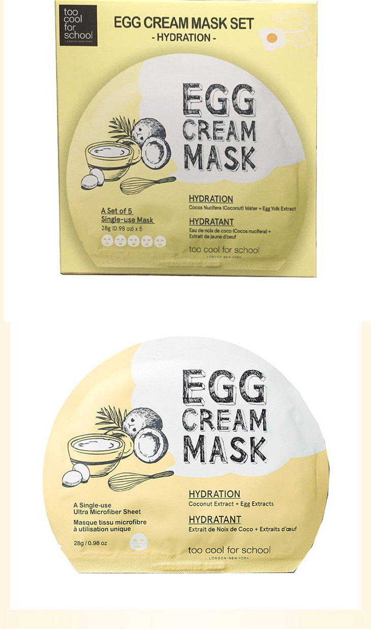 韩国Too cool for school鸡蛋面膜1片(黄色/蓝色)