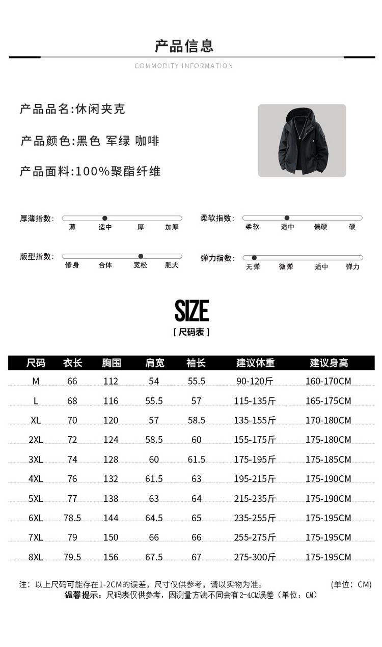 【DSL】大依优型大码男装春秋休闲夹克连帽商务运动长袖外套加大码上衣