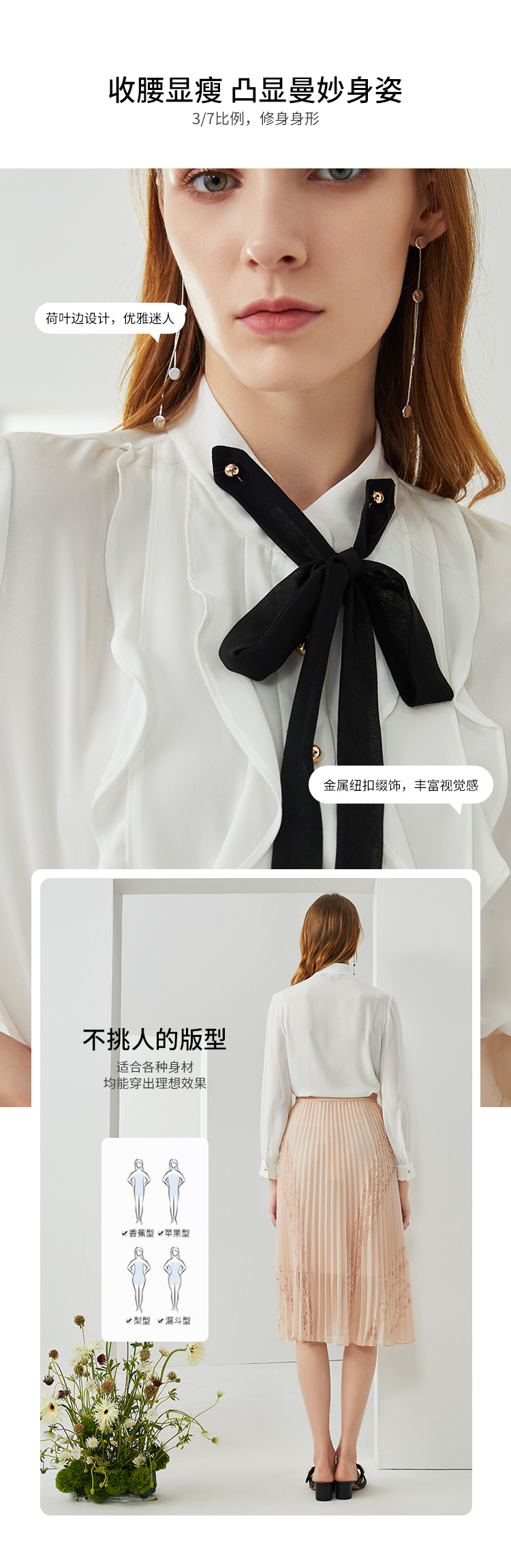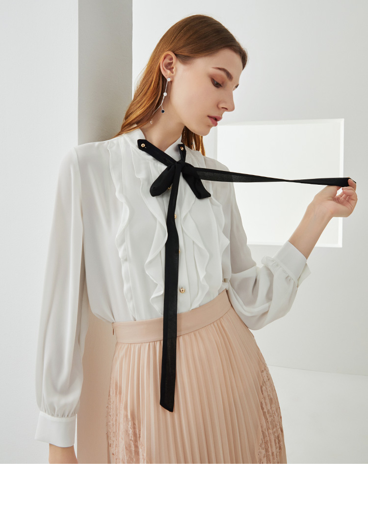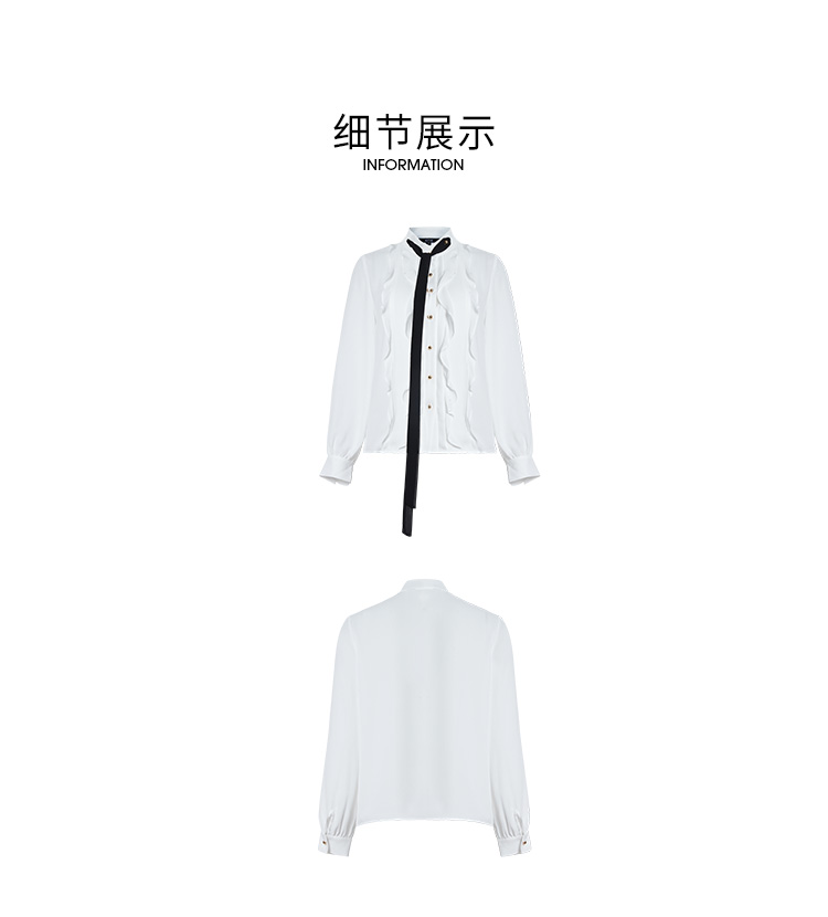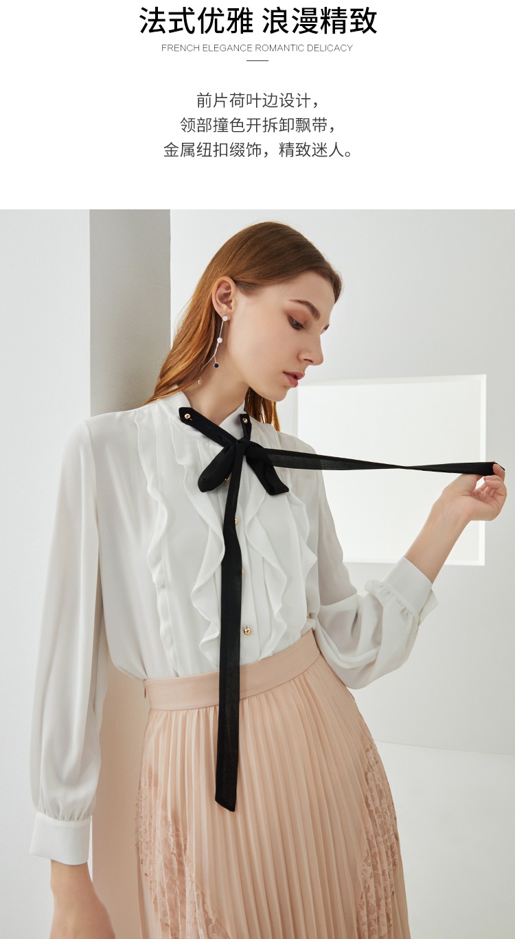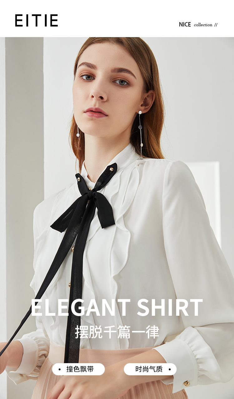 EITIE爱特爱秋季新款复古洋气系带木耳边显瘦衬衫上衣女