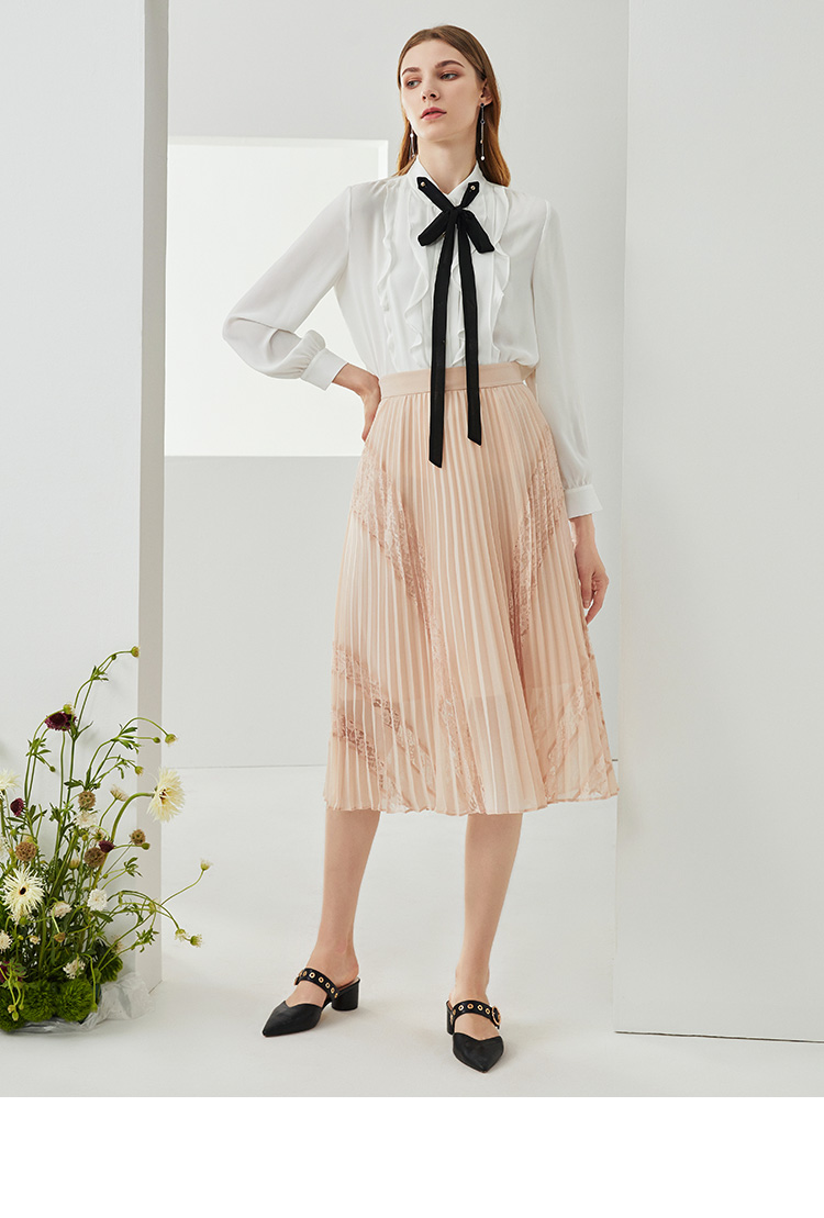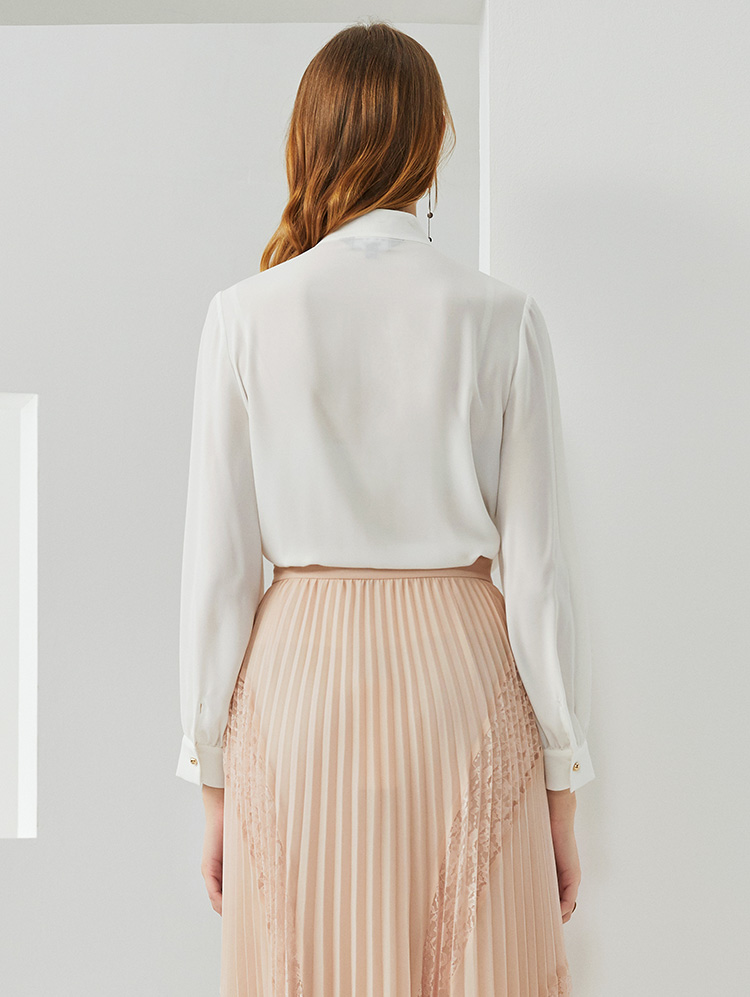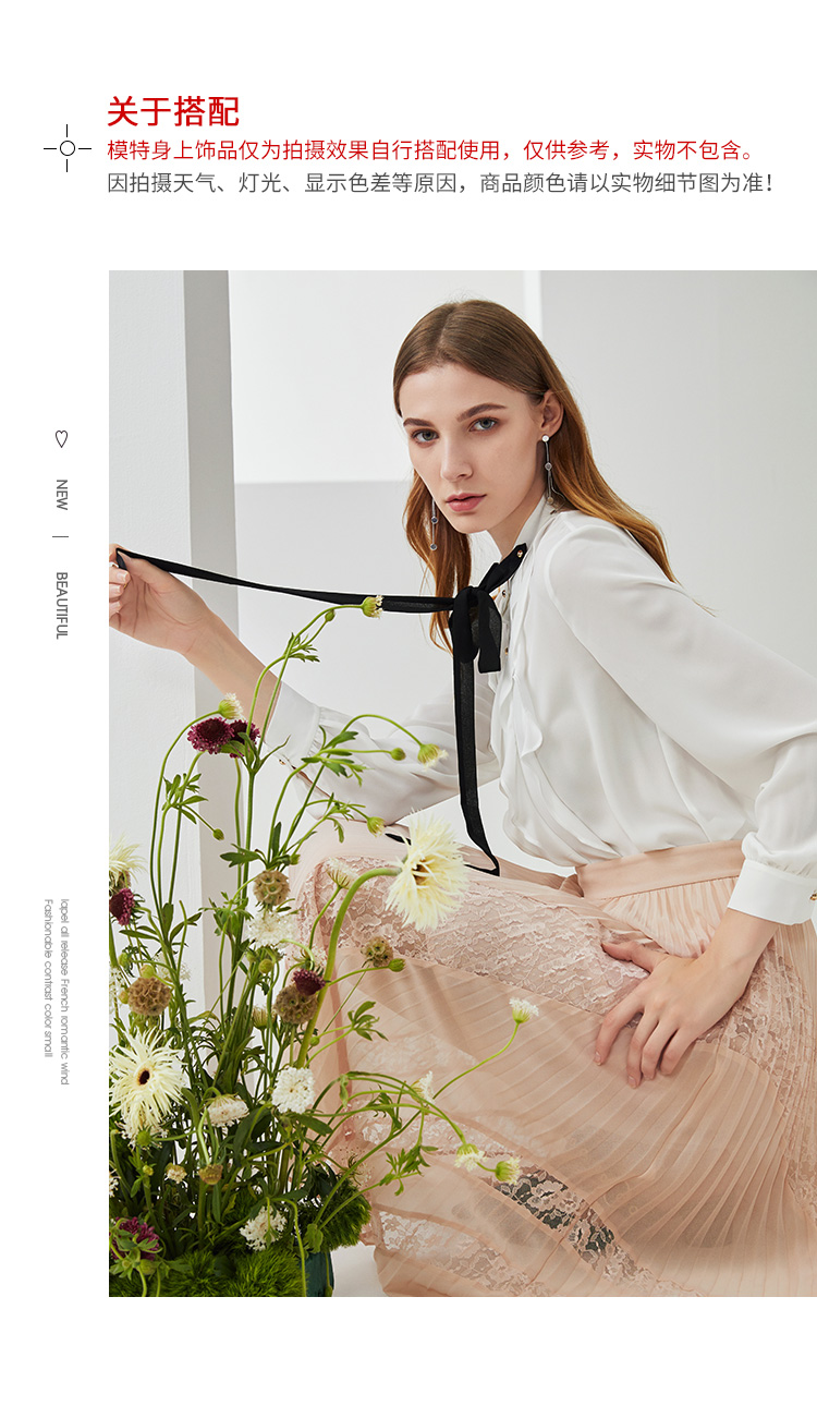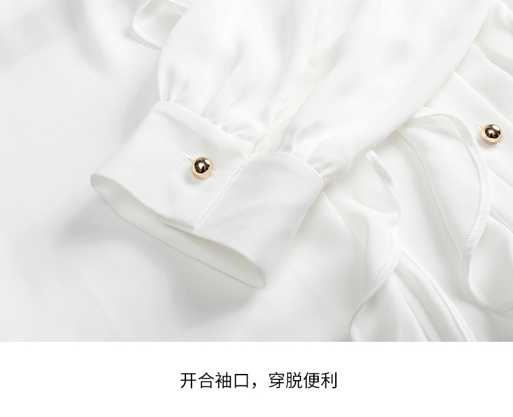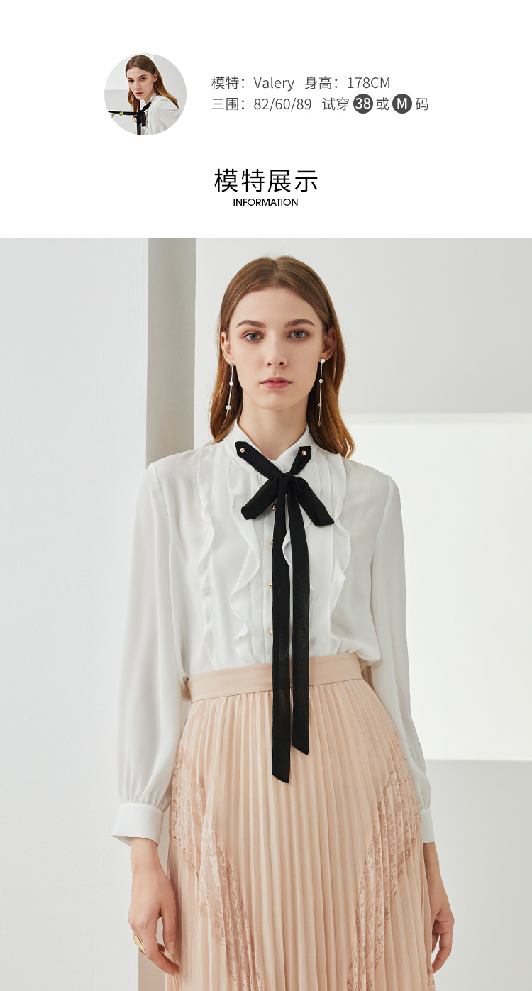 EITIE爱特爱秋季新款复古洋气系带木耳边显瘦衬衫上衣女