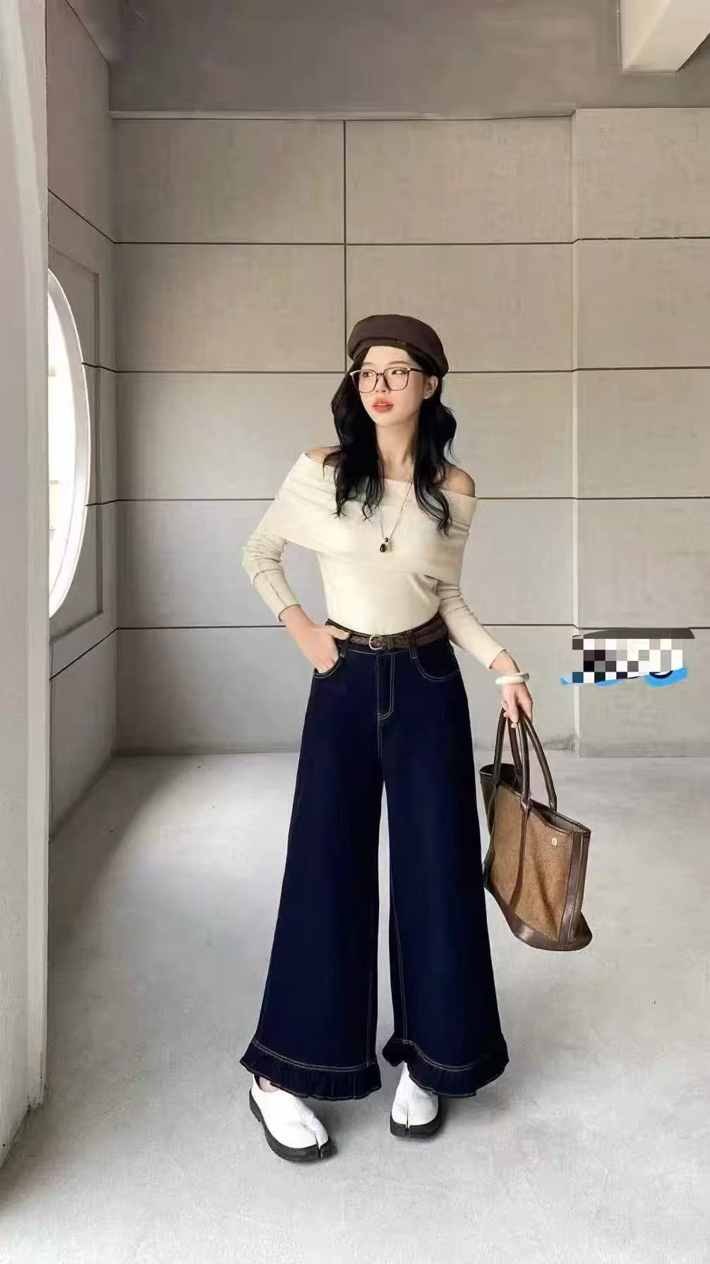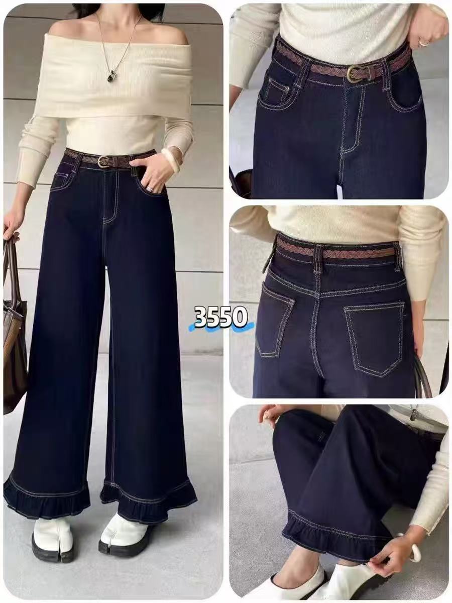 12.12错过没有!清货不退【爆款牛仔】2025秋品~6806单宁蓝超好看荷叶边牛仔直筒裤-喜出