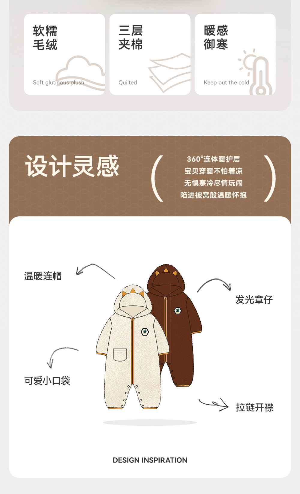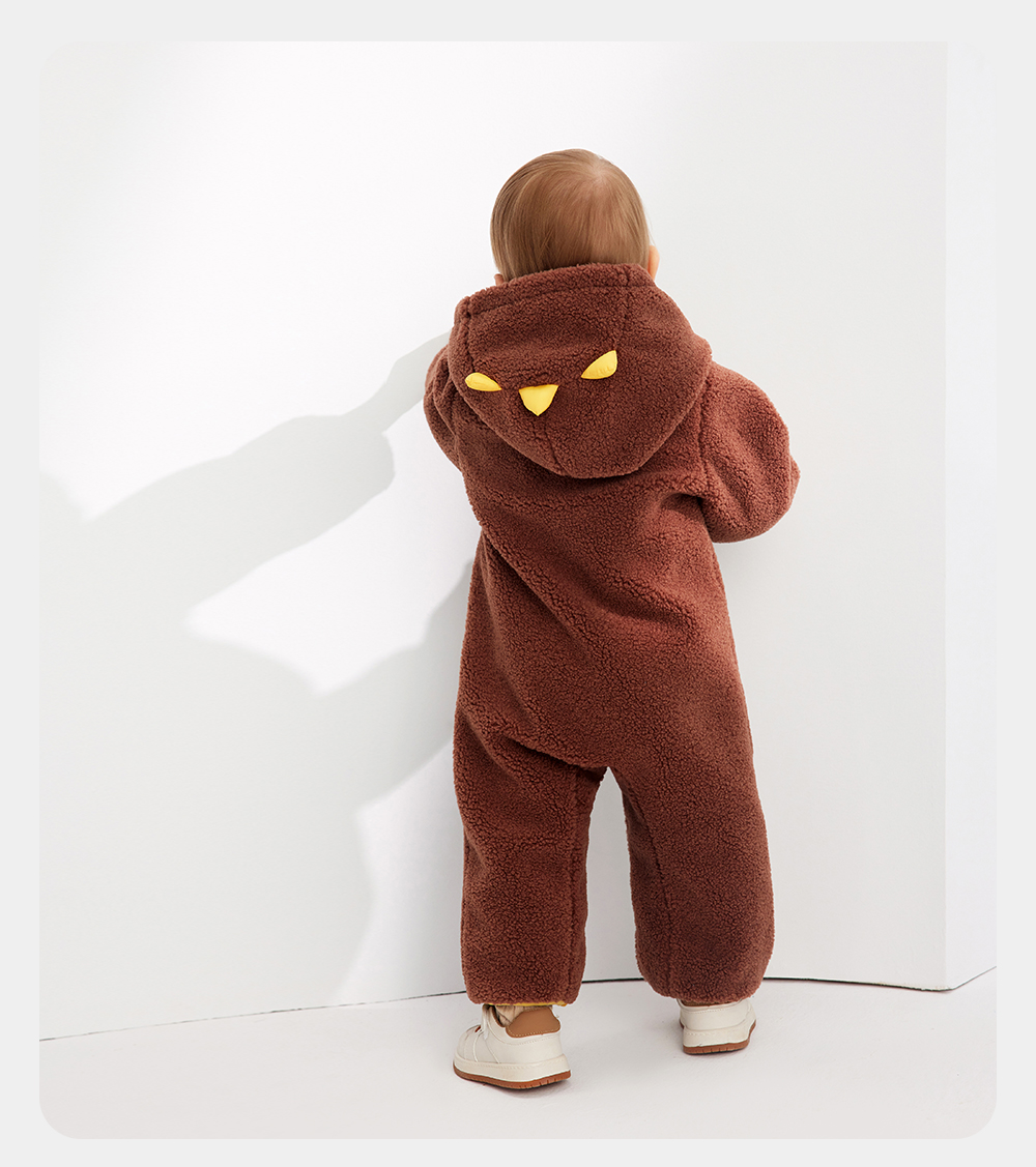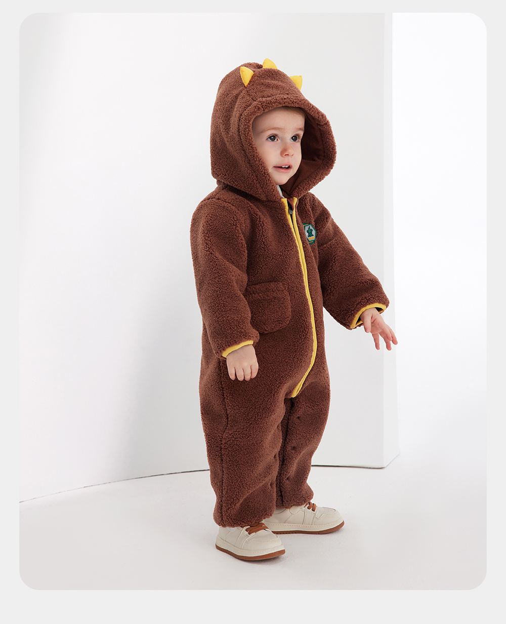 英氏宝宝哈衣可爱小恐龙夹棉长袖连体衣冬季保暖