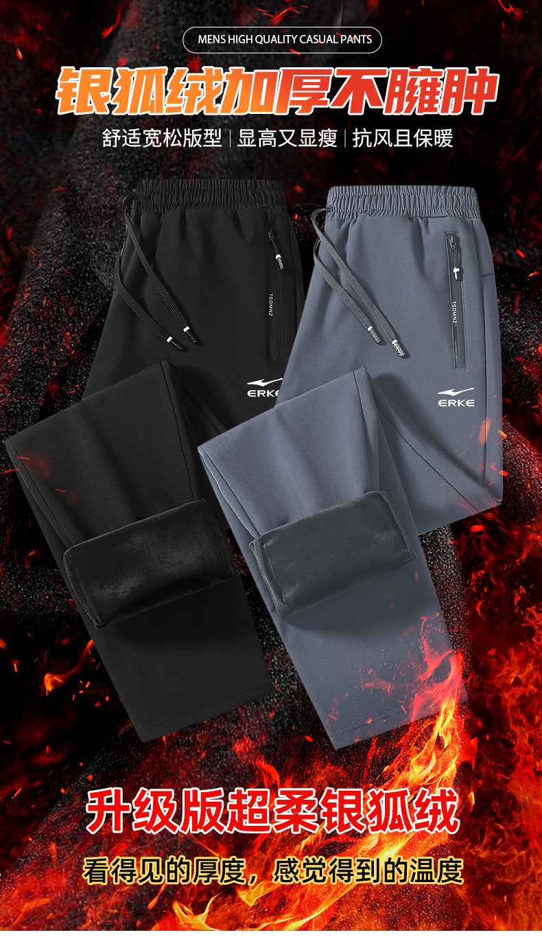 【国货之光 超柔银狐绒 防风防泼】鸿星尔克抗寒保暖加绒运动长裤(EK-SPFS8898)