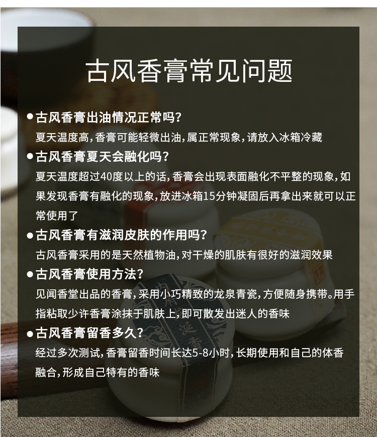 见闻香堂 古风香膏固体 鹅梨帐中香 二苏旧局 男女淡香水